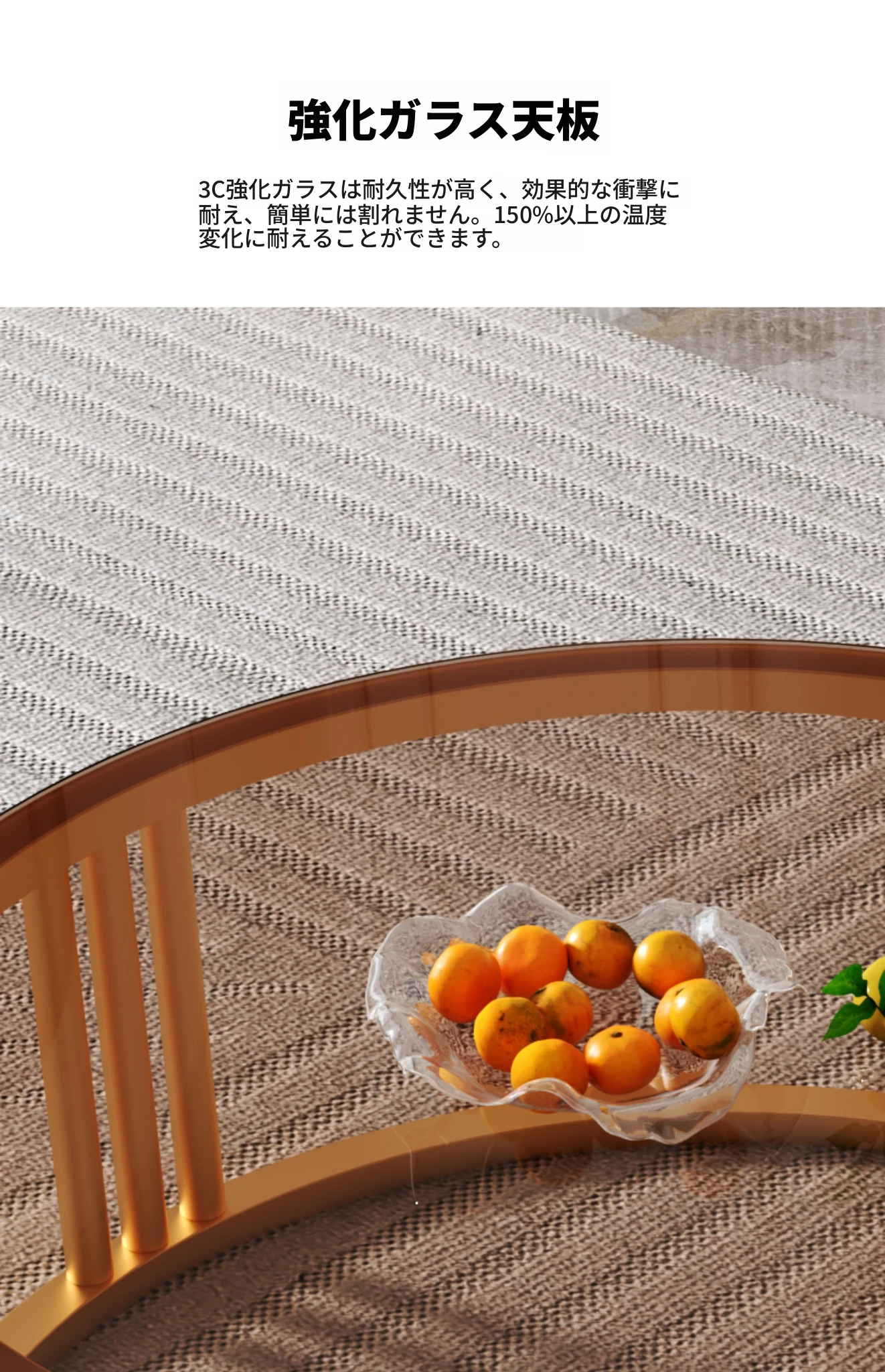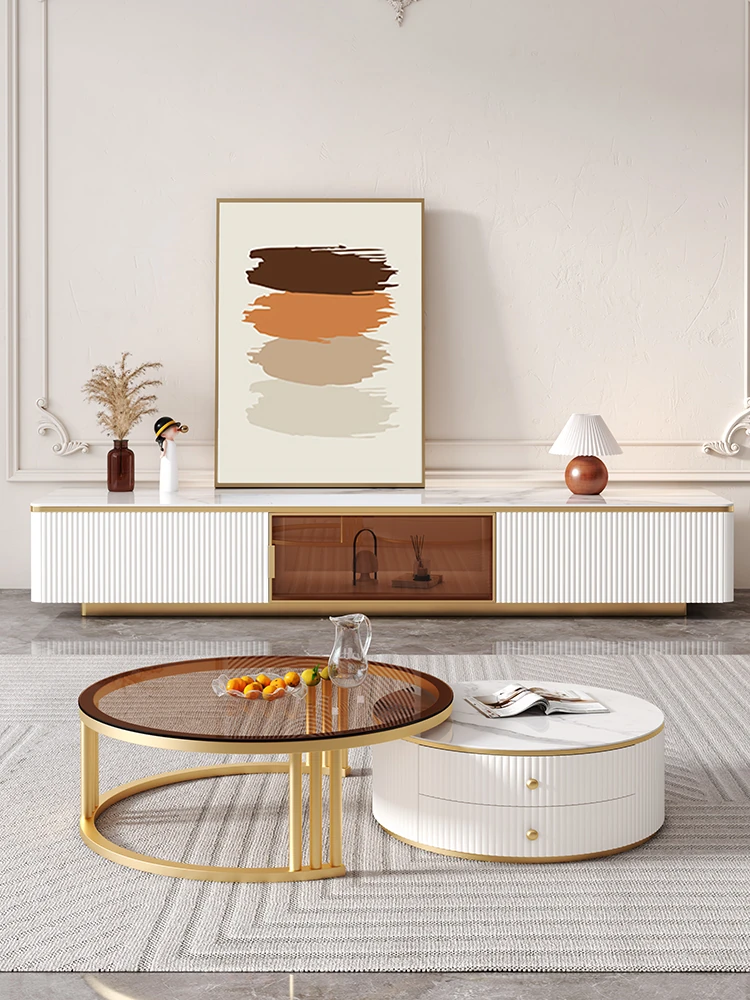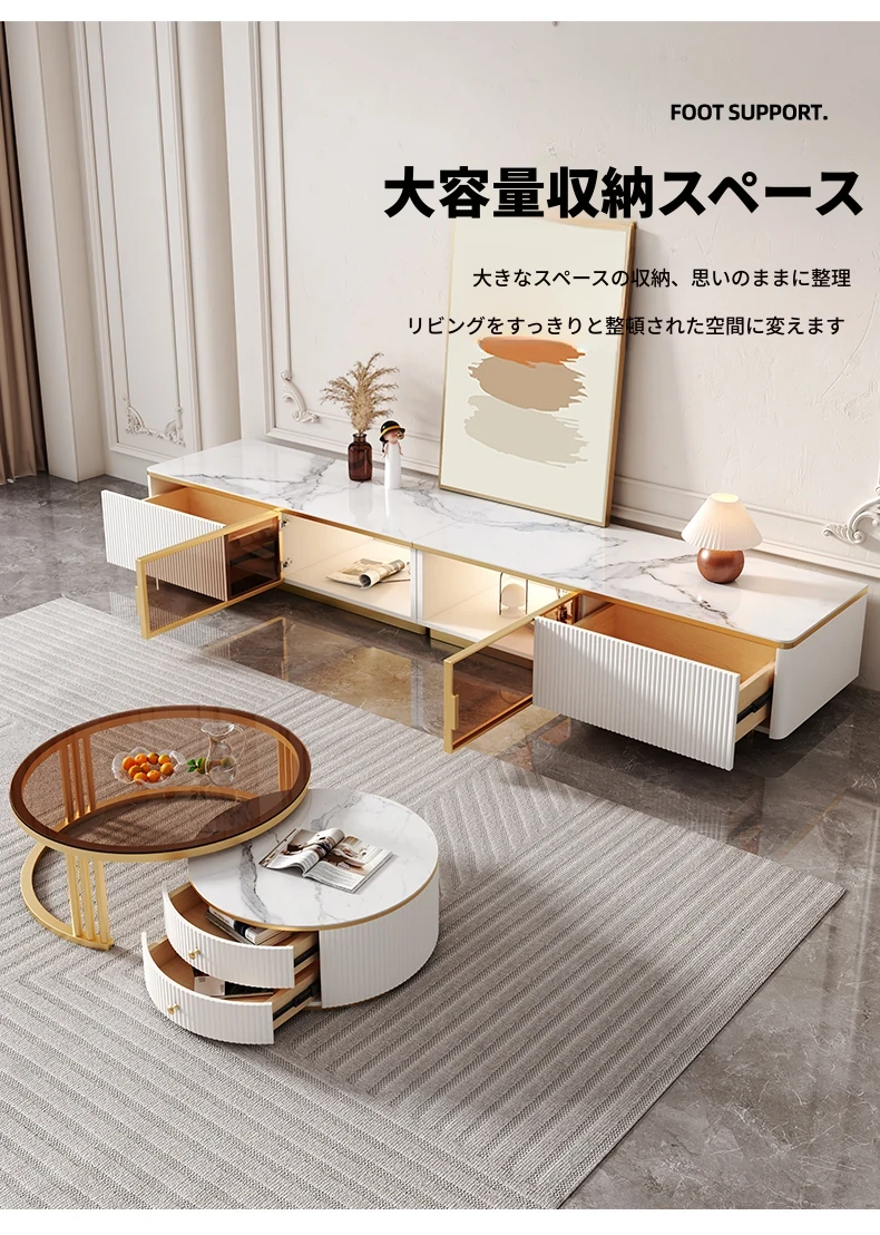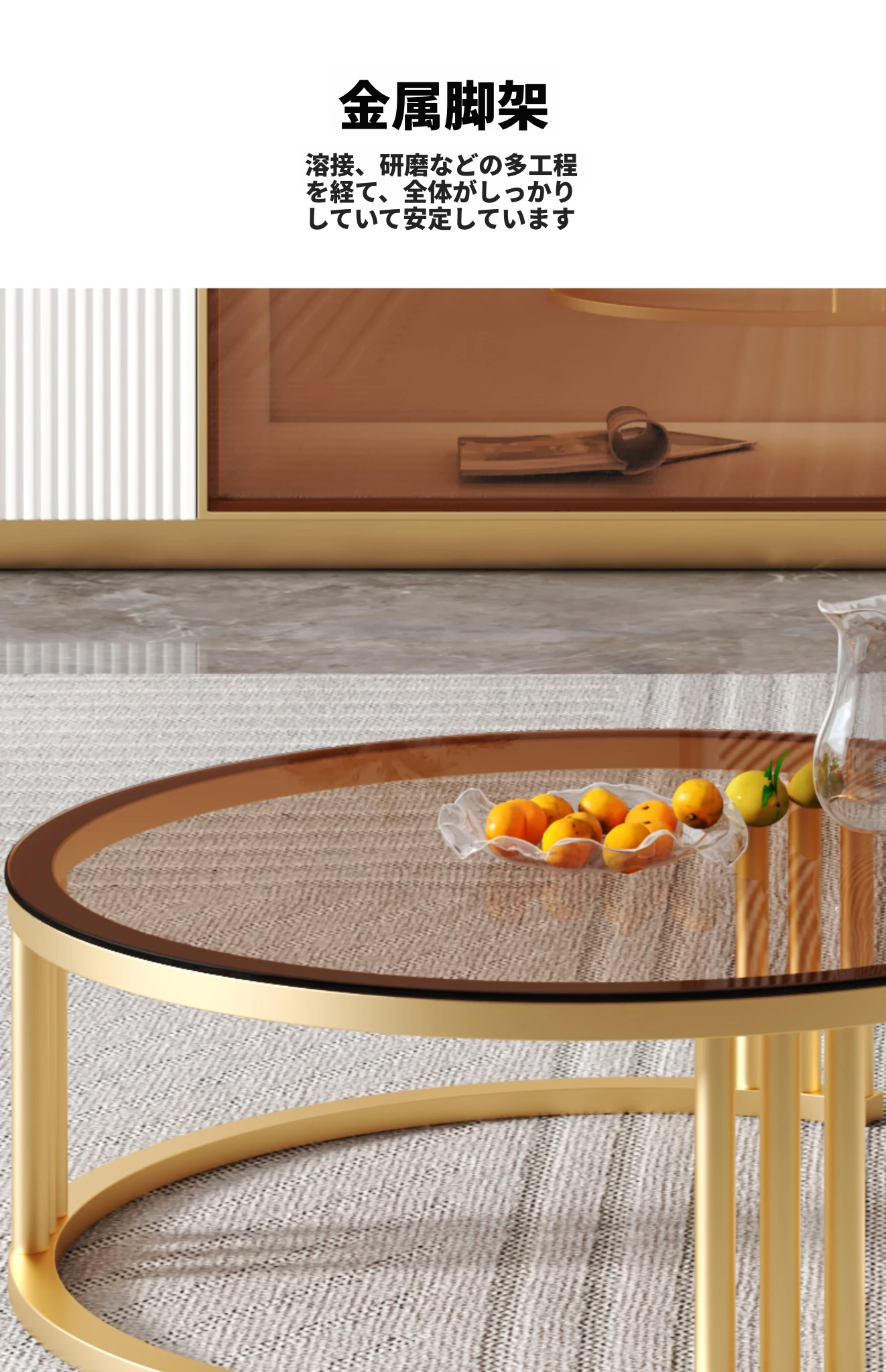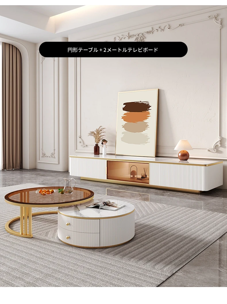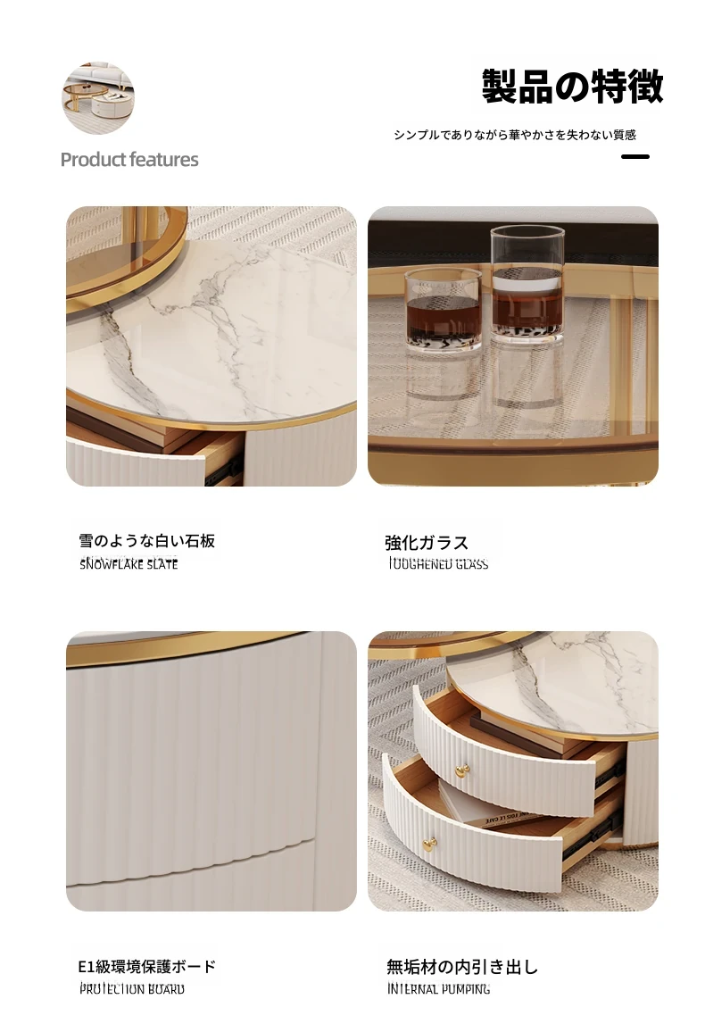 イタリアンラグジュアリーなクリーム風キャットクローラーカラーのラウンドコーヒーテーブル。岩板と強化ガラスを使用し、リビングルームにぴったりのスタイリッシュで移動可能なデザイン!