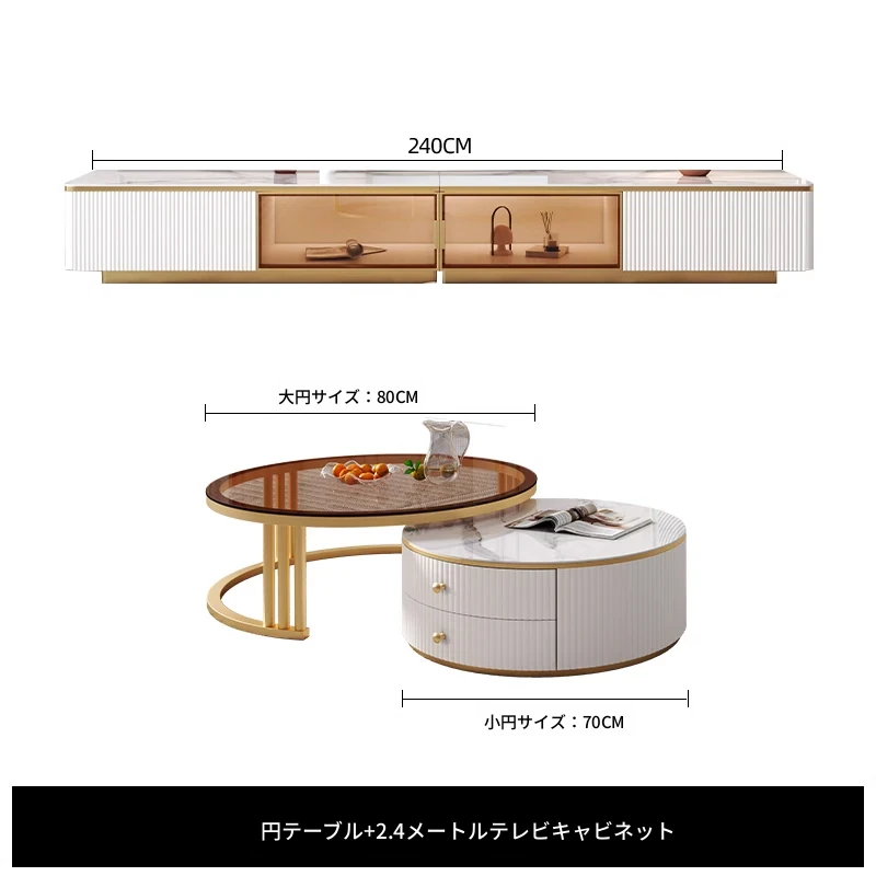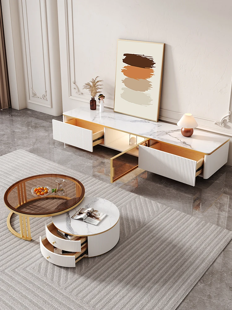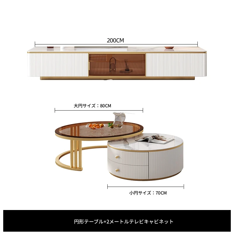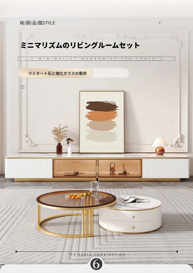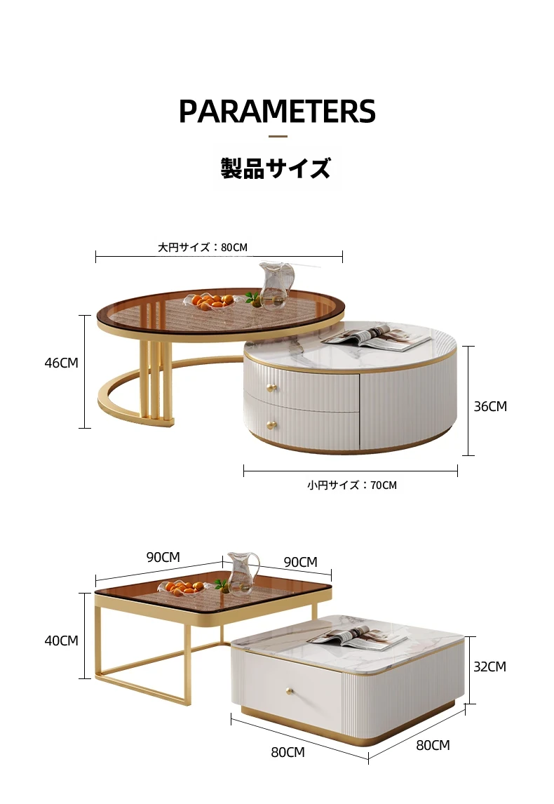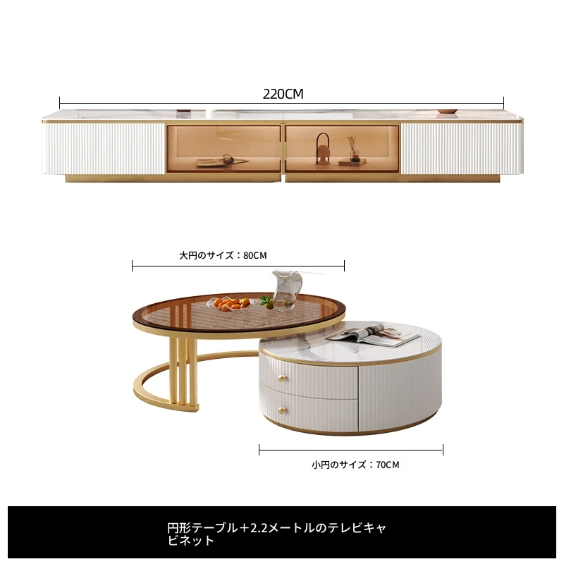 イタリアンラグジュアリーなクリーム風キャットクローラーカラーのラウンドコーヒーテーブル。岩板と強化ガラスを使用し、リビングルームにぴったりのスタイリッシュで移動可能なデザイン!