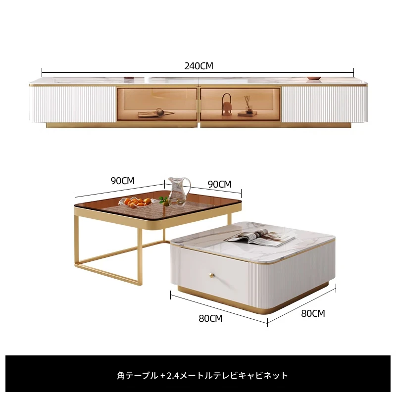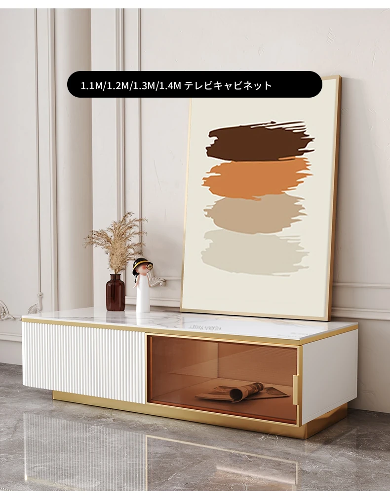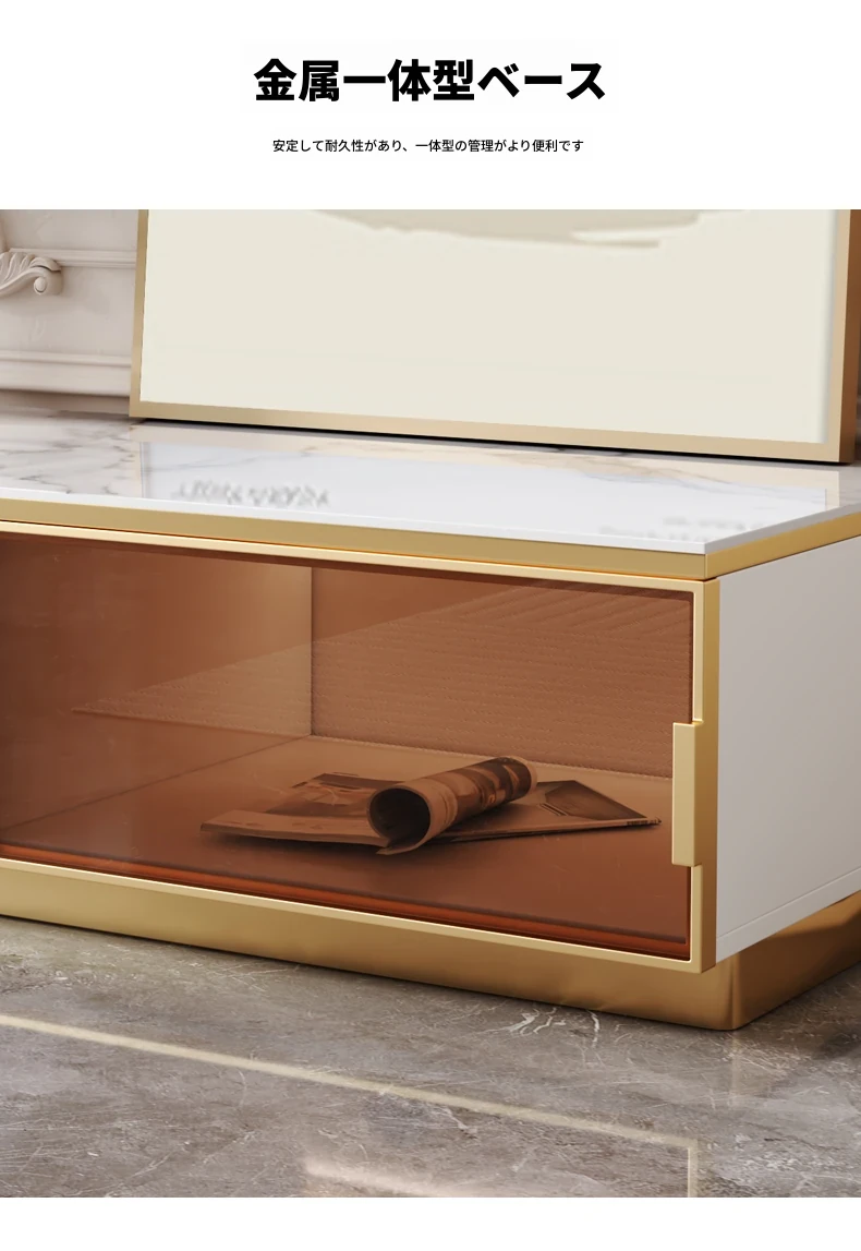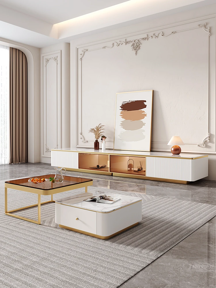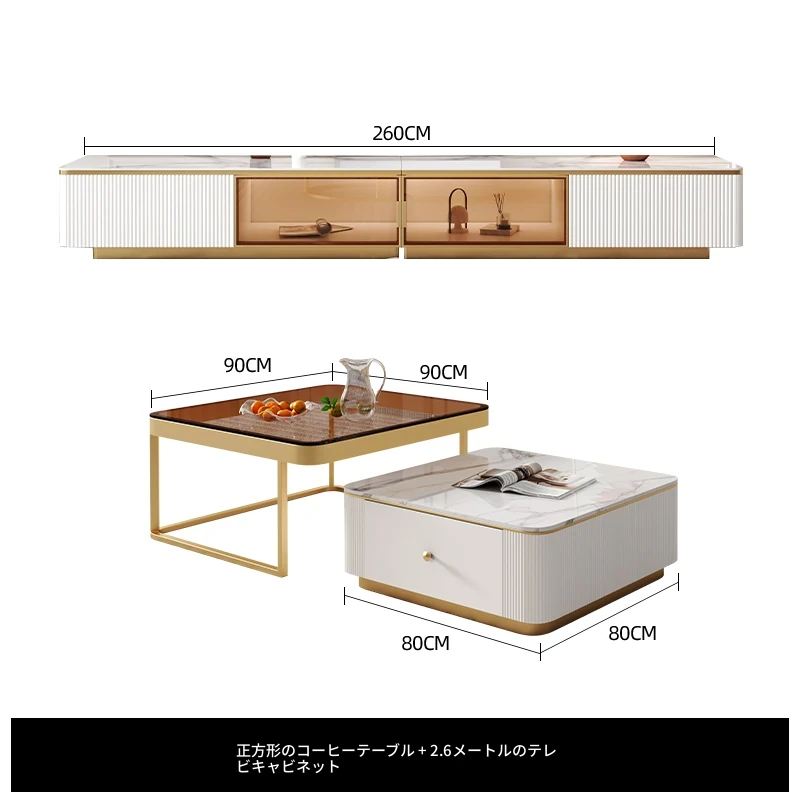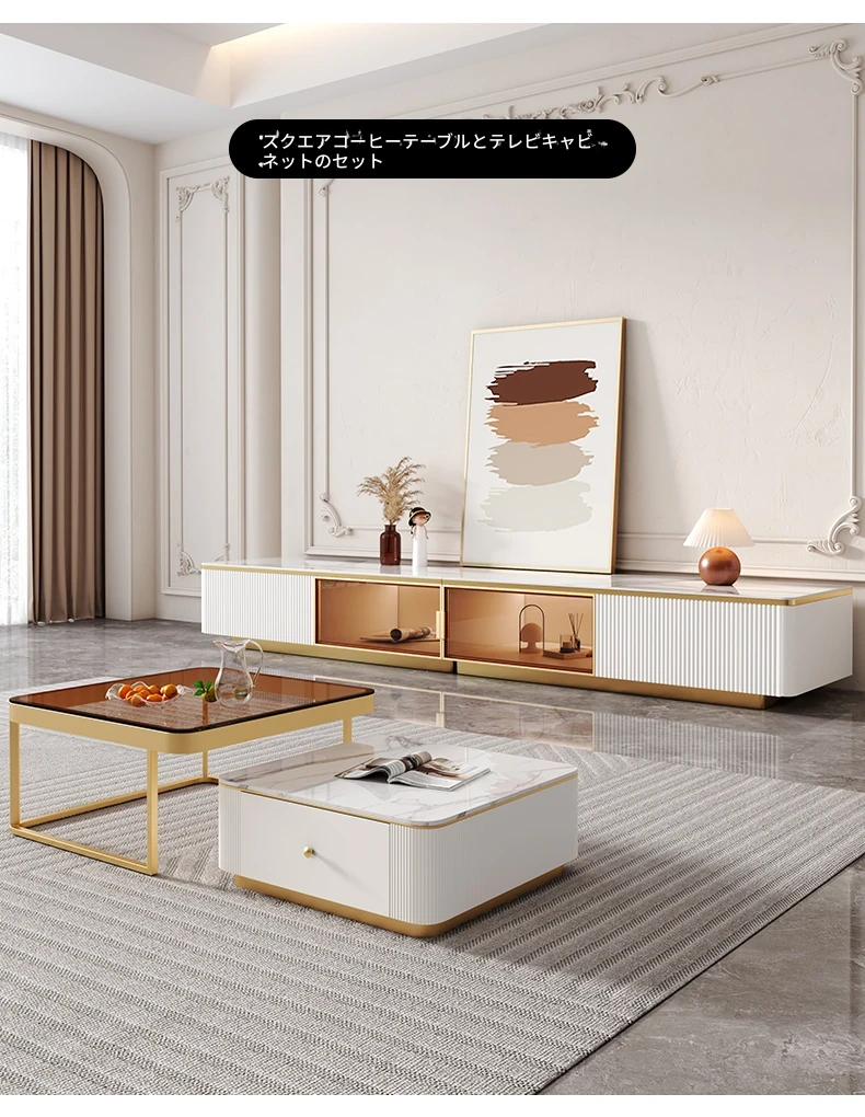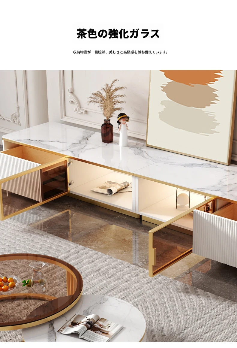 イタリアンラグジュアリーなクリーム風キャットクローラーカラーのラウンドコーヒーテーブル。岩板と強化ガラスを使用し、リビングルームにぴったりのスタイリッシュで移動可能なデザイン!