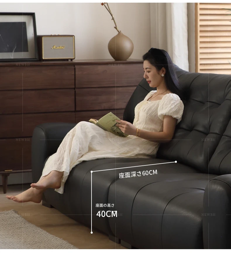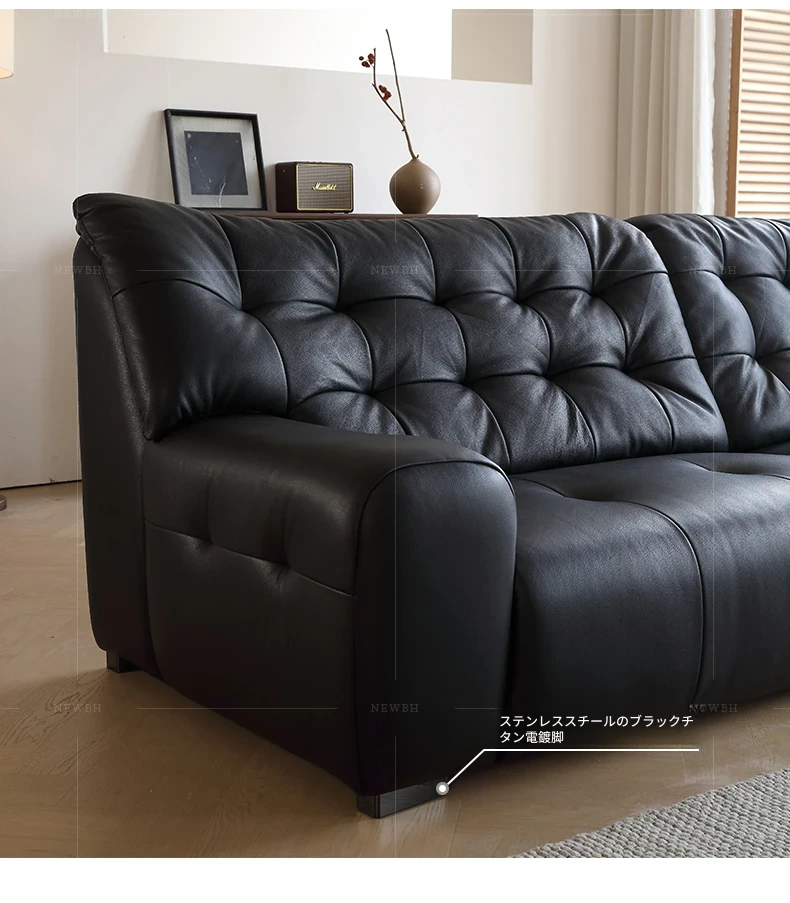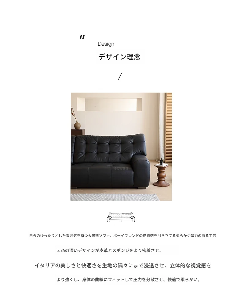 イタリアンミニマリズム 大型ブラックベア 本革ソファ - モダンでシンプルなリビングにぴったりの高級レザーソファ!直線的なデザインで洗練された印象を与え、快適な座り心地を実現。