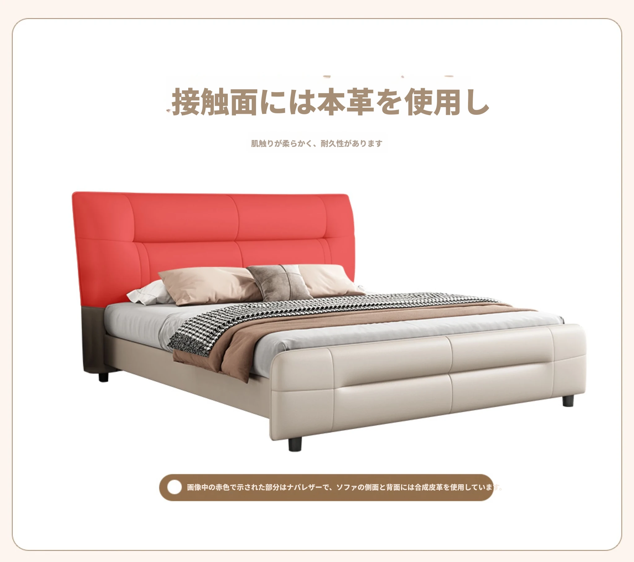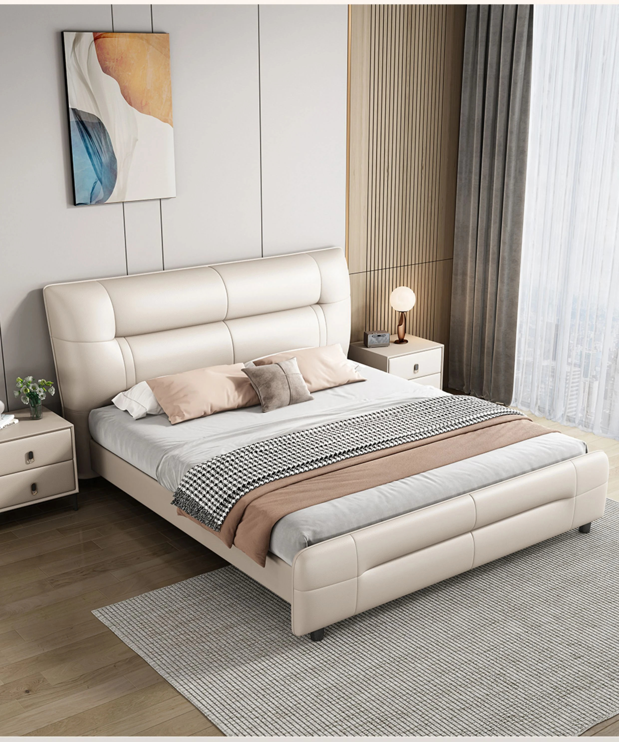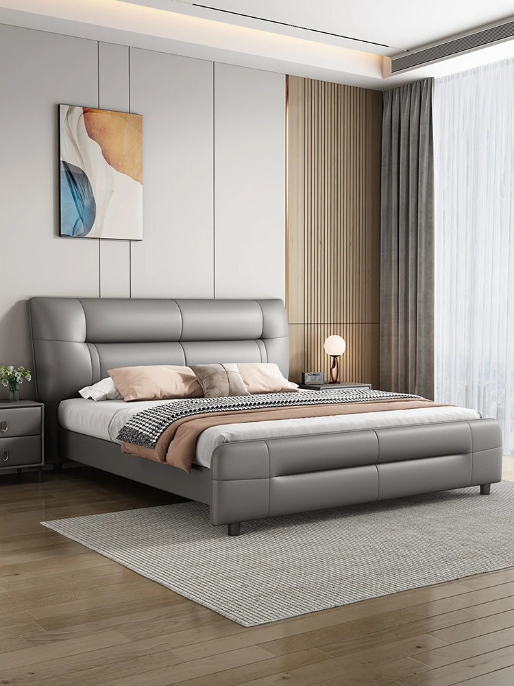 イタリアンスタイルのラグジュアリー極簡真皮ベッド|モダンな主寝室に最適な高低脚ダブルベッド|柔らかなパッキングで快適な婚礼ベッド|シンプルで洗練されたデザイン、あなたの生活空間を格上げ!