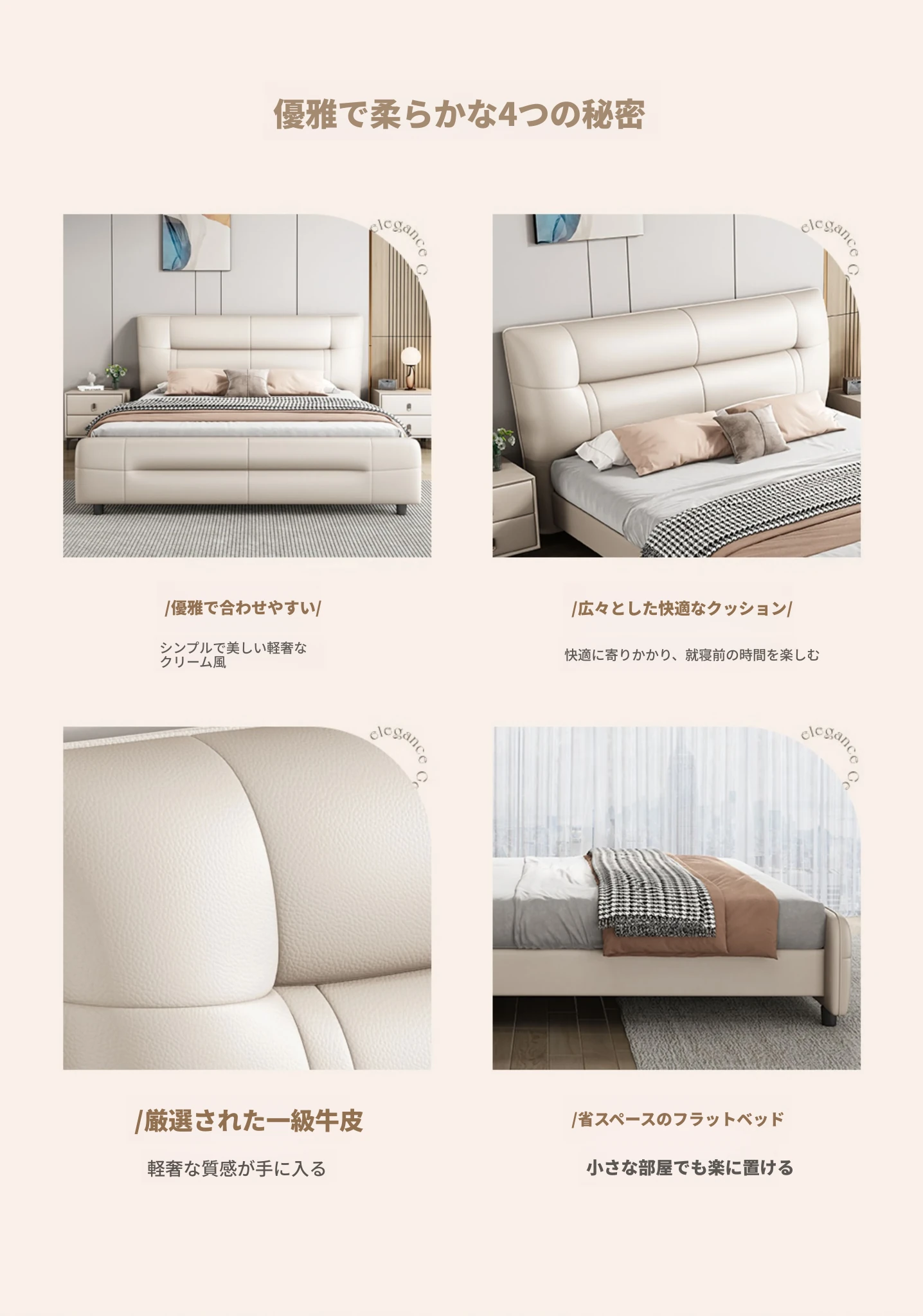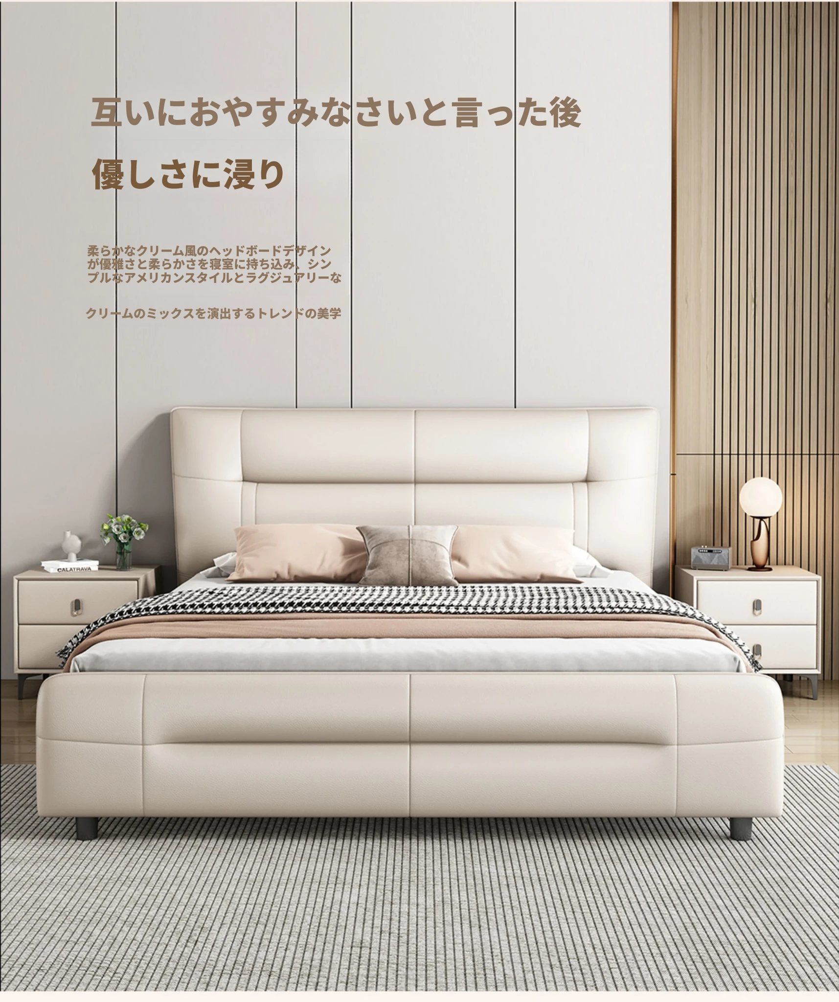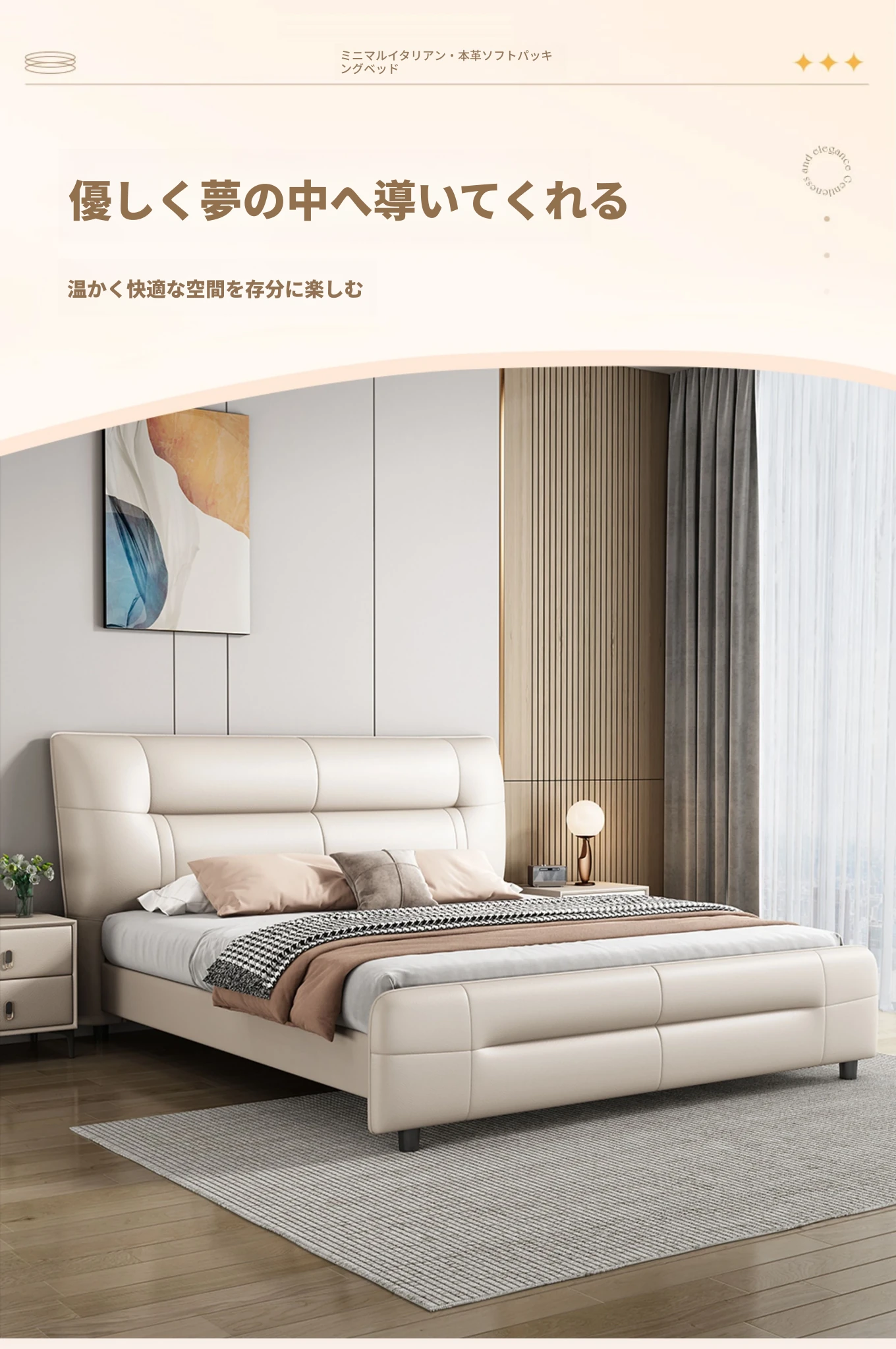 イタリアンスタイルのラグジュアリー極簡真皮ベッド|モダンな主寝室に最適な高低脚ダブルベッド|柔らかなパッキングで快適な婚礼ベッド|シンプルで洗練されたデザイン、あなたの生活空間を格上げ!