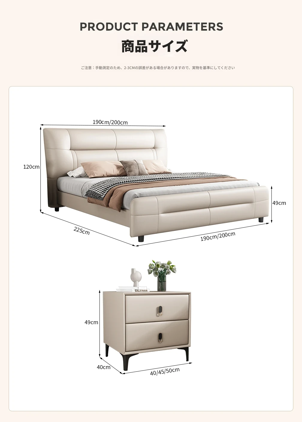 シングルベッド+ナイトテーブル1台{ナディファン本革+スポンジヘッドボード}