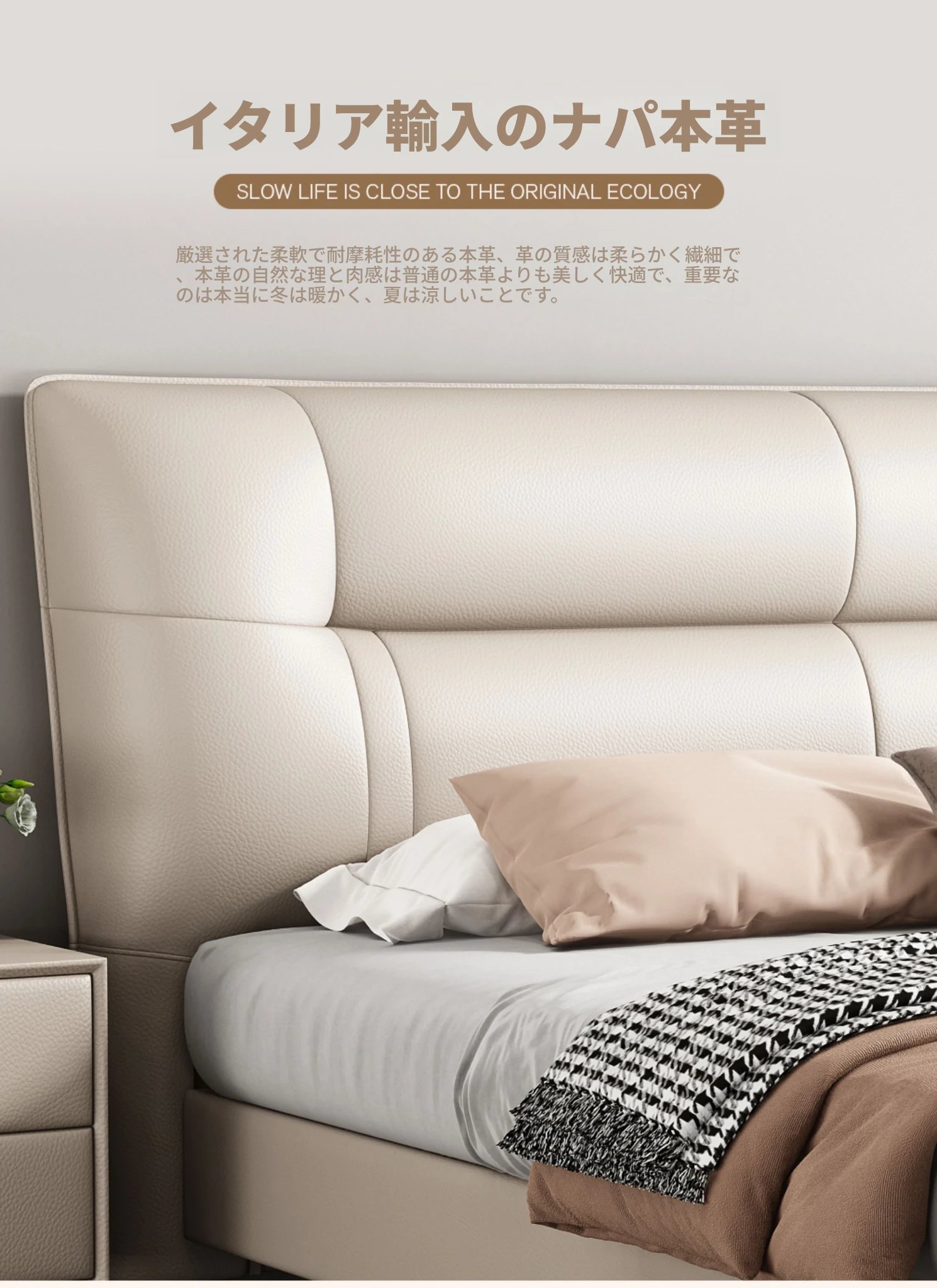 シングルベッド+ナイトテーブル1台{ナディファン本革+ラテックスヘッドボード}