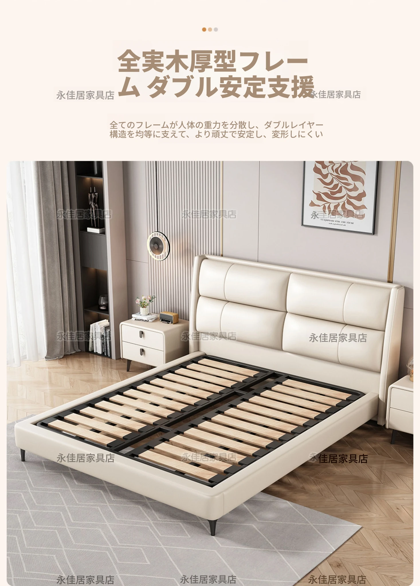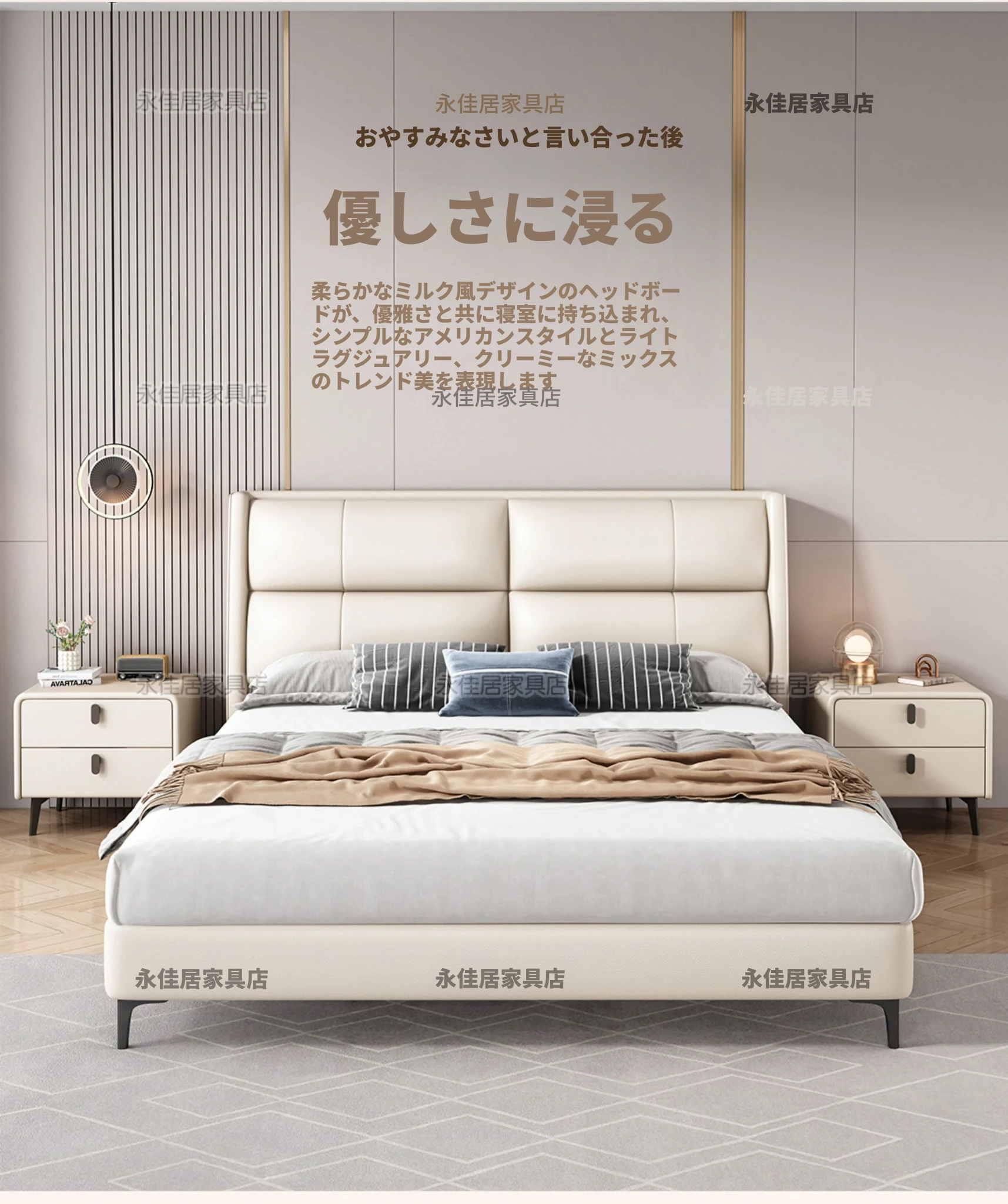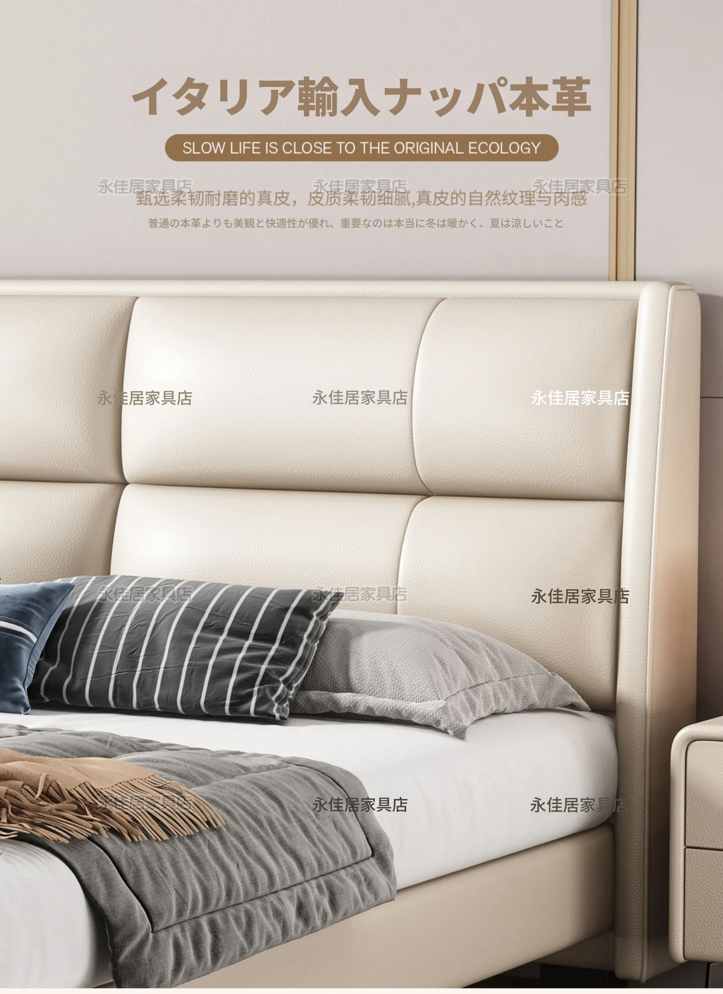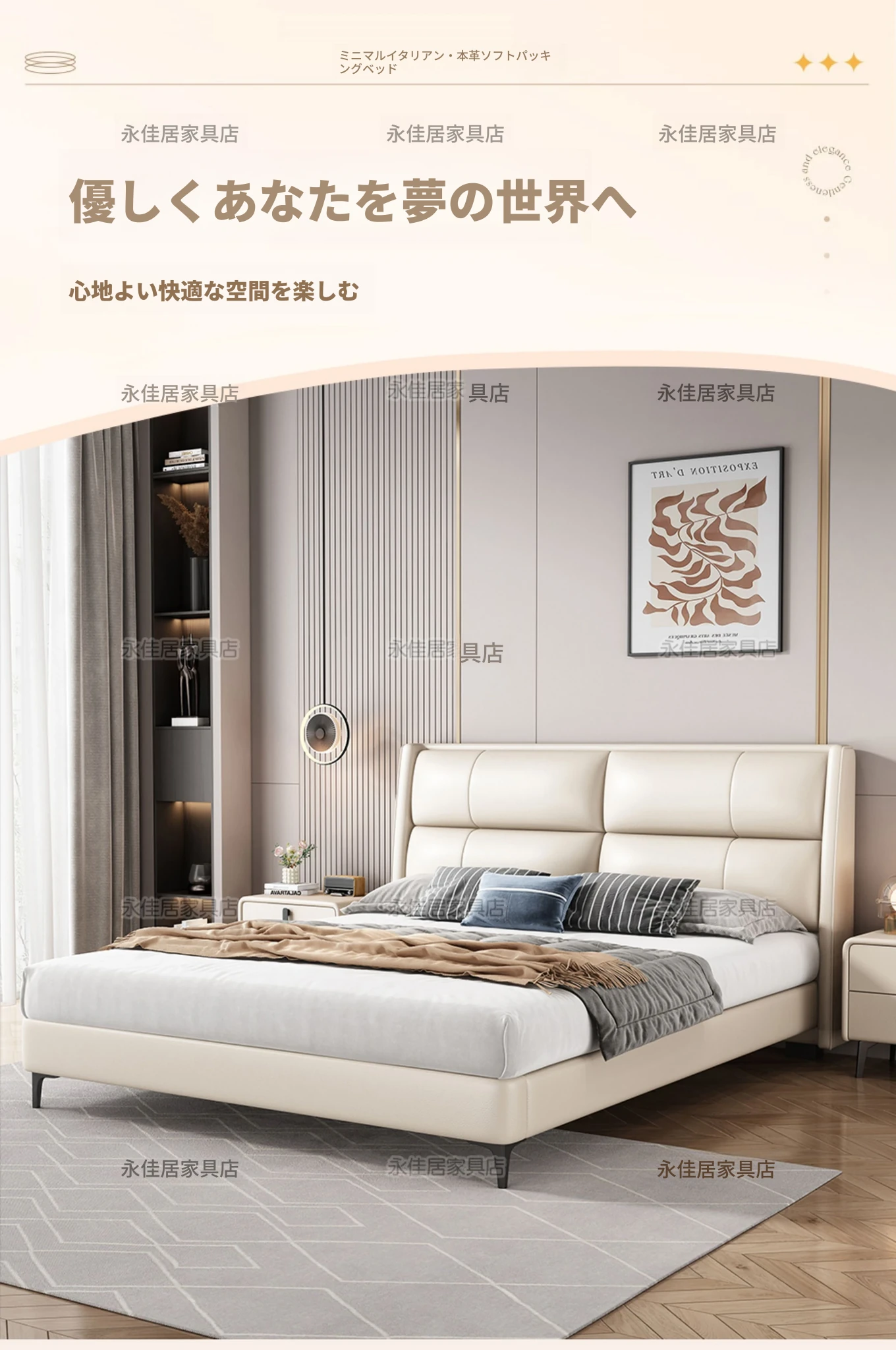 イタリアンミニマリスト軽奢真皮ベッド|無垢材ダブルソフトパックベッド|現代主寝室用|結婚用|コンパクトな部屋にも最適なトップグレード牛革ベッドで、上質な眠りをお楽しみください!