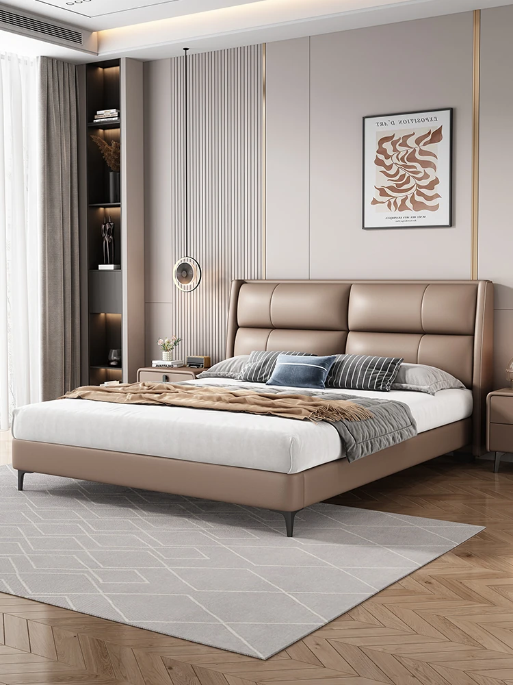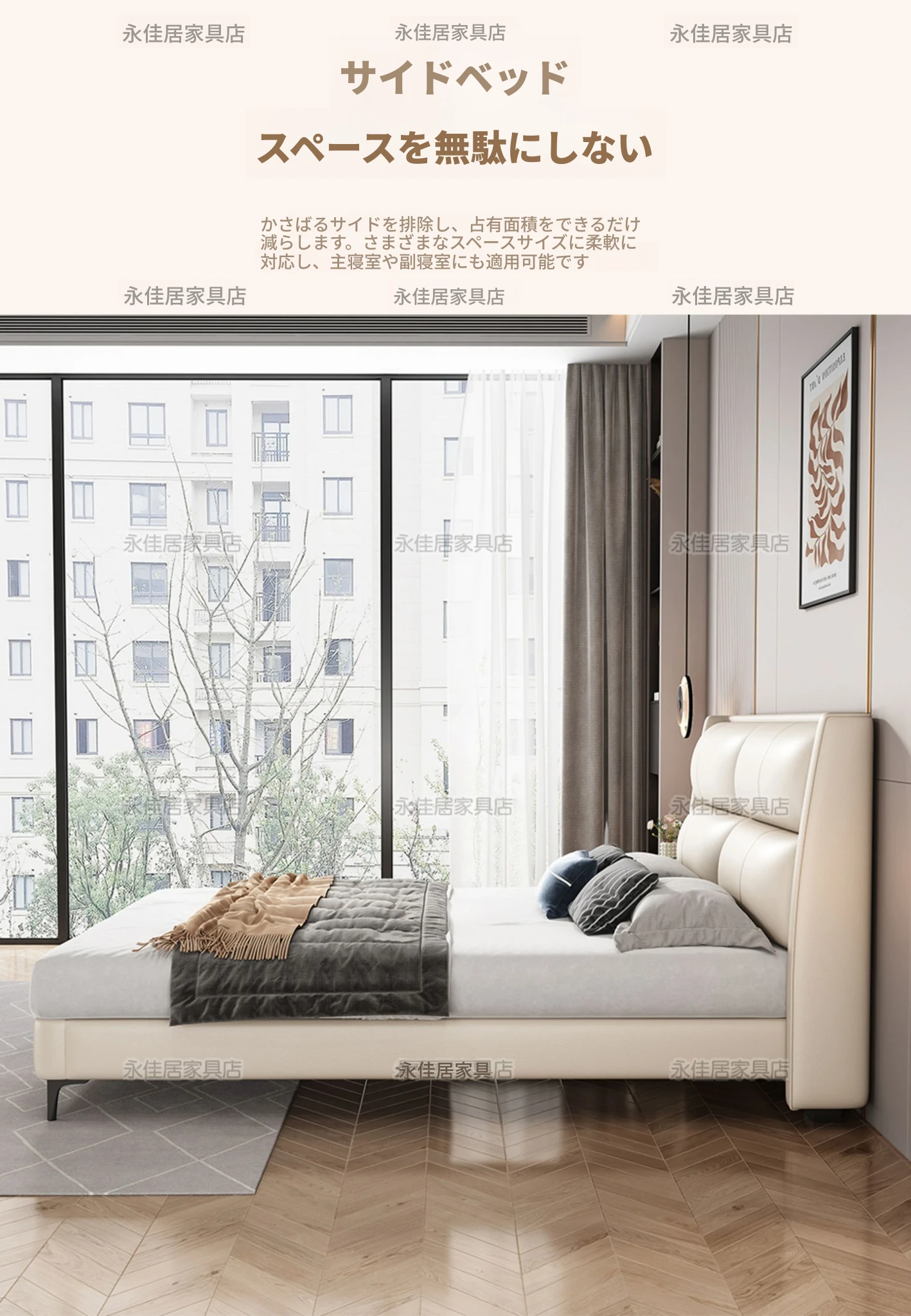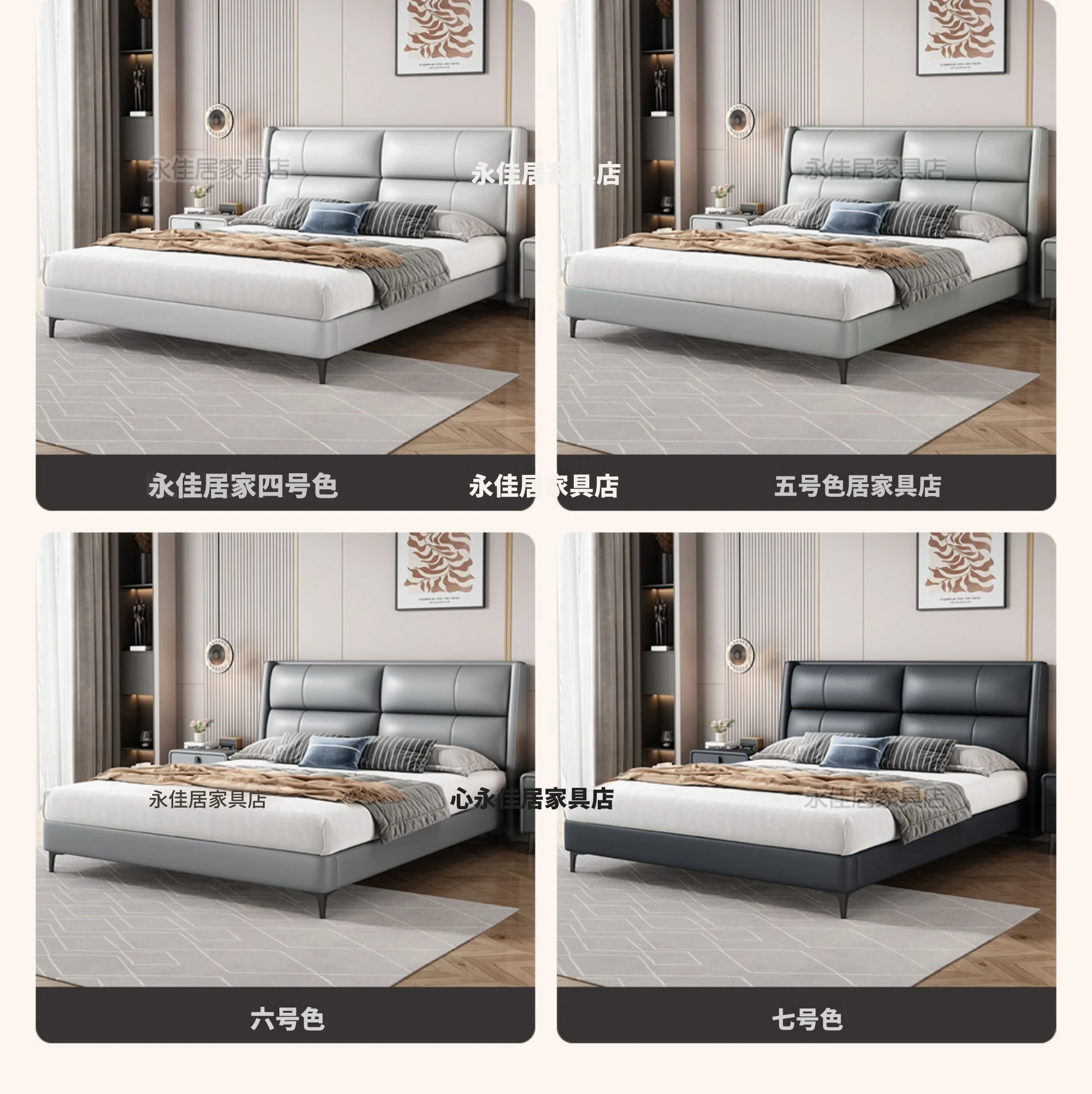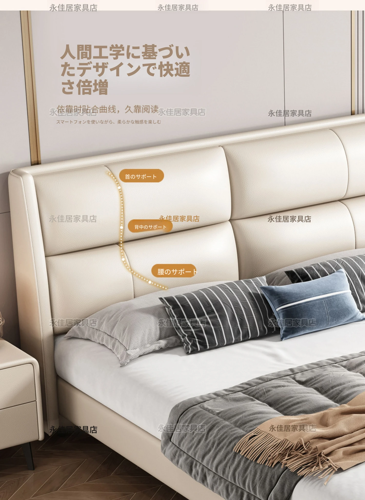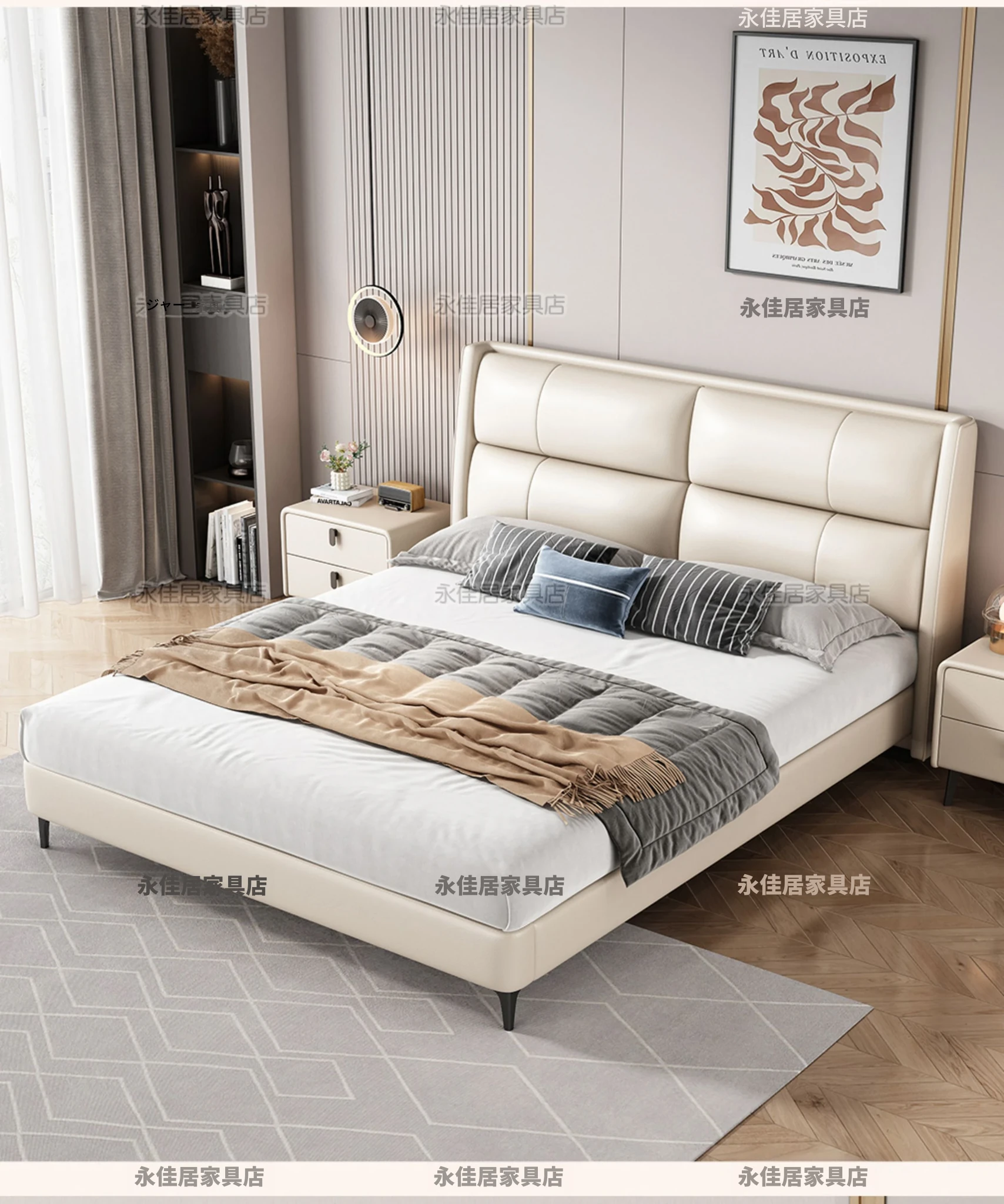 イタリアンミニマリスト軽奢真皮ベッド|無垢材ダブルソフトパックベッド|現代主寝室用|結婚用|コンパクトな部屋にも最適なトップグレード牛革ベッドで、上質な眠りをお楽しみください!