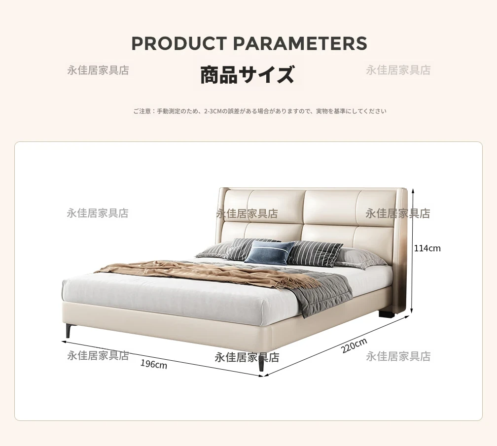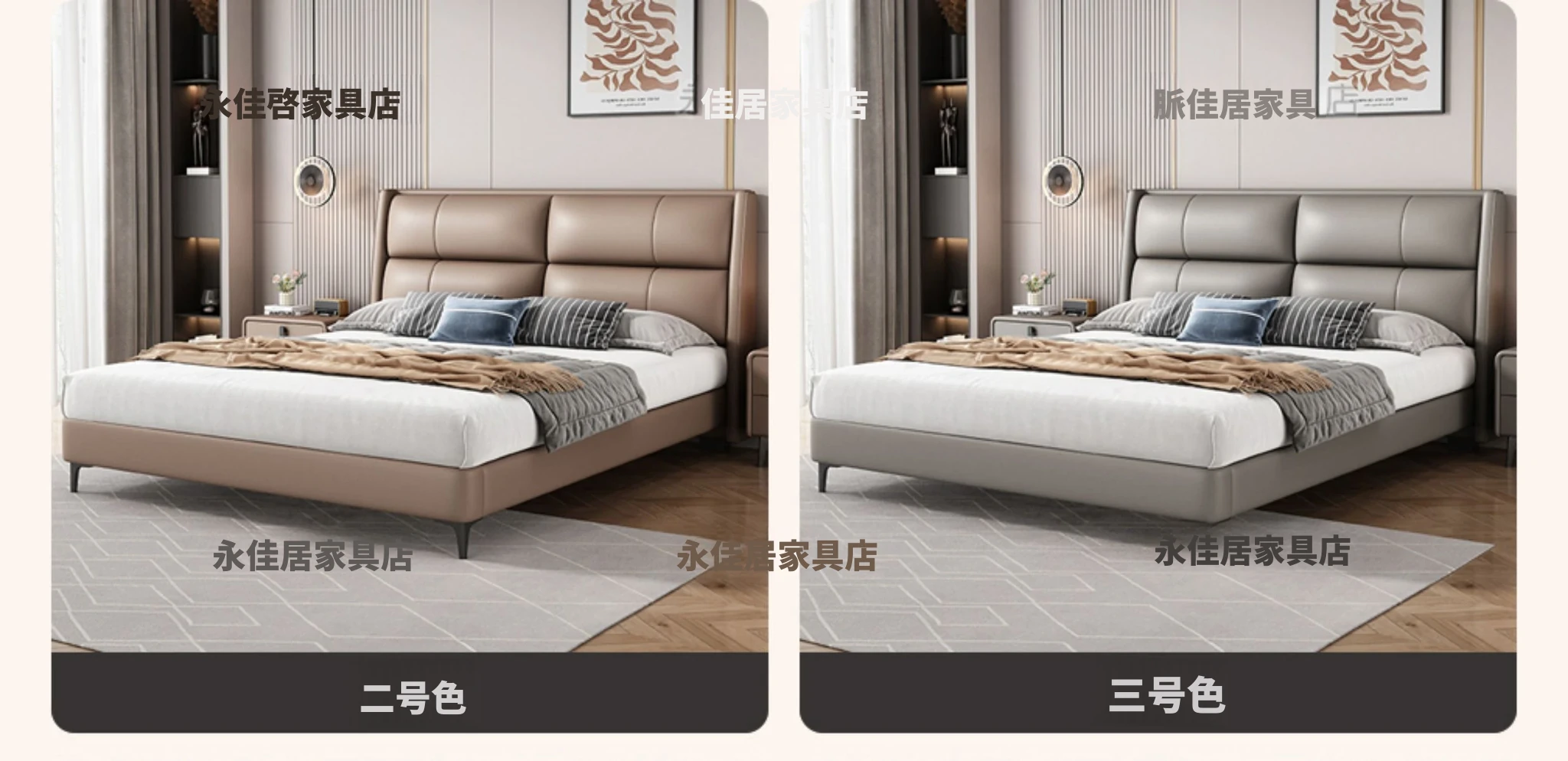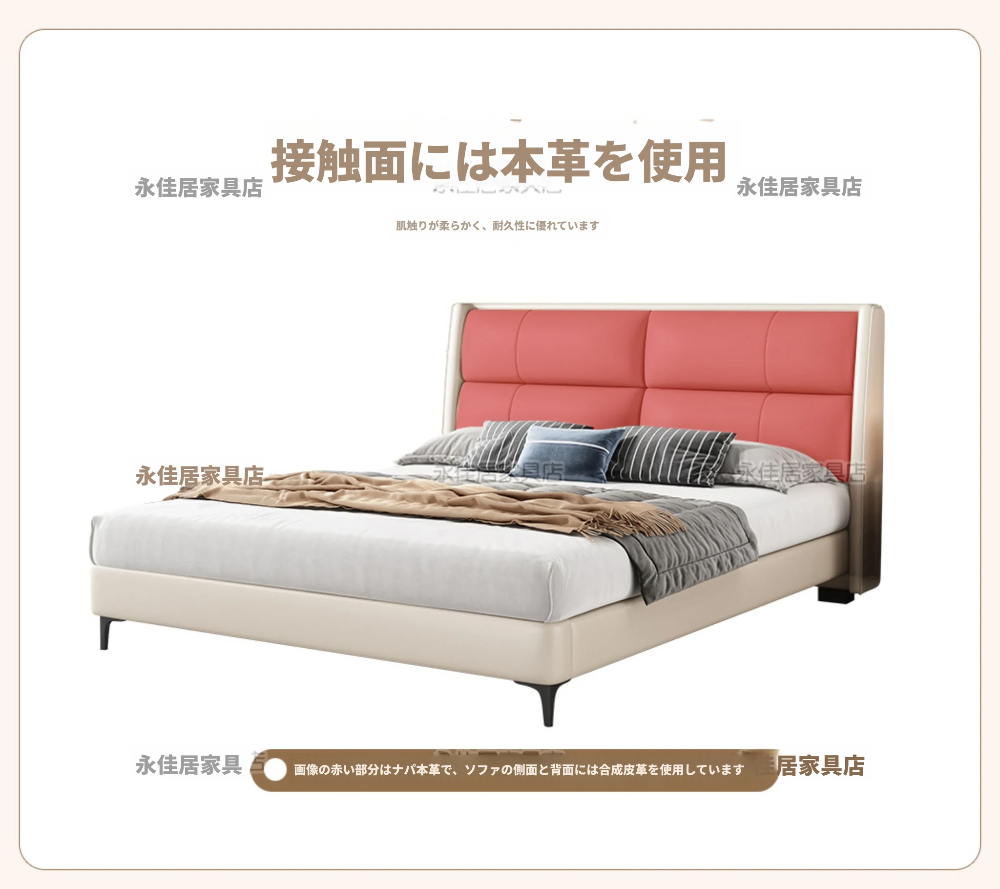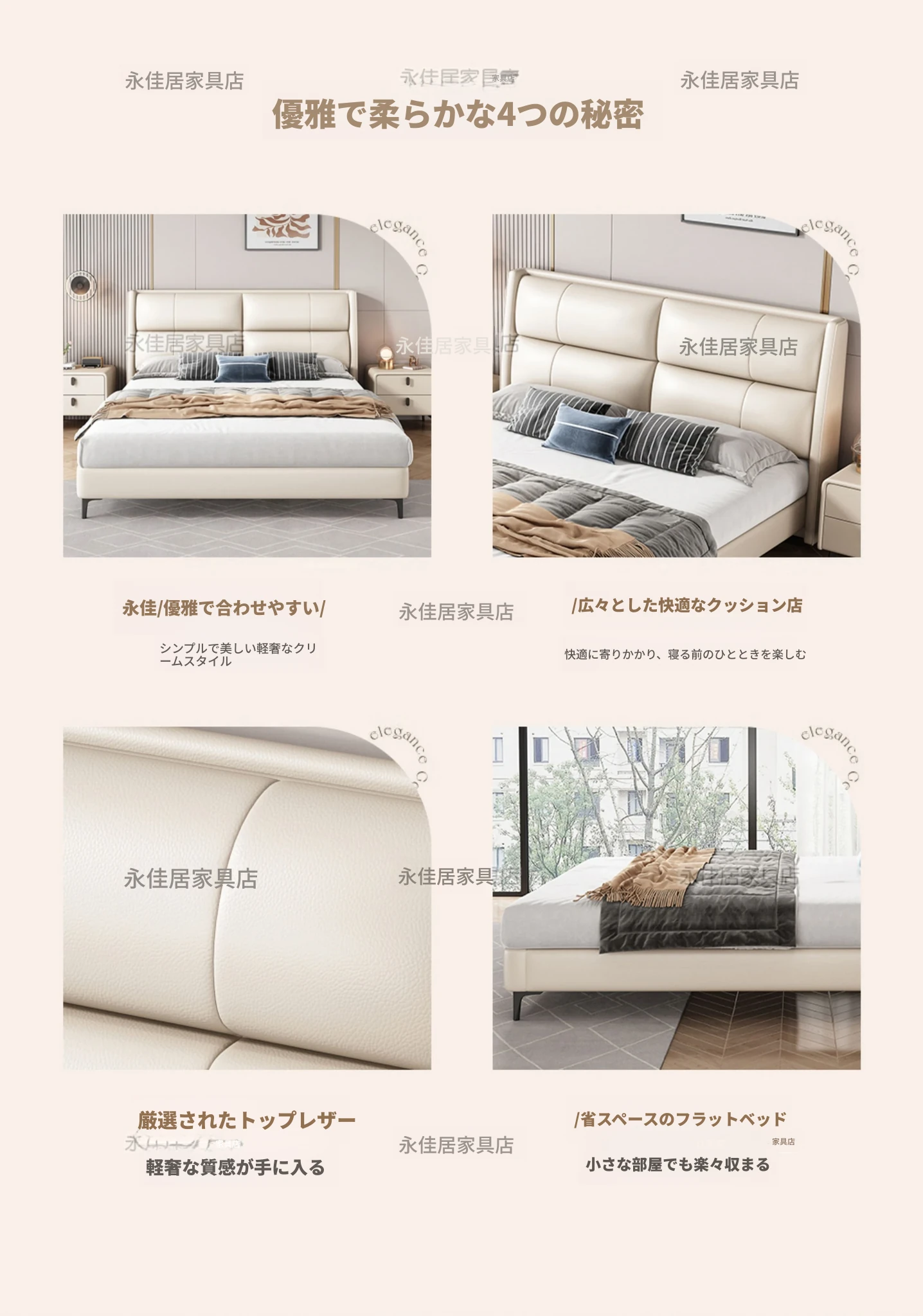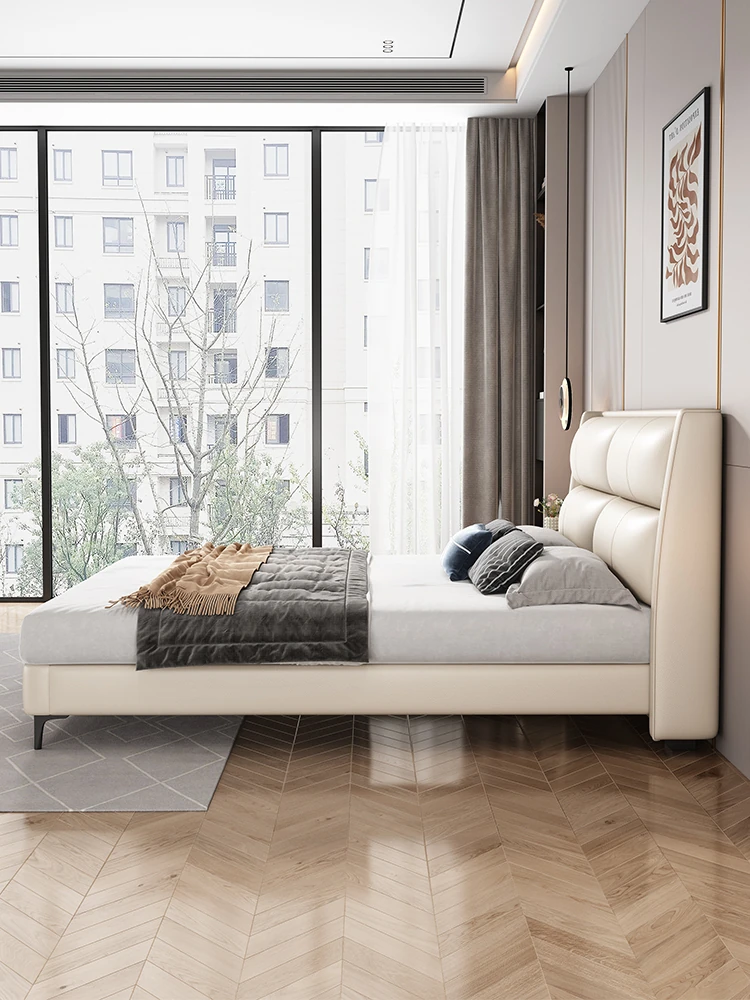 イタリアンミニマリスト軽奢真皮ベッド|無垢材ダブルソフトパックベッド|現代主寝室用|結婚用|コンパクトな部屋にも最適なトップグレード牛革ベッドで、上質な眠りをお楽しみください!