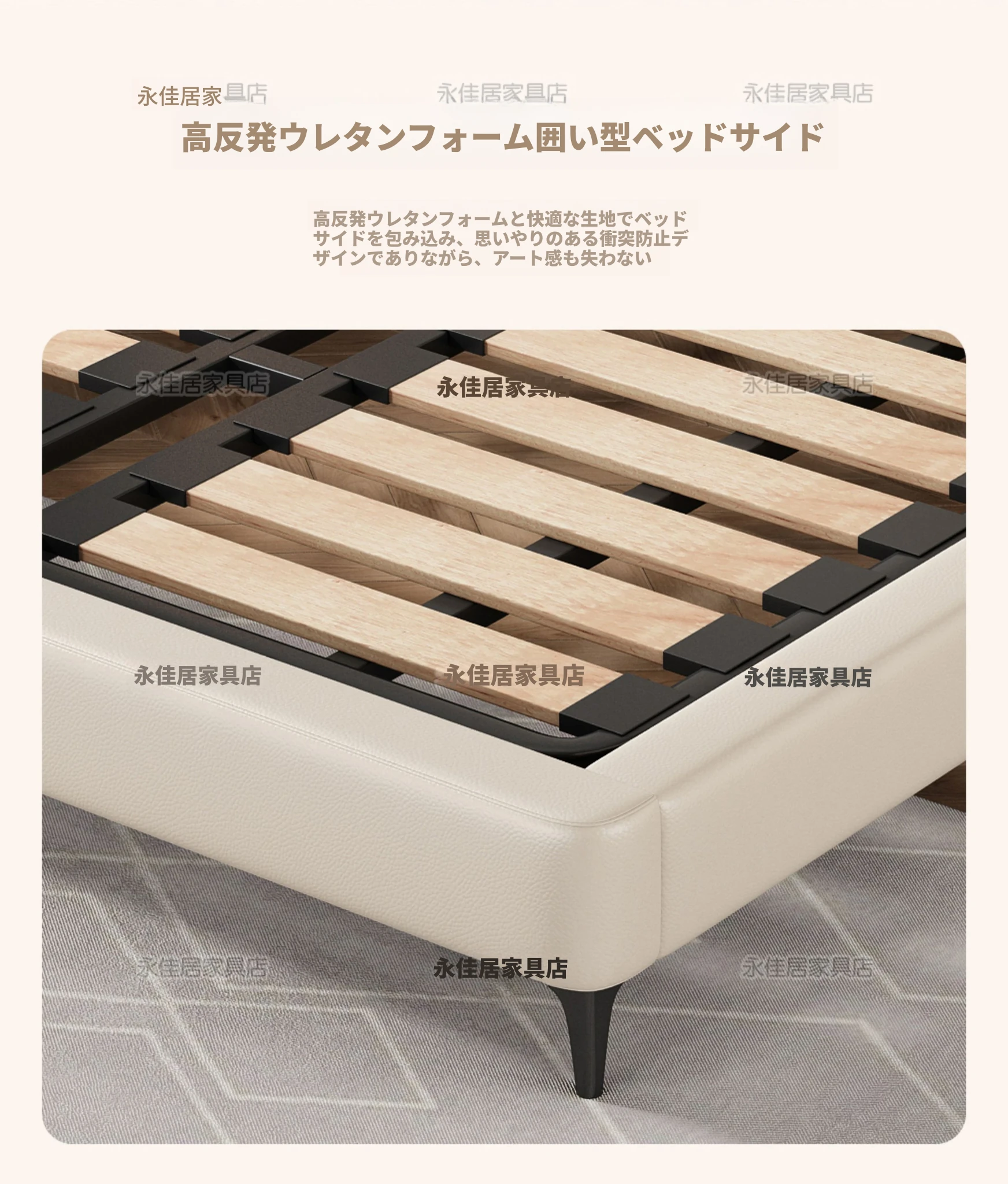 シングルベッド{ナディファン本革+スポンジヘッドボード}