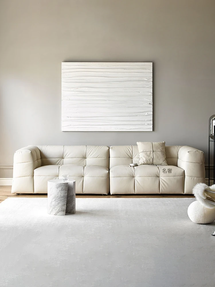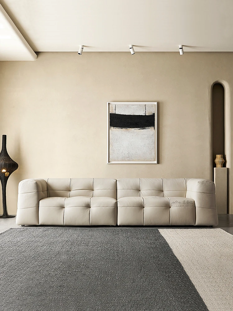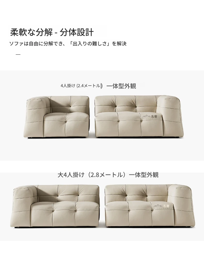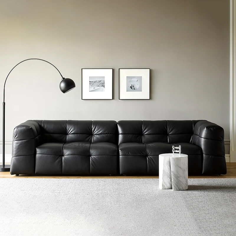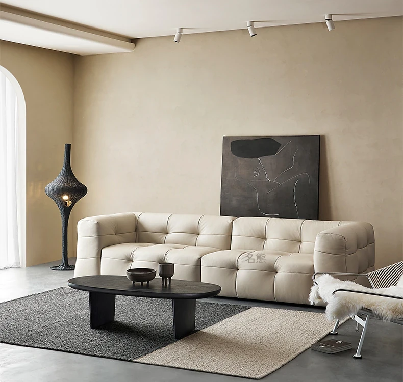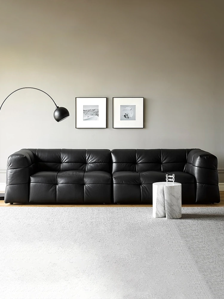 イタリアンミニマルデザインの真皮コットンキャンディソファー|小型住宅向けボバスタイルの北欧風軽奢モダンブラック|洗練されたシンプルさでお部屋を彩ります!