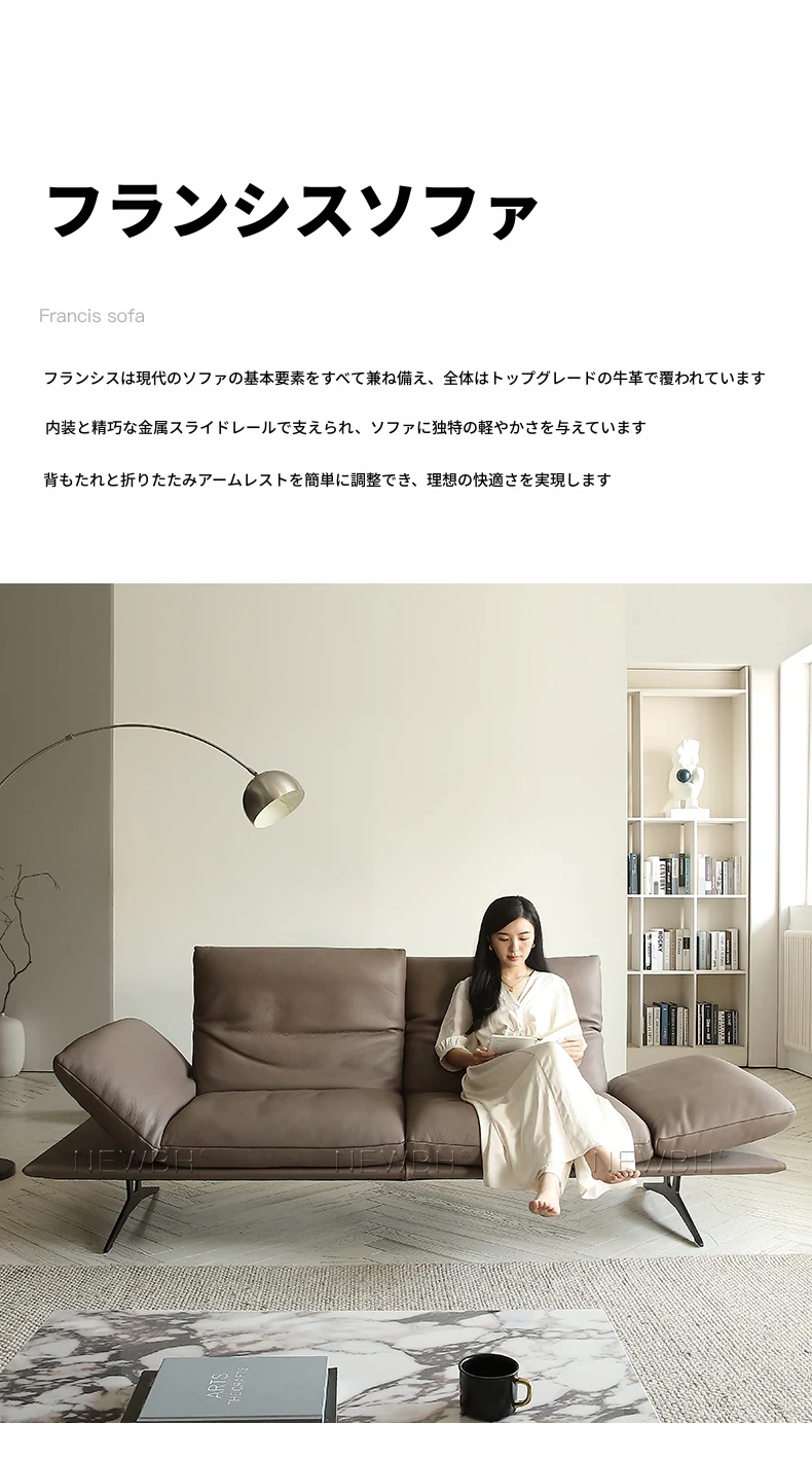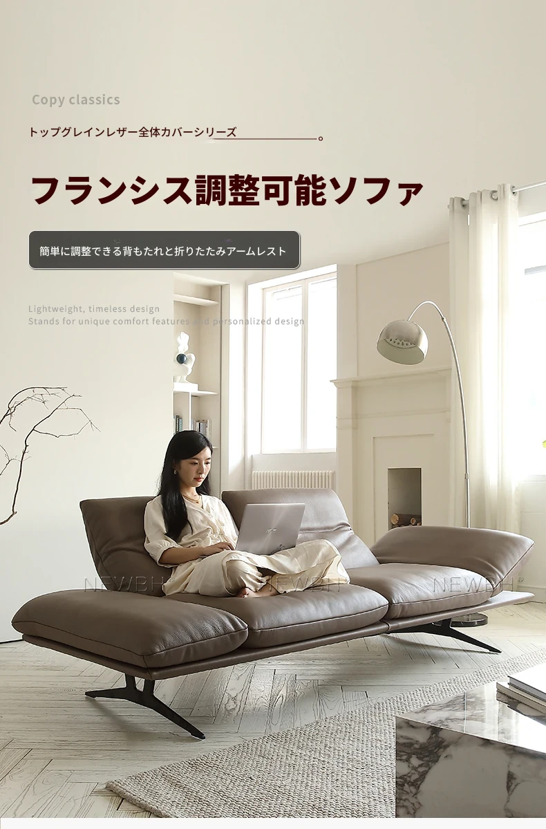 高級本革ソファ 背もたれ・アームレスト調整可能!スタイリッシュなハイバック&直線デザインで、モダンな空間を演出。機能的な全真皮ソファで、贅沢なひとときをお楽しみください。