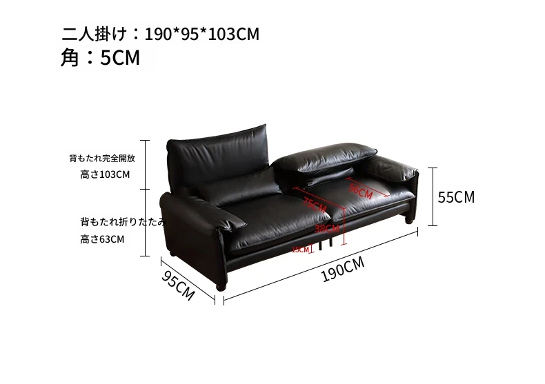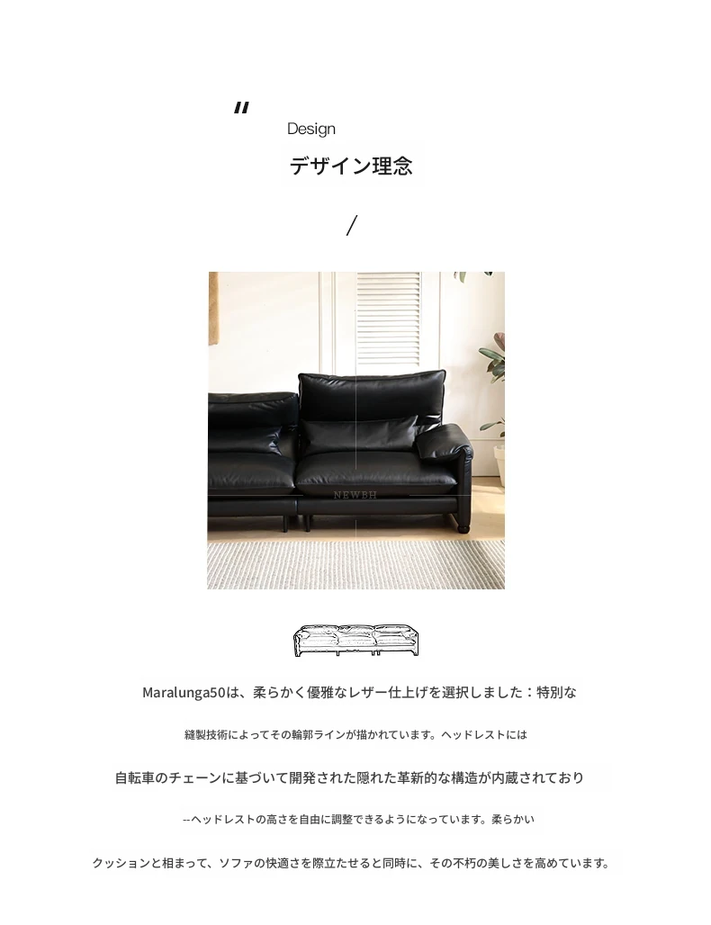 マラレンガ本革ソファ 高背もたれ 調節可能なヘッドレスト 小型リビングに最適 全面牛革使用 スタイリッシュなデザインで快適な座り心地を実現!あなたの空間を格上げする一品です。