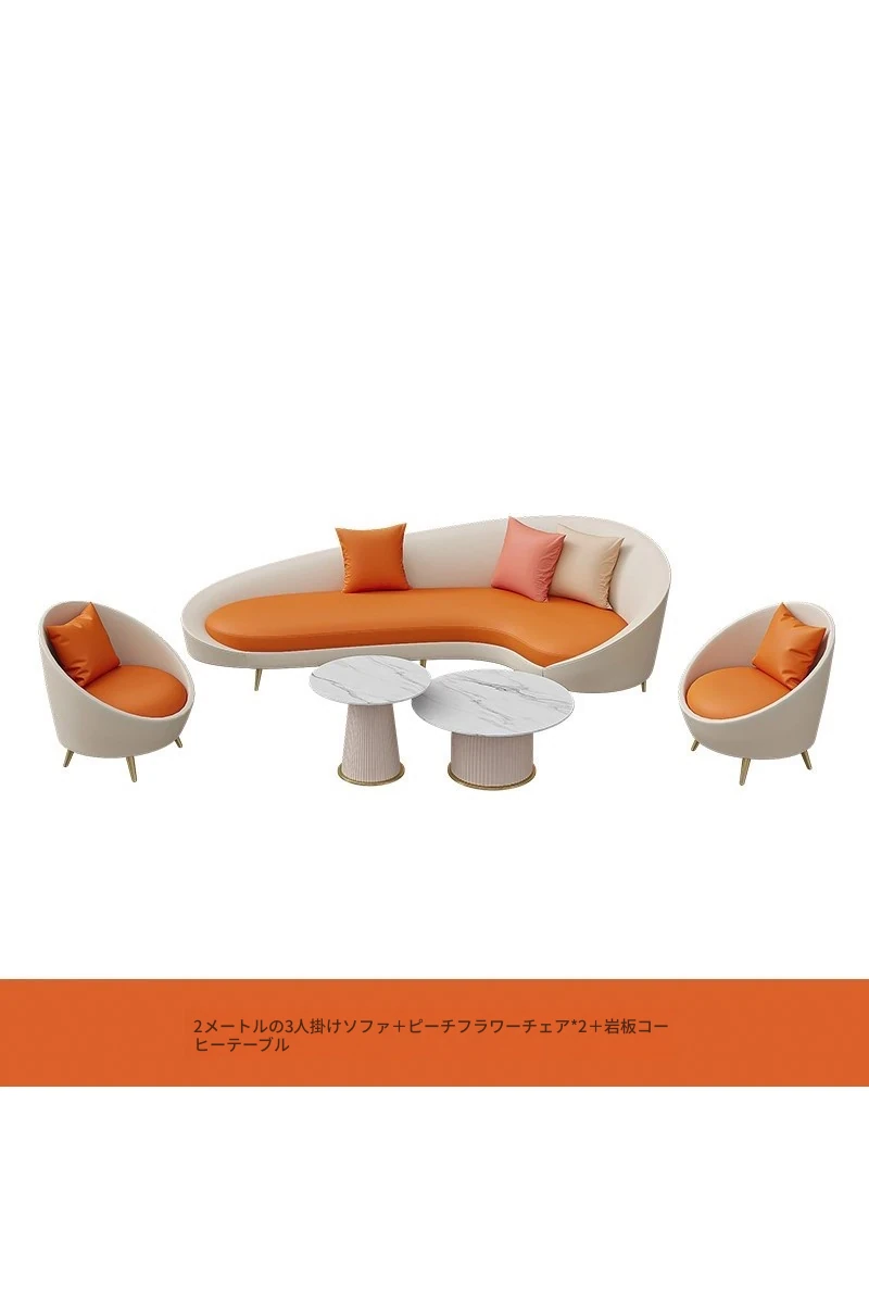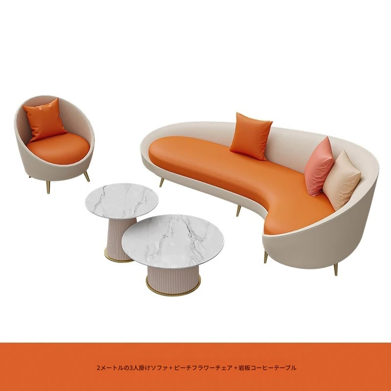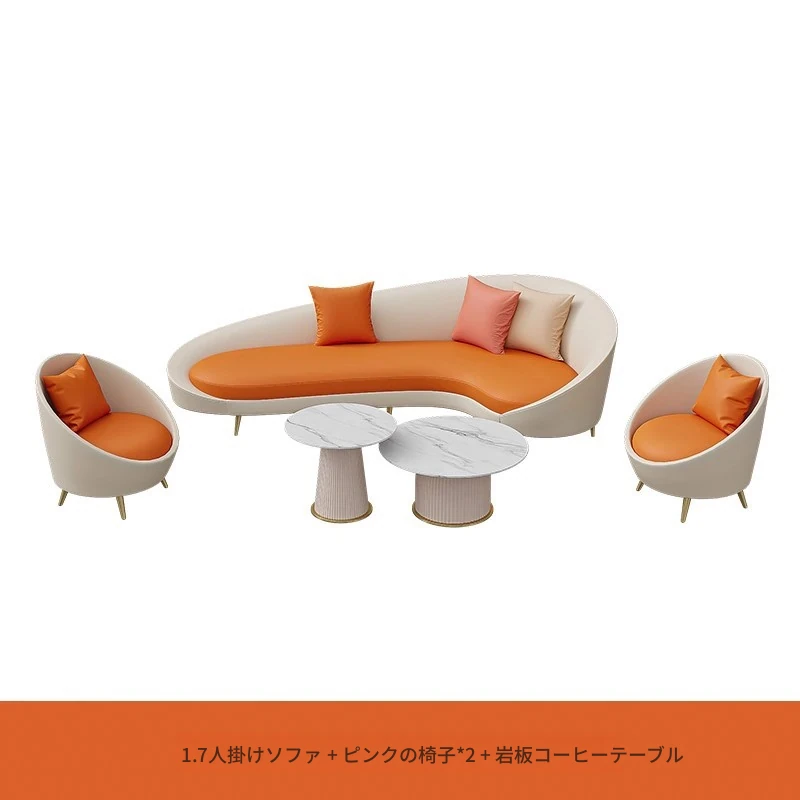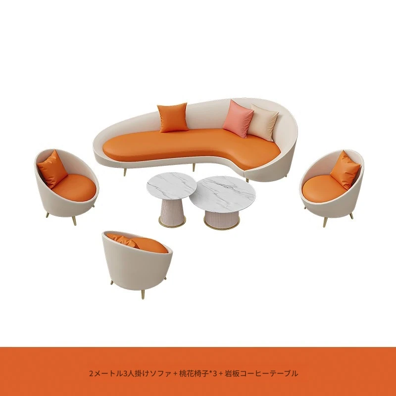 3人掛け+桃花椅子*2+岩板コーヒーテーブル