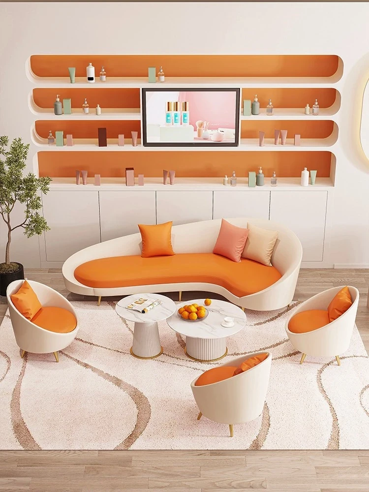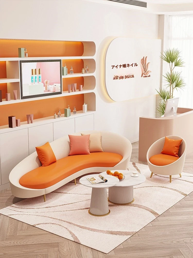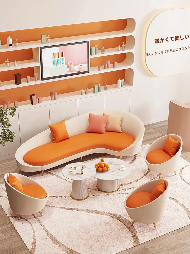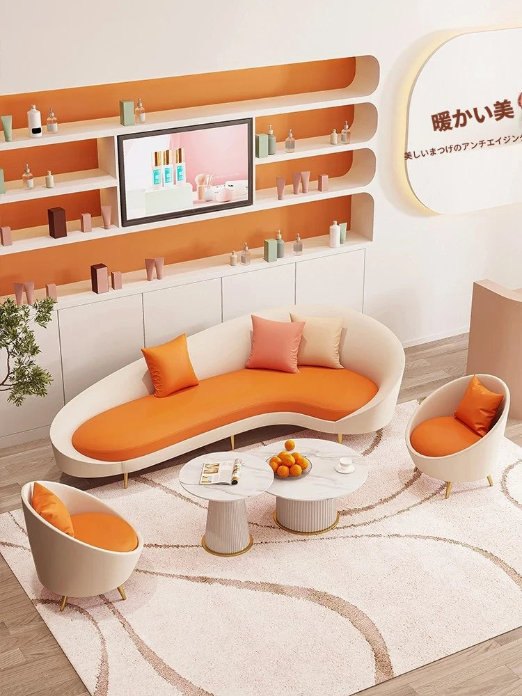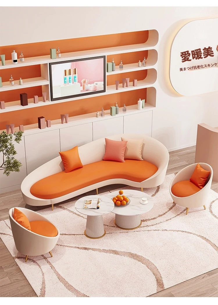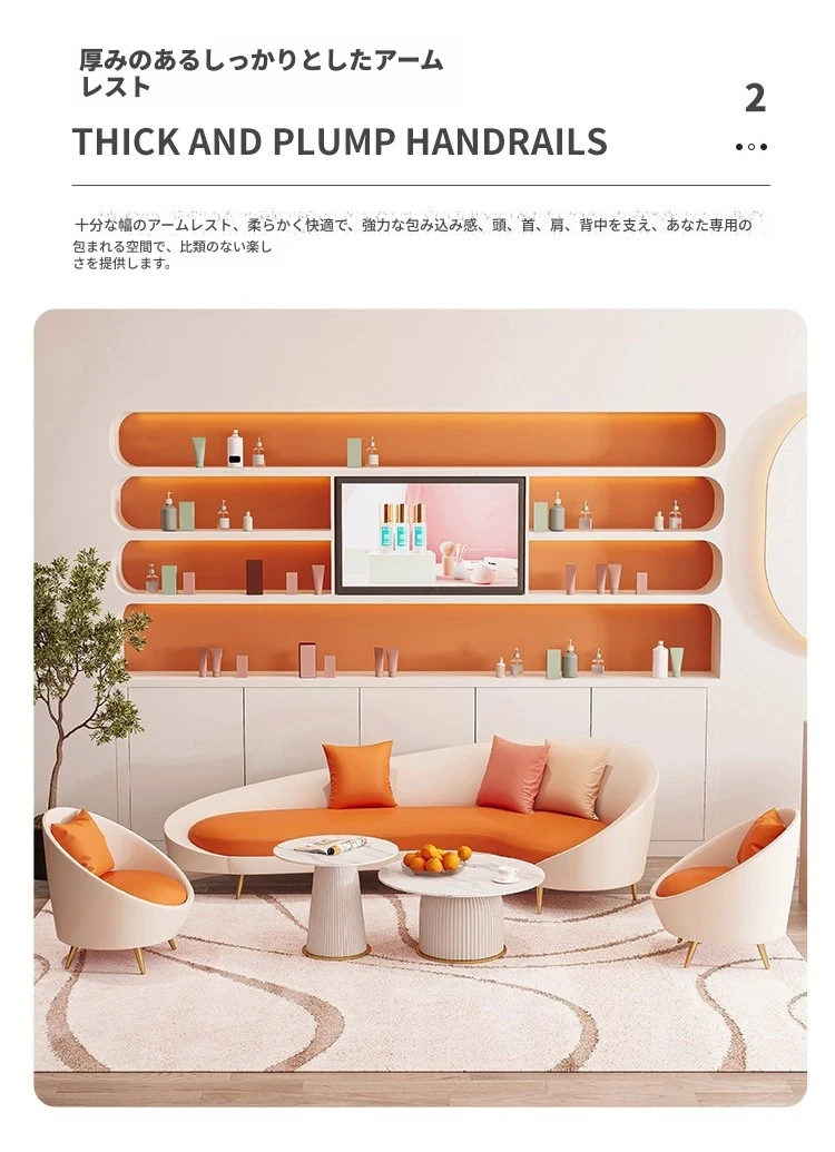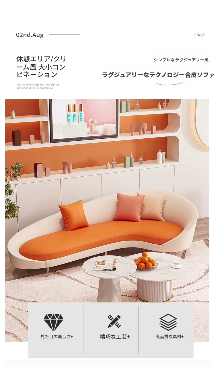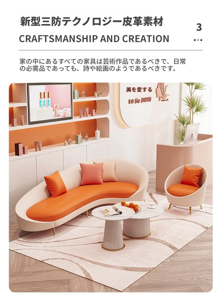テクノロジー布製ソファー 美容院の受付に最適なラグジュアリー 小型モダンリビングルーム向け 曲線デザイン 猫の爪にも優しい ファッション店にもぴったり!