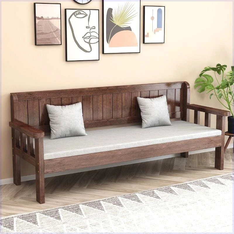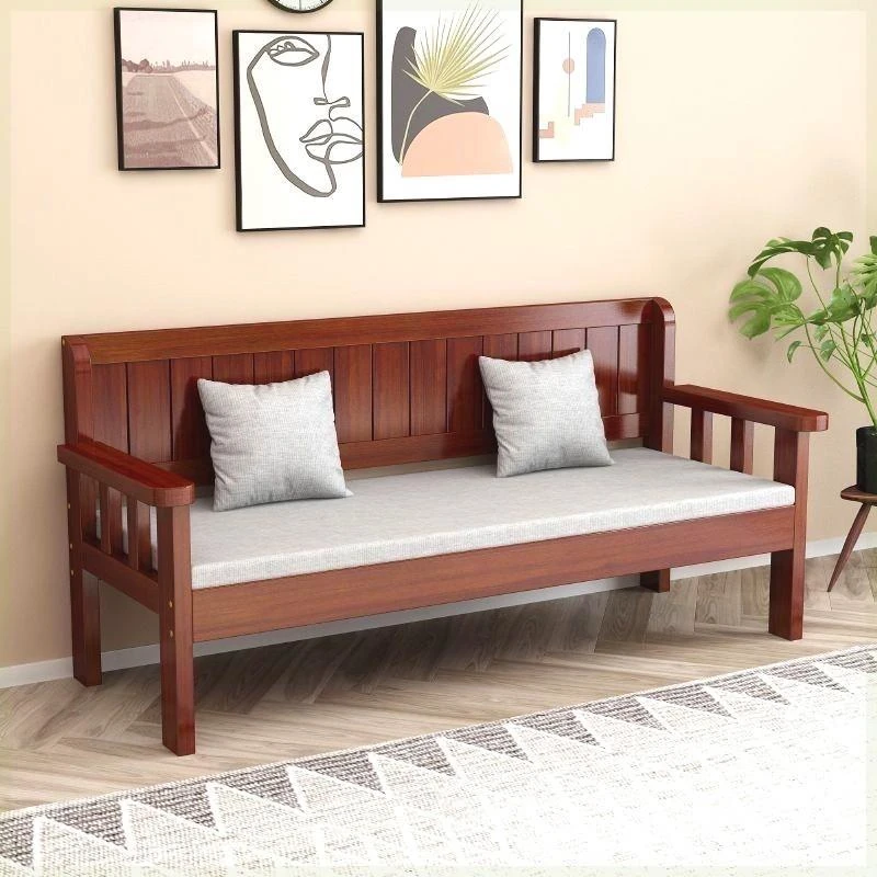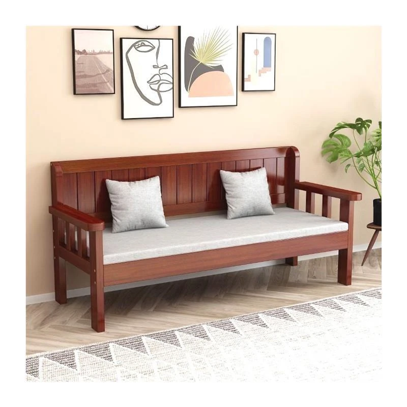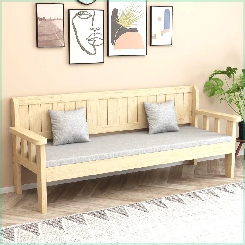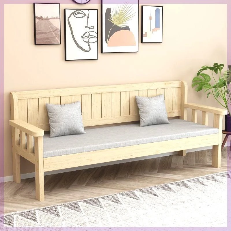 モダンミニマルデザインの実木ソファセット - リビングやバルコニーに最適な3人掛け・4人掛け背もたれ付きロングベンチ。狭いお部屋にもぴったりなスタイリッシュなソファチェアです!