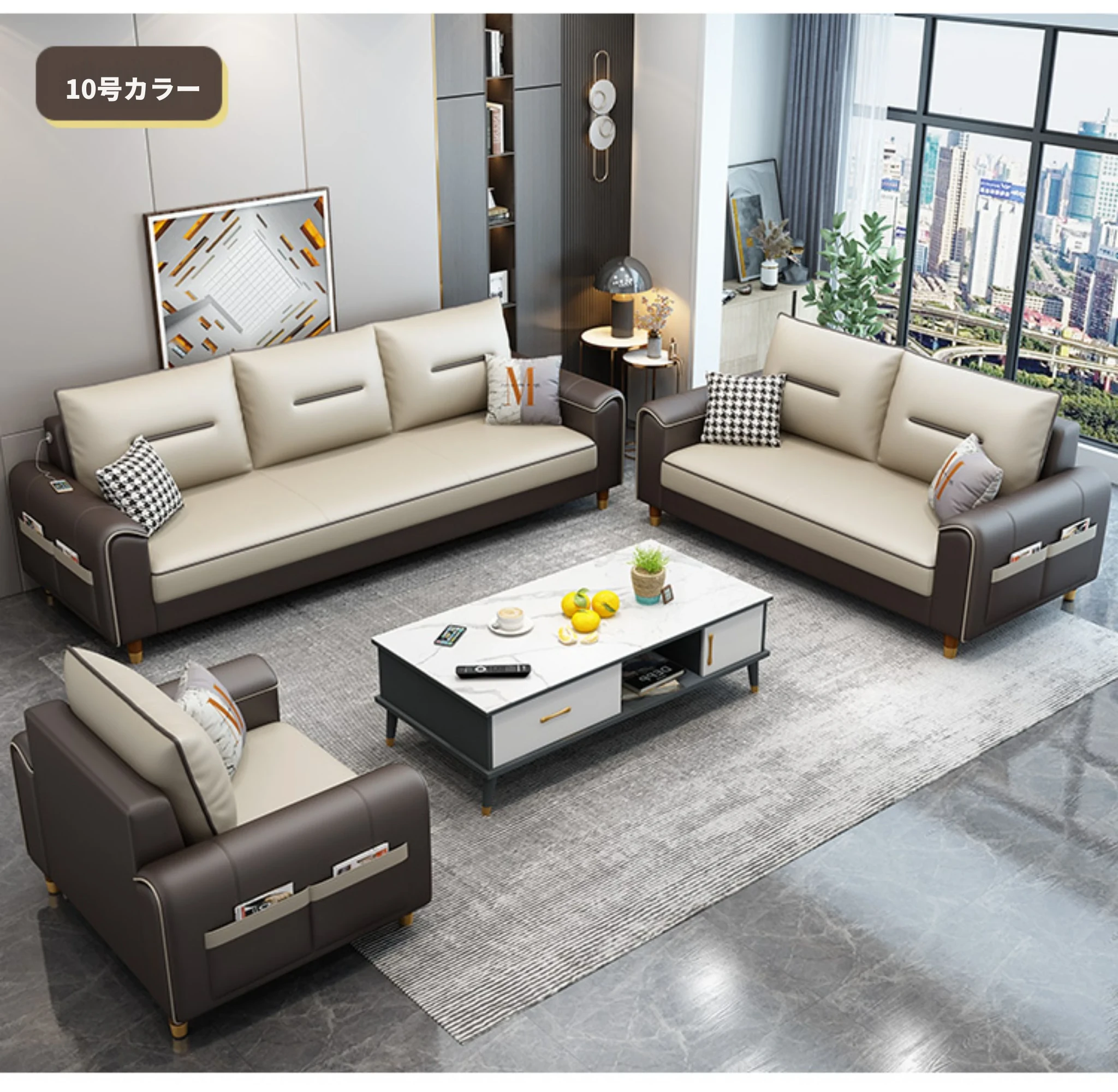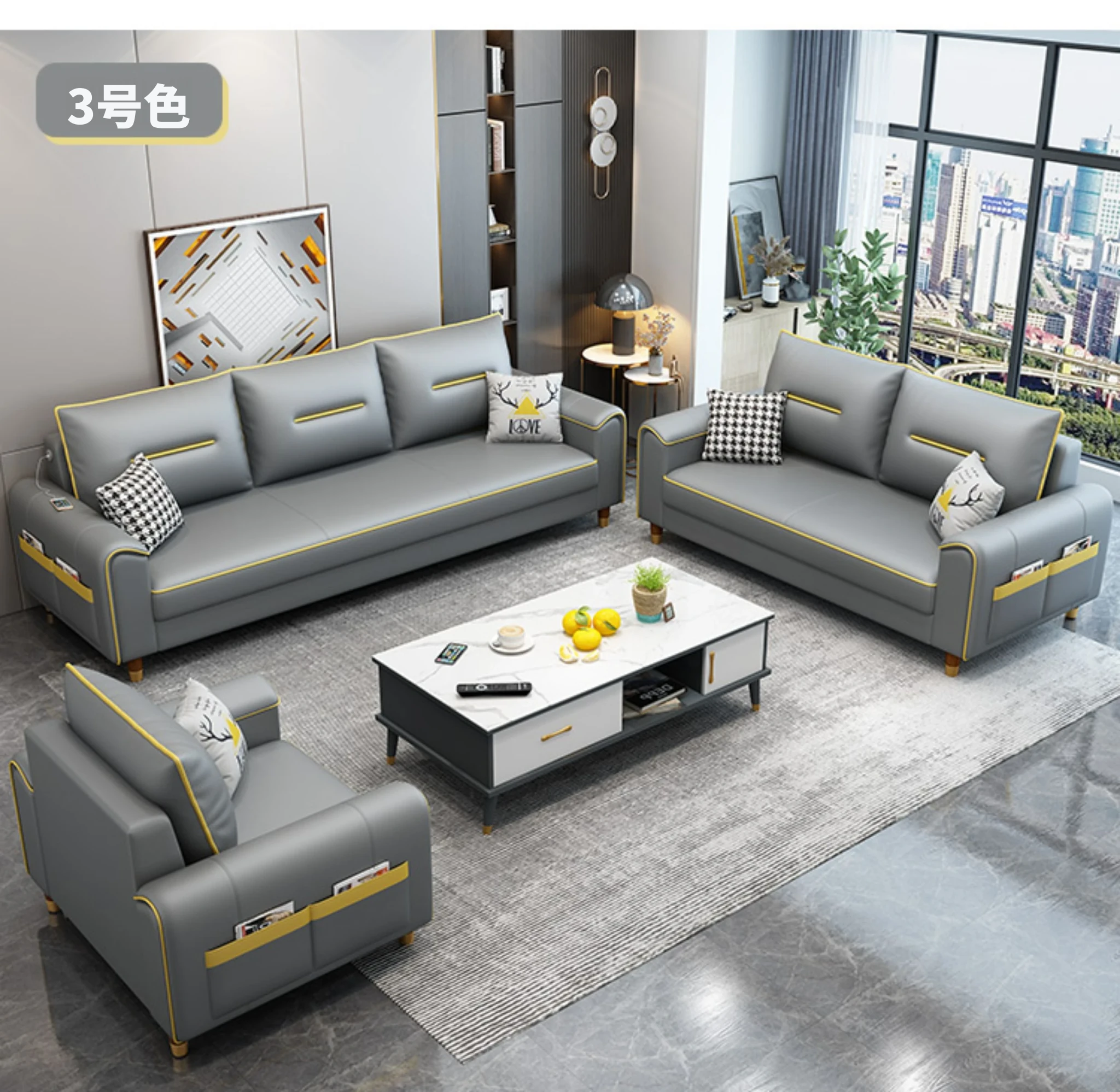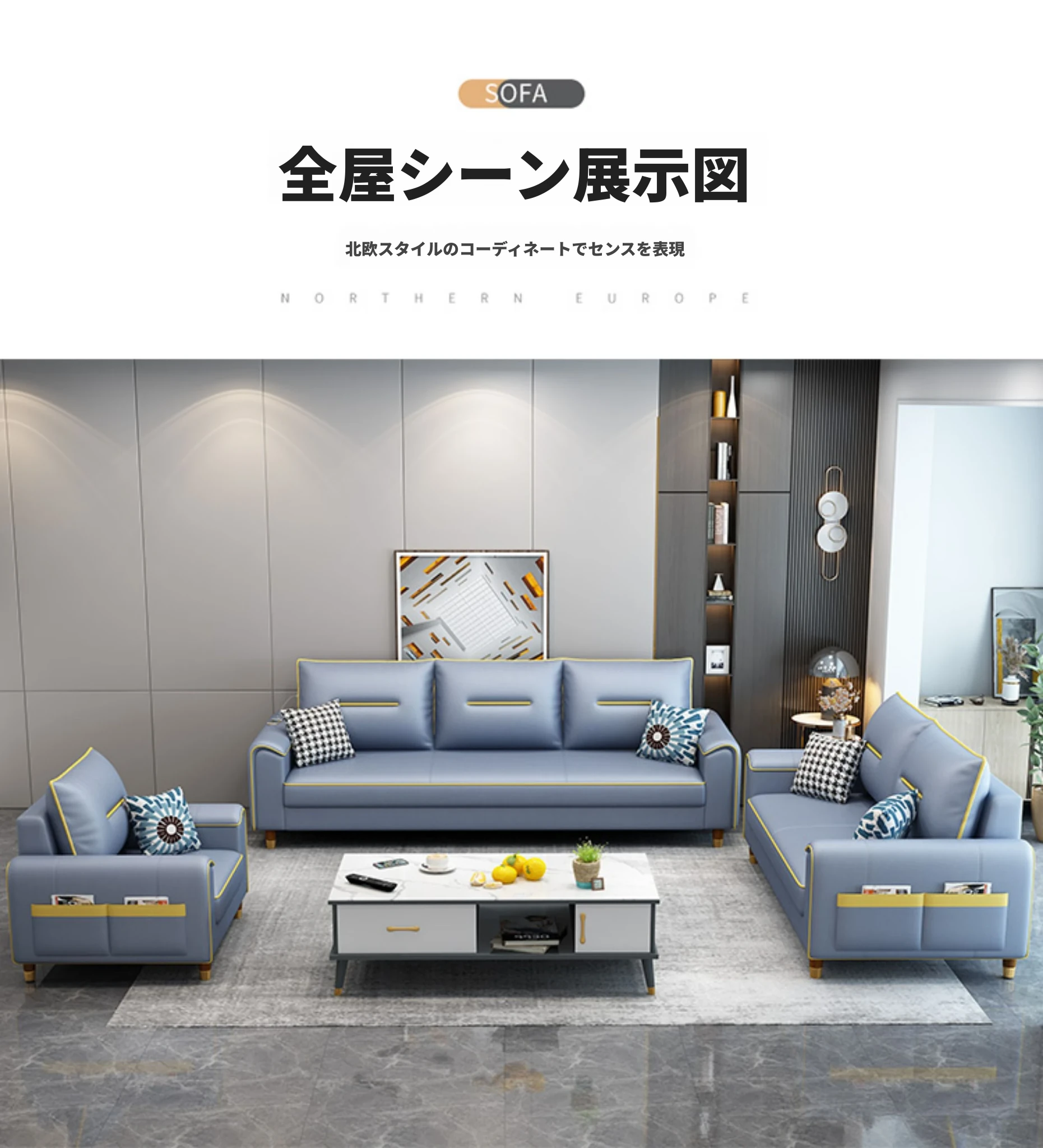 北欧スタイル2025年モデルの軽奢ラテックス製モダンミニマリスト猫爪防止皮革製小型リビング直排4人掛けソファセット - スタイリッシュで快適な空間を演出!