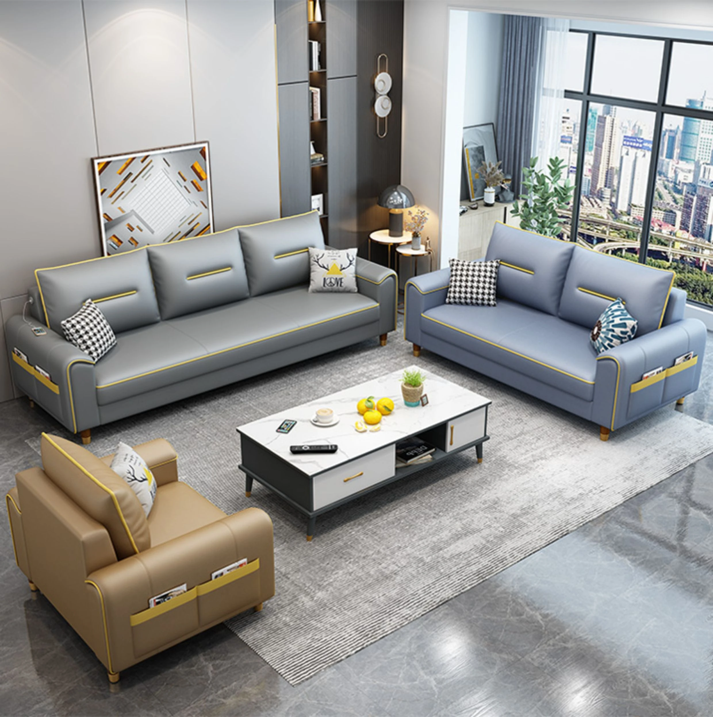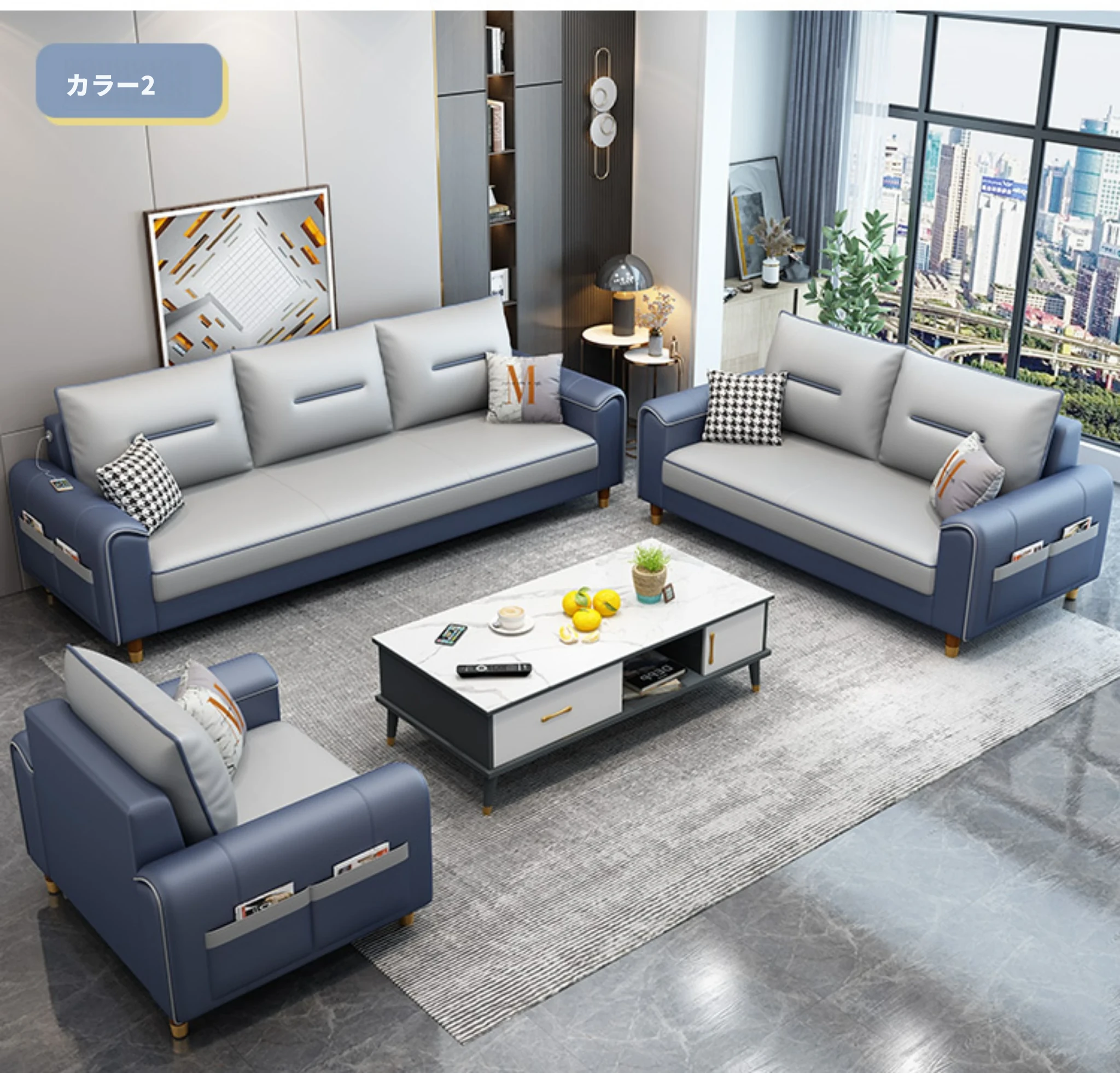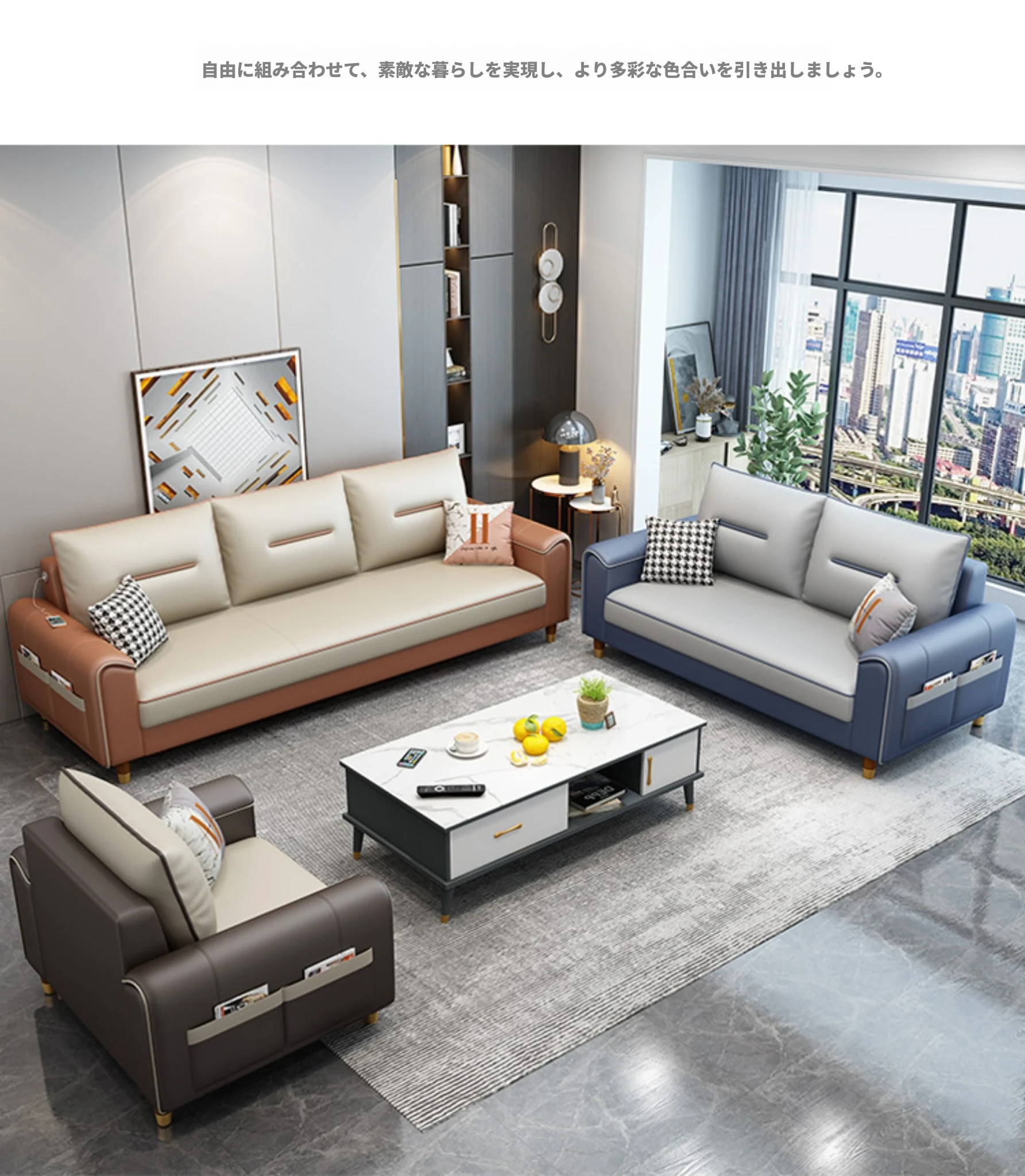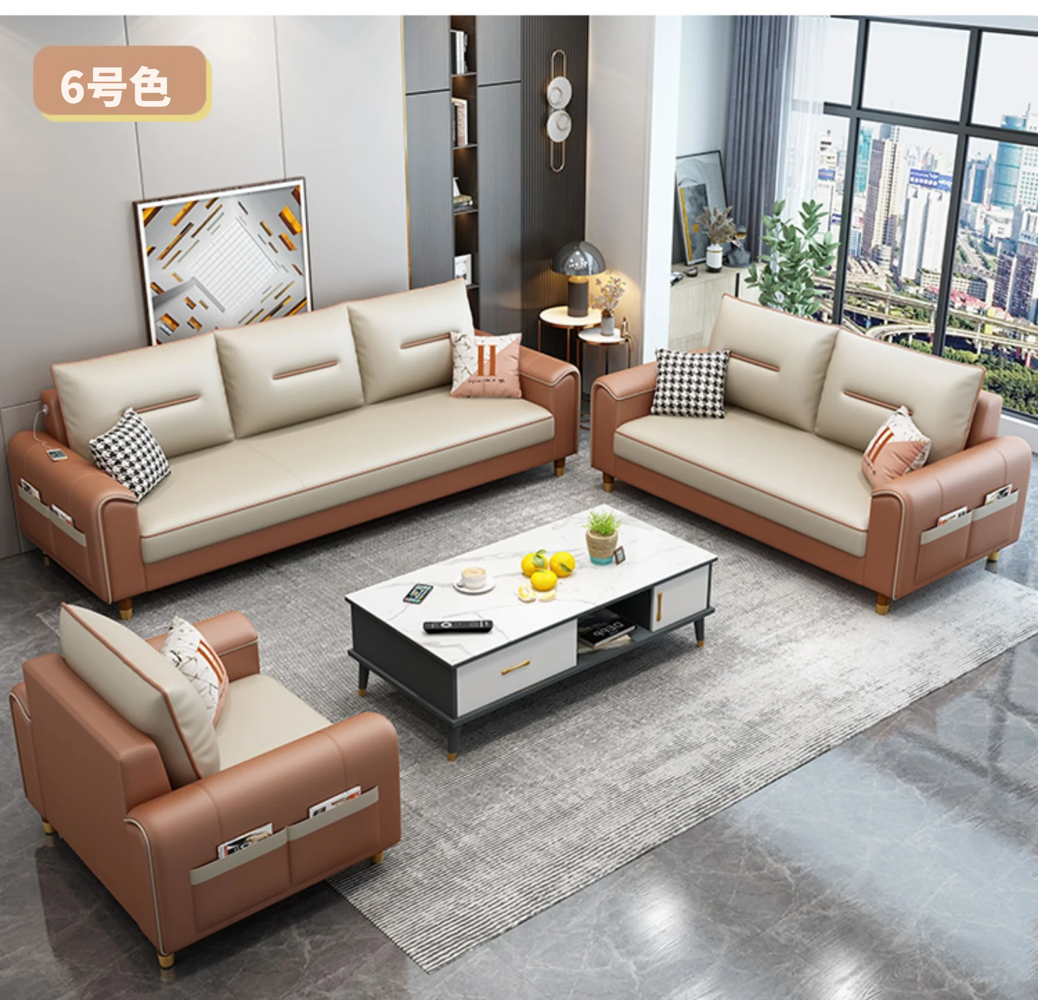 北欧スタイル2025年モデルの軽奢ラテックス製モダンミニマリスト猫爪防止皮革製小型リビング直排4人掛けソファセット - スタイリッシュで快適な空間を演出!