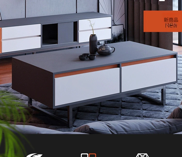 北欧スタイルの軽やかなラグジュアリー、ミニマリストデザインのイタリアンティーテーブル&テレビボードセット - モダンな小型住宅にぴったりなリビングや寝室に最適!