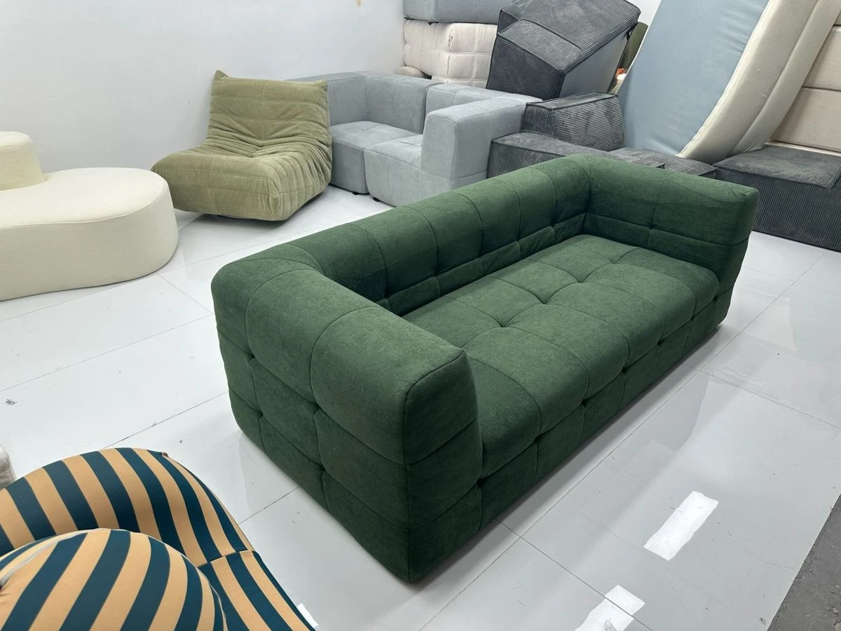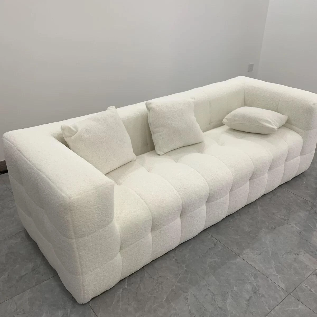 2025年新作!クリーム風リビングルーム用モダンミニマリスト北欧スタイルの布製ソファ。小型アパートにもぴったりのダブルソファで、居心地の良さとスタイリッシュさを両立!