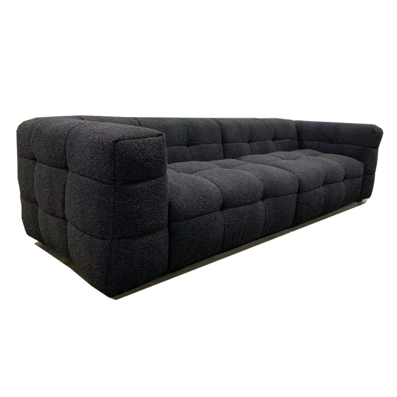 フレンチレトロスタイルのブラックシュガークラウドソファ|ラグジュアリー感漂うデザイン|おしゃれなリビングや接客スペースにぴったりな高級黒革ソファ|インフルエンサーおすすめのトレンド商品!