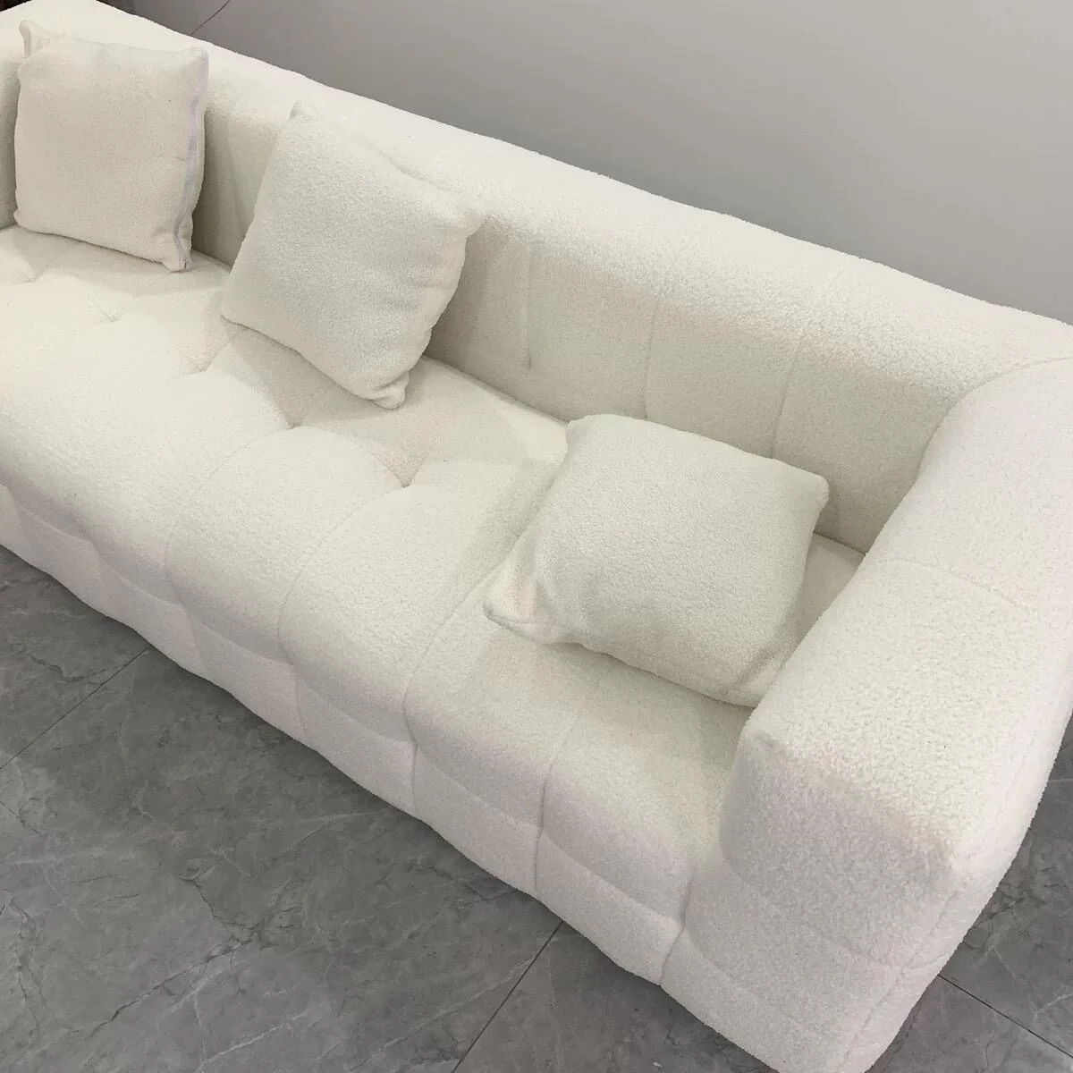 新作!本革クリームシュークリーム雲ソファー - シンプルでモダンなリビングに最適、ラウレンスデザインの直排真皮ソファ!快適さとスタイルを両立した贅沢なひとときを。
