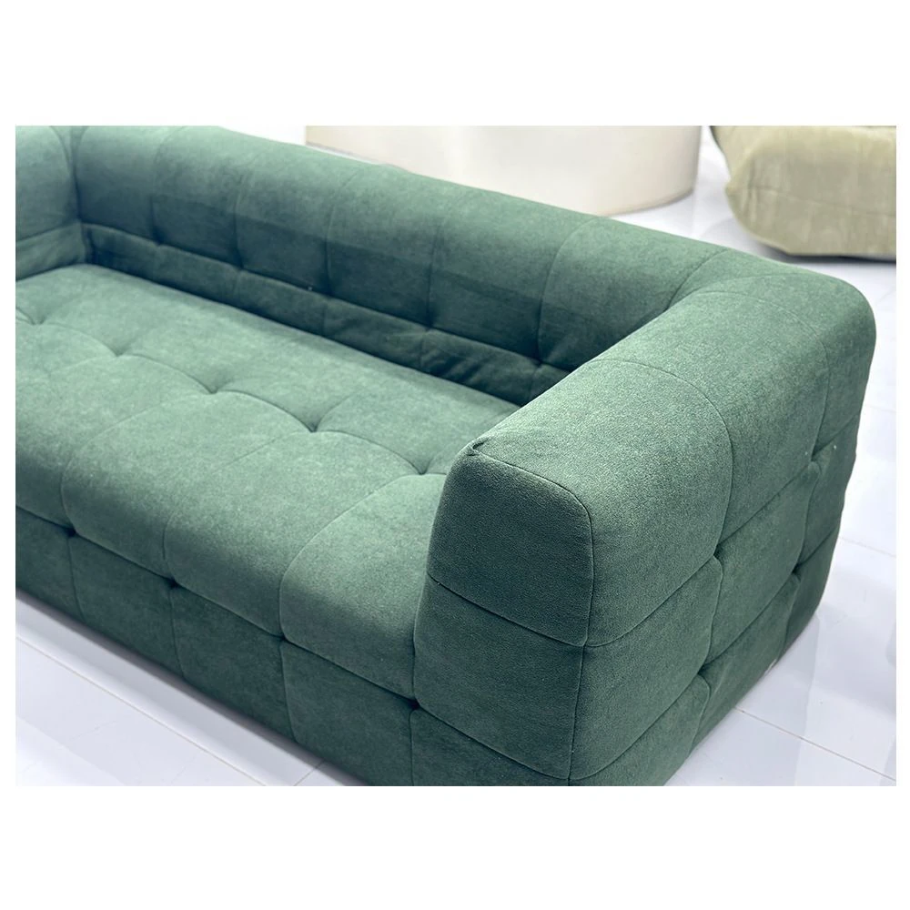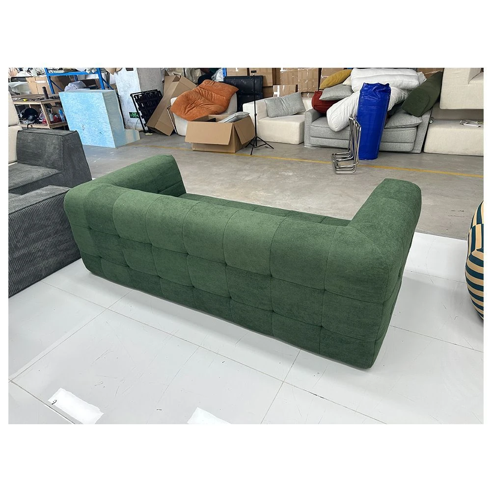 レトロ風の猫が爪を研ぐ布製ソファ、ヘッドレスト付き、シェニール素材のデザイナーズリビングソファ。小さな部屋にもぴったりなストレートタイプ、鮮やかなグリーンでお部屋を明るく演出!