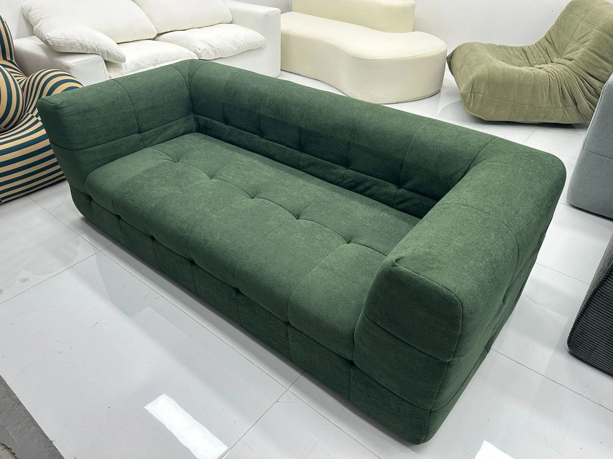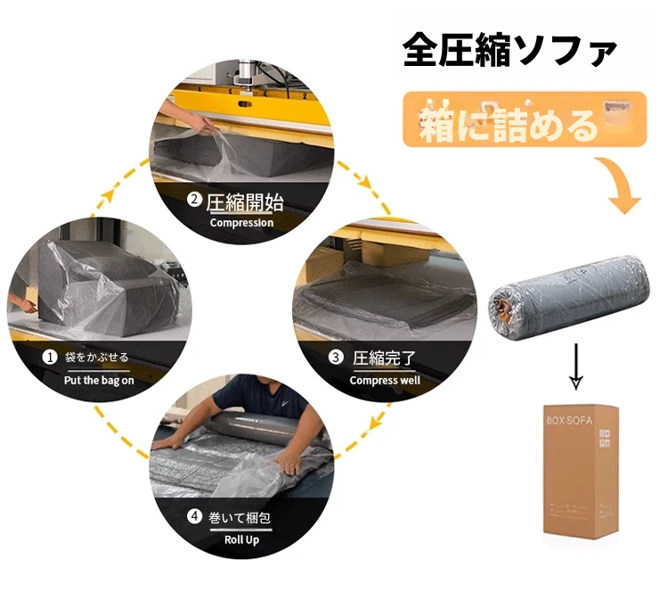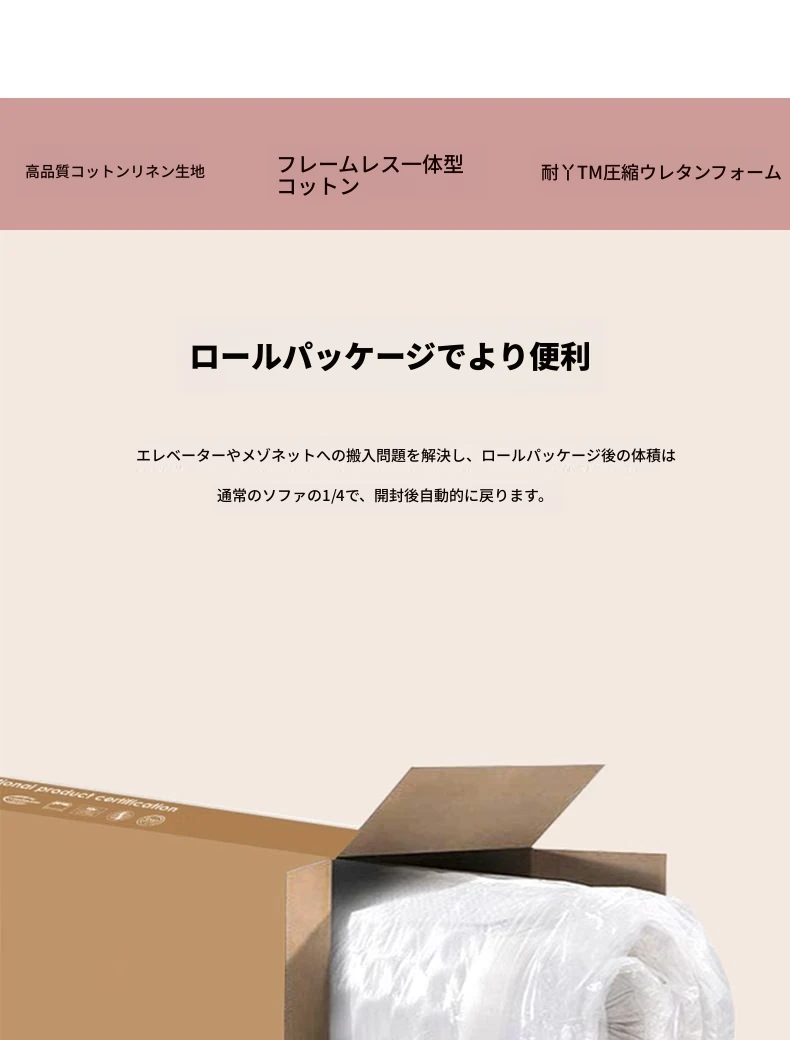真空圧縮モダンミニマリスト豆腐ブロックソファ|小さなリビングに最適なレトロストレートロールパッケージファブリックソファ!おしゃれでスペースを有効活用!