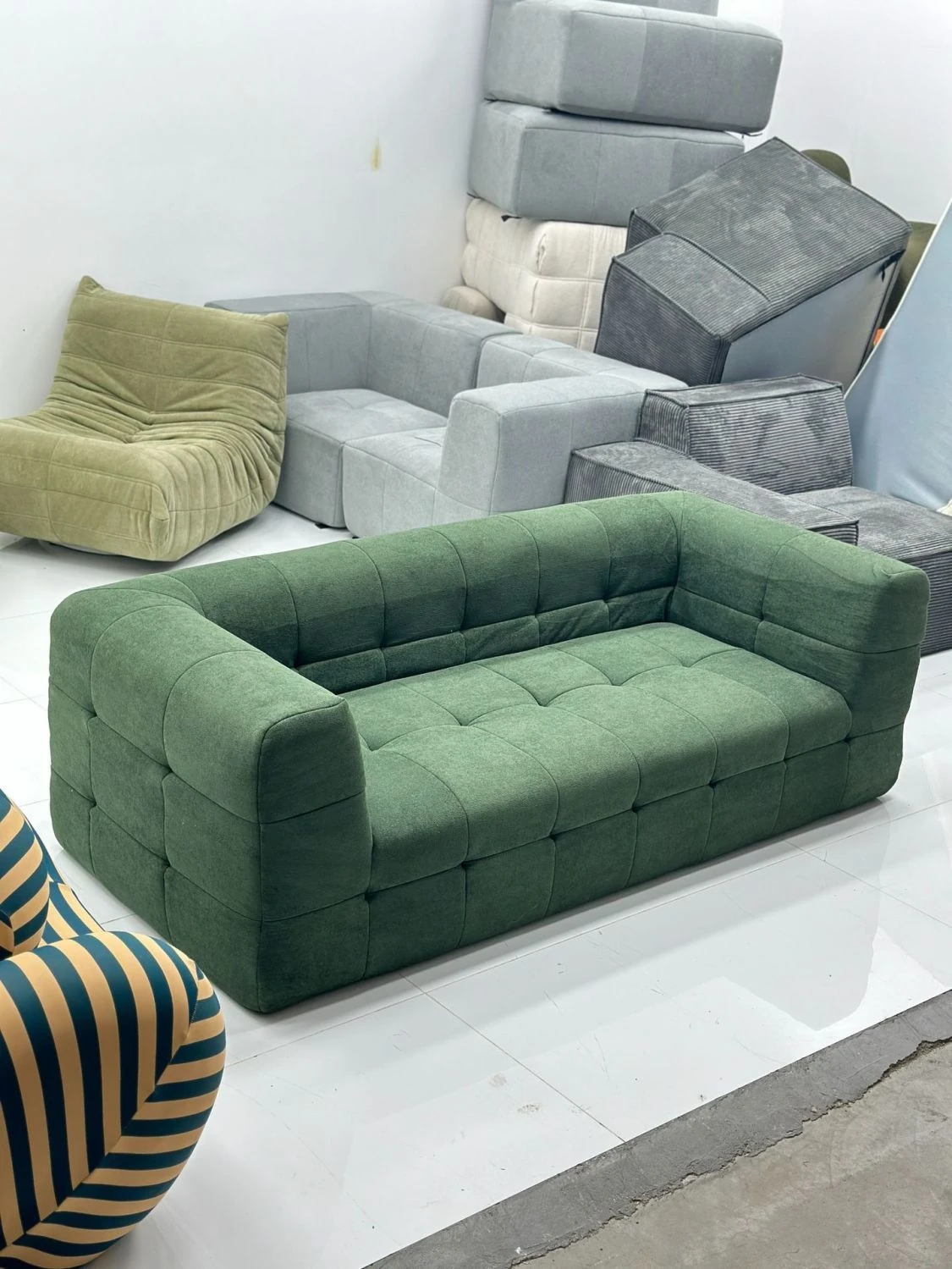 北欧スタイルの純粋な海綿使用!真空圧縮されたマシュマロソファ、コンパクトな家に最適。イタリアンデザインのフレームレスソファで、人気のインテリアを手に入れよう!快適さとスタイルを両立させた一品です。