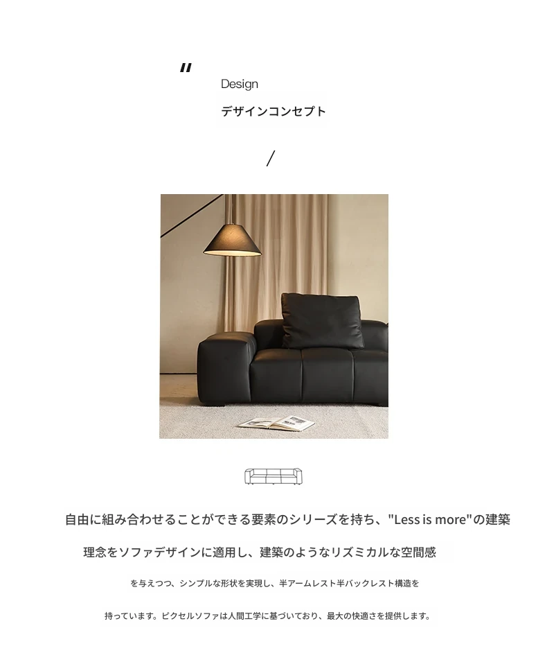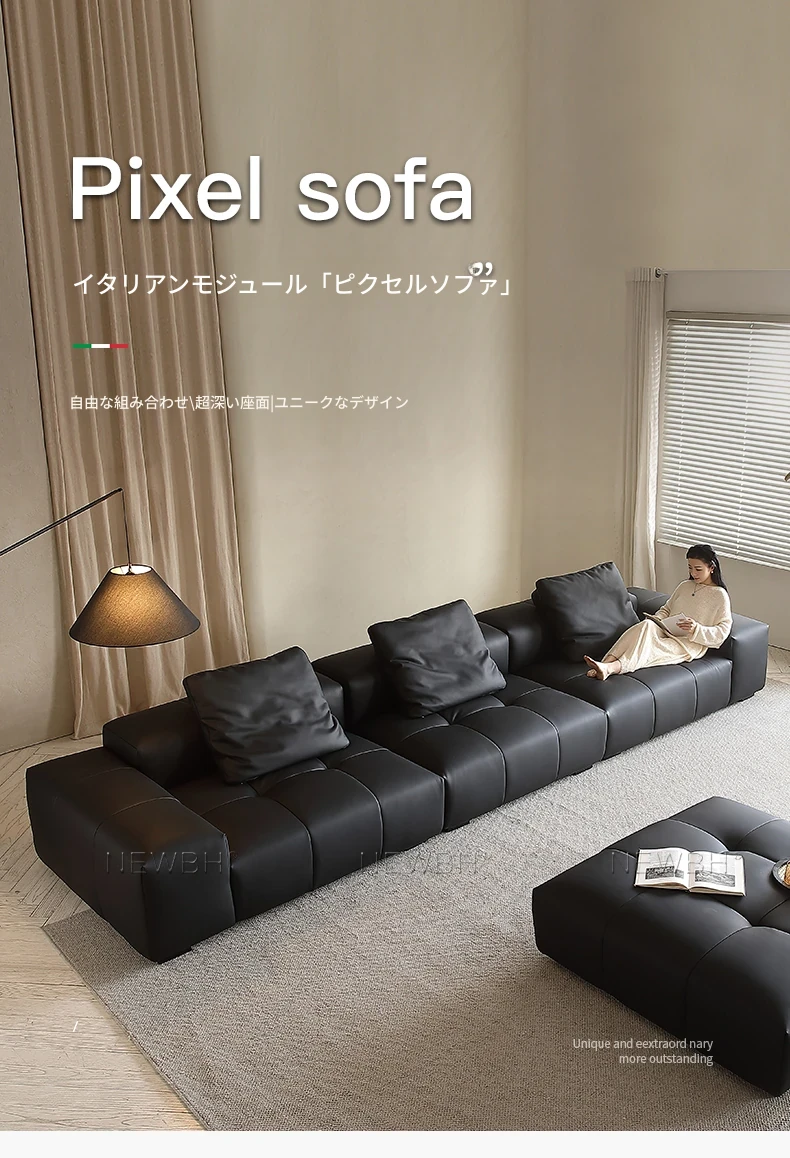 ピクセルソファ モジュラー 本革 ヴィラ向け 小型リビングに最適なイタリアンミニマルデザインソファ SABA - 高級感あふれる頭層牛革使用、快適な座り心地でおしゃれな空間を演出!