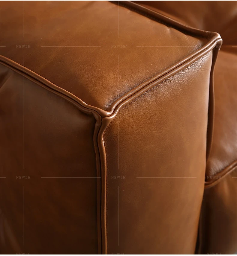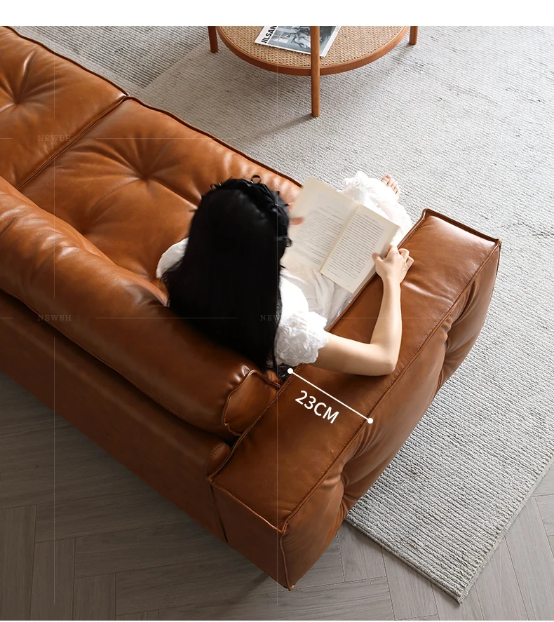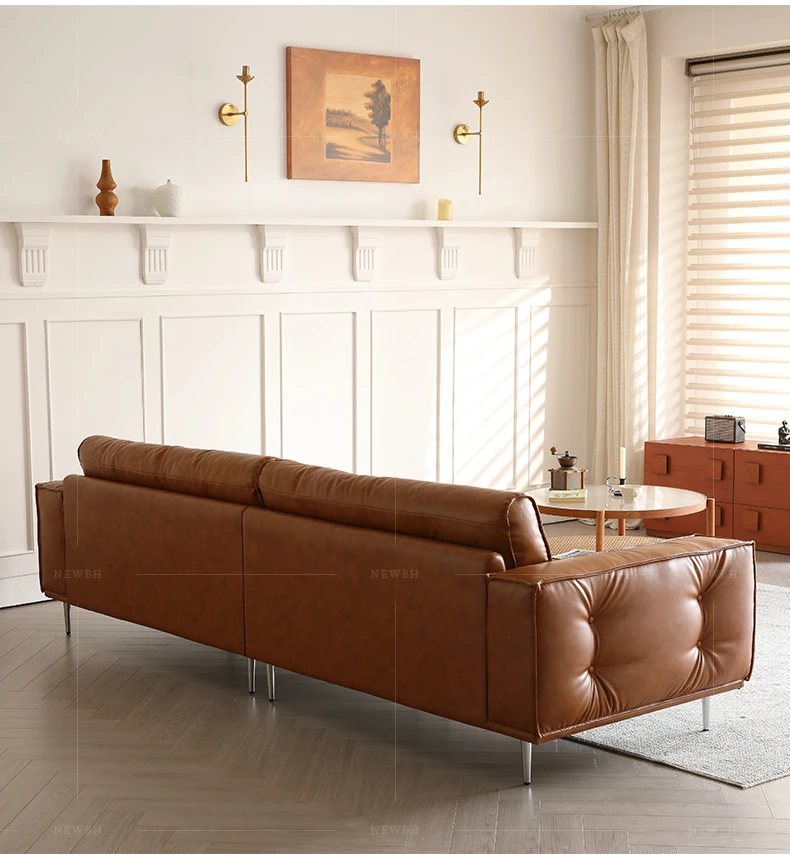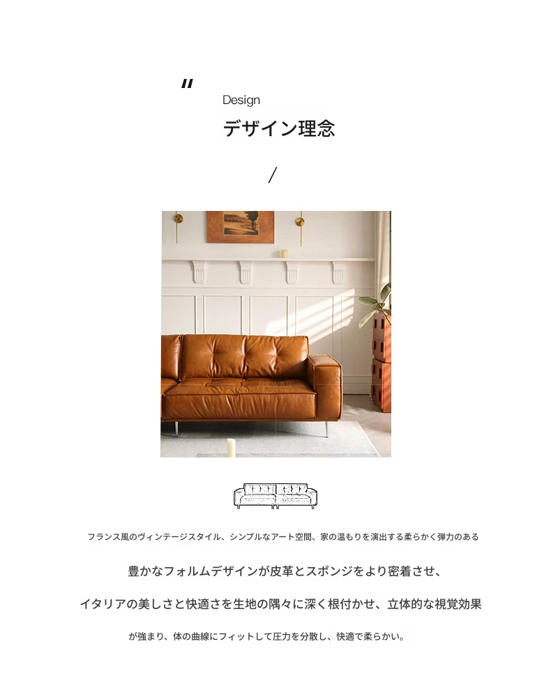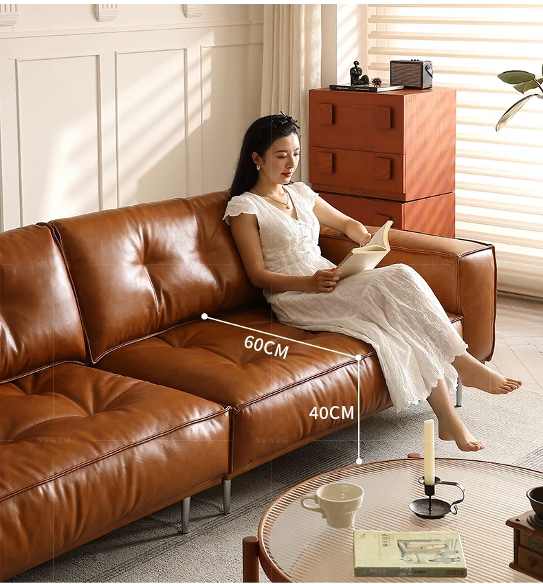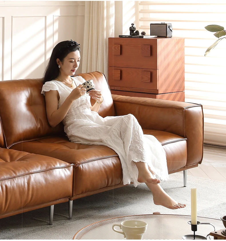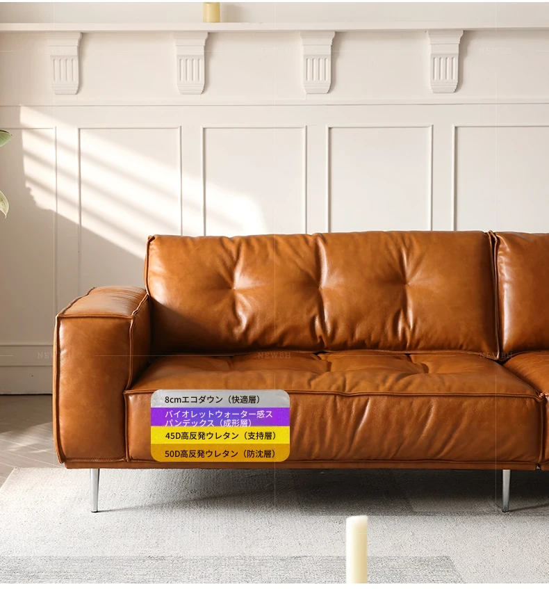 本格派デザインの真皮トーストソファ - 中古風のリビングにぴったり!大小どちらの部屋にも対応、全頭層オイルワックスレザー使用。高級感溢れるスタイルで、あなたの空間を格上げします!