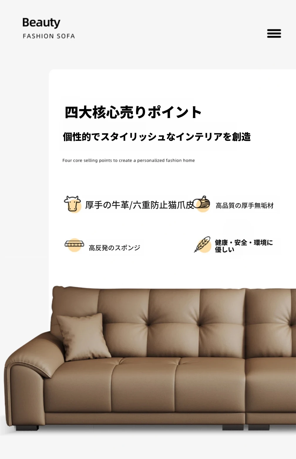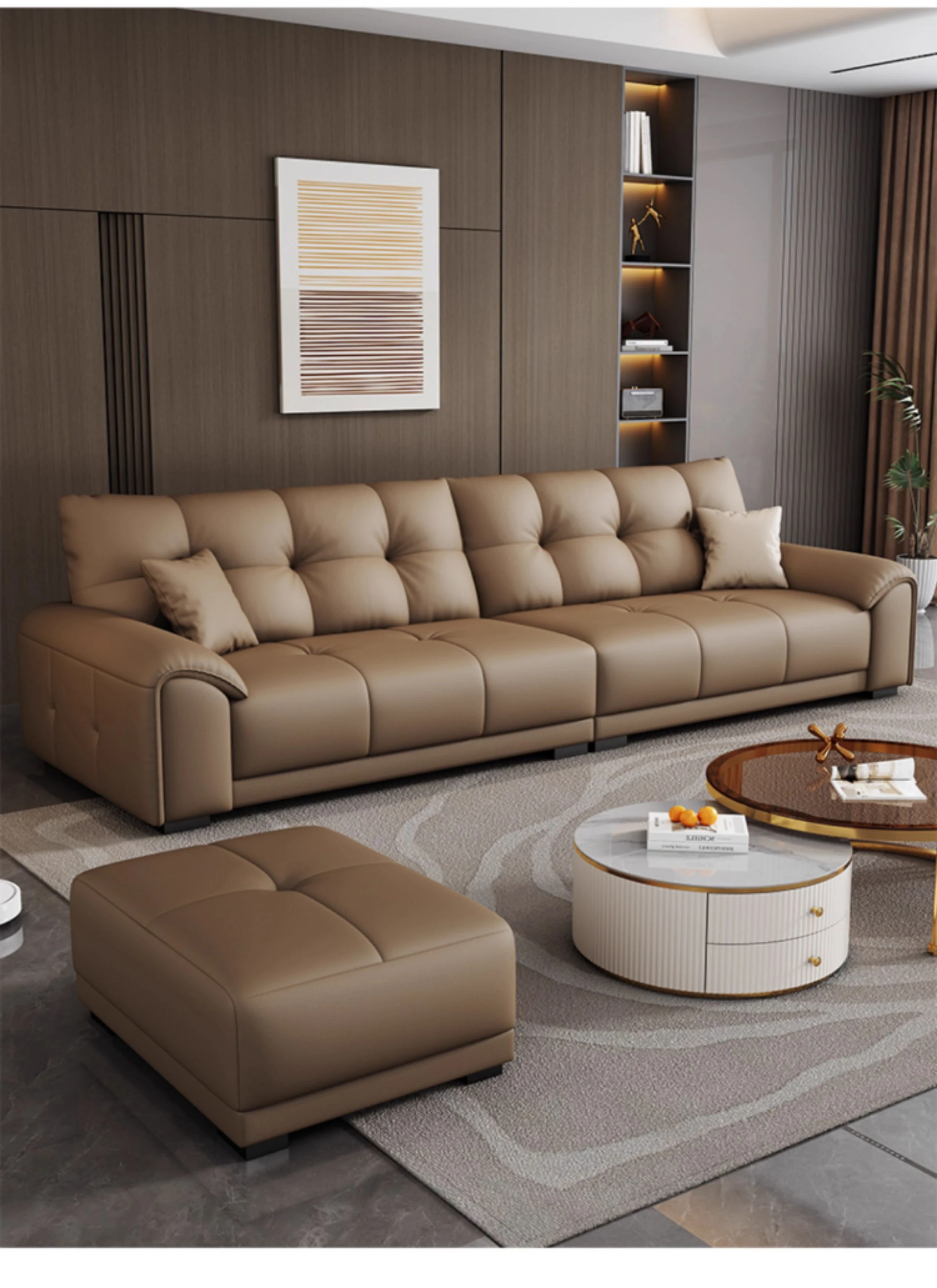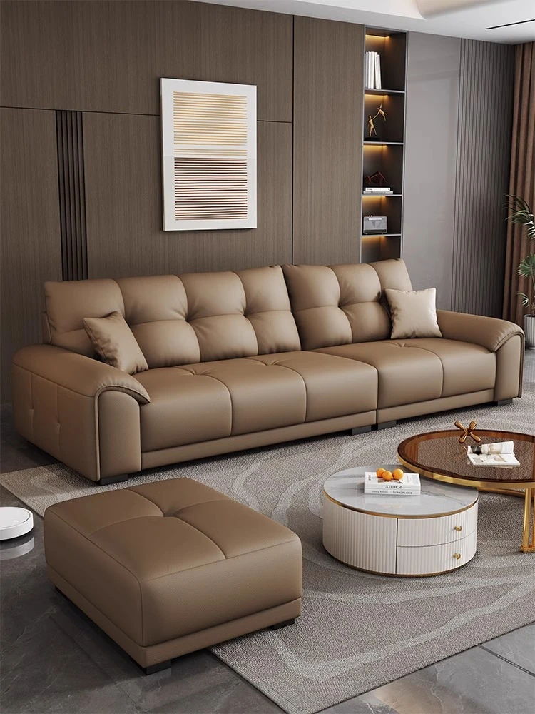 粤佳居2025年新作!イタリアンミニマルデザインの小型リビング向け、本革使用のモダンでシンプルなキャットクローソファ。おしゃれで快適な空間を演出し、ペットも安心して使える!
