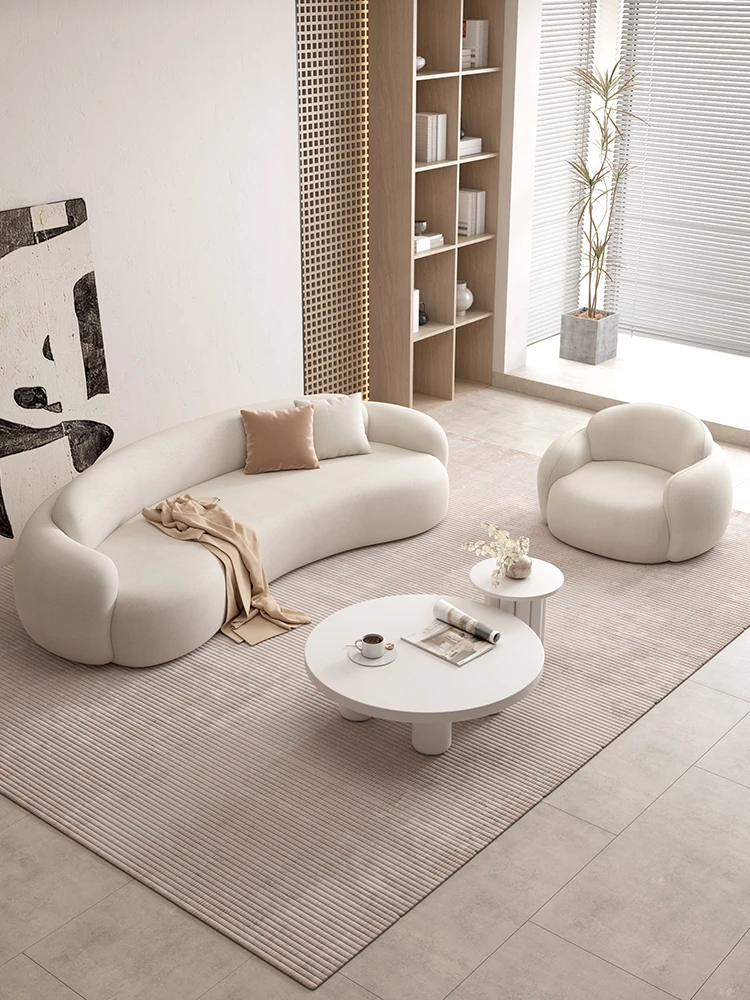 北欧スタイルのクリーミーなカーブソファ 小型リビングに最適 シンプルで洗練されたデザイン 美容院の待機スペースやアパレルショップにぴったり インスタ映えするおしゃれなインテリア!