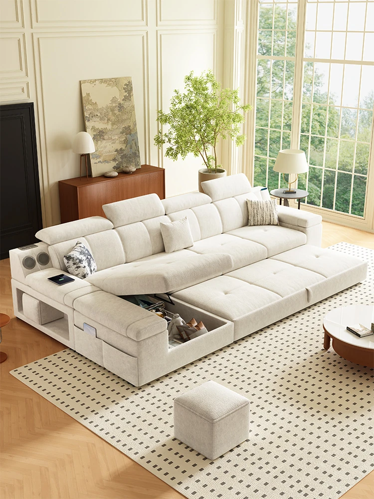 2025年新作!広東仏山製の布張りソファ、現代的でシンプルなデザインの伸縮可能な直排ソファベッドと貴妃スタイルのコンビネーション。おしゃれなリビングにぴったりの快適空間を演出!