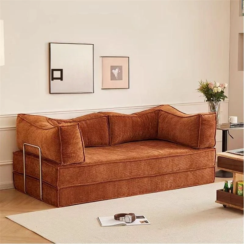 純粋なスポンジ圧縮レトロコーデュロイ布ソファ、リビングルームに最適な小型アパート用、シンプルなアメリカンスタイルの折りたたみラウンジソファベッド。快適さとスタイルを両立した、あなたのくつろぎ空間にぴったりです!