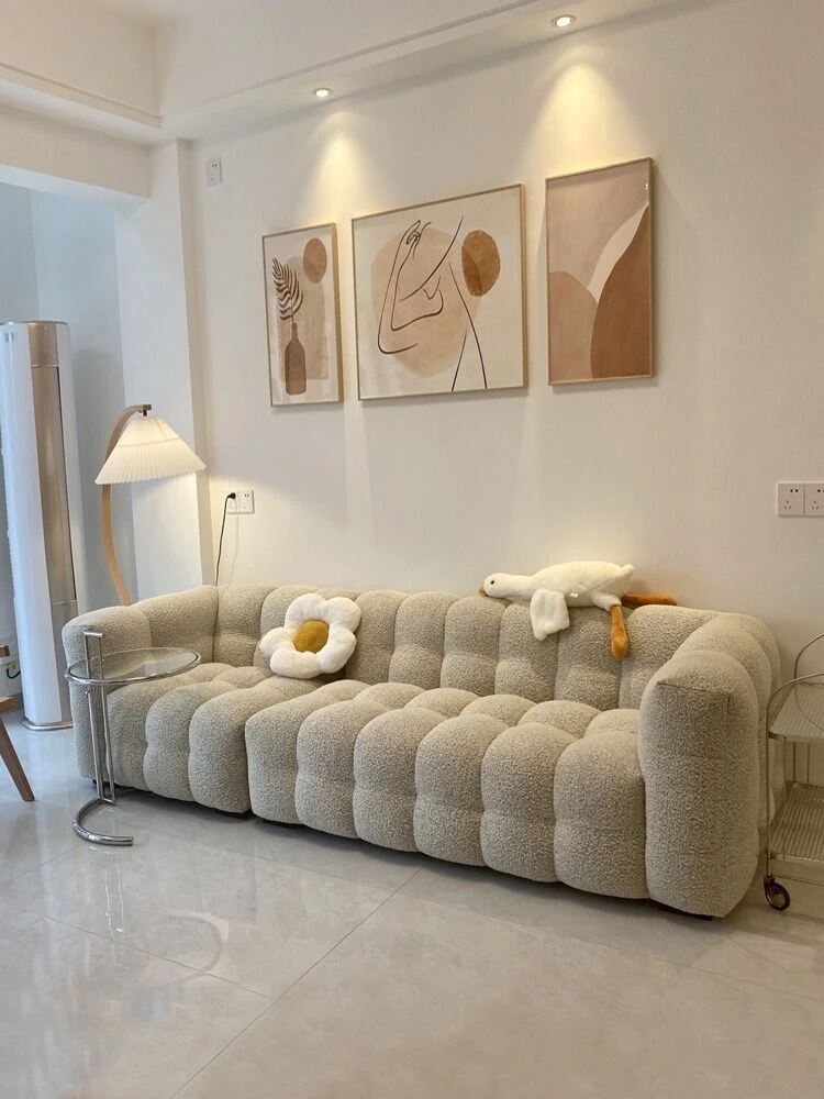 北欧風の布製マシュマロイタリアンレトロ小型リビング用クリームワビサビスタイルのラムウールBOBAソファー - おしゃれで快適な空間を演出!