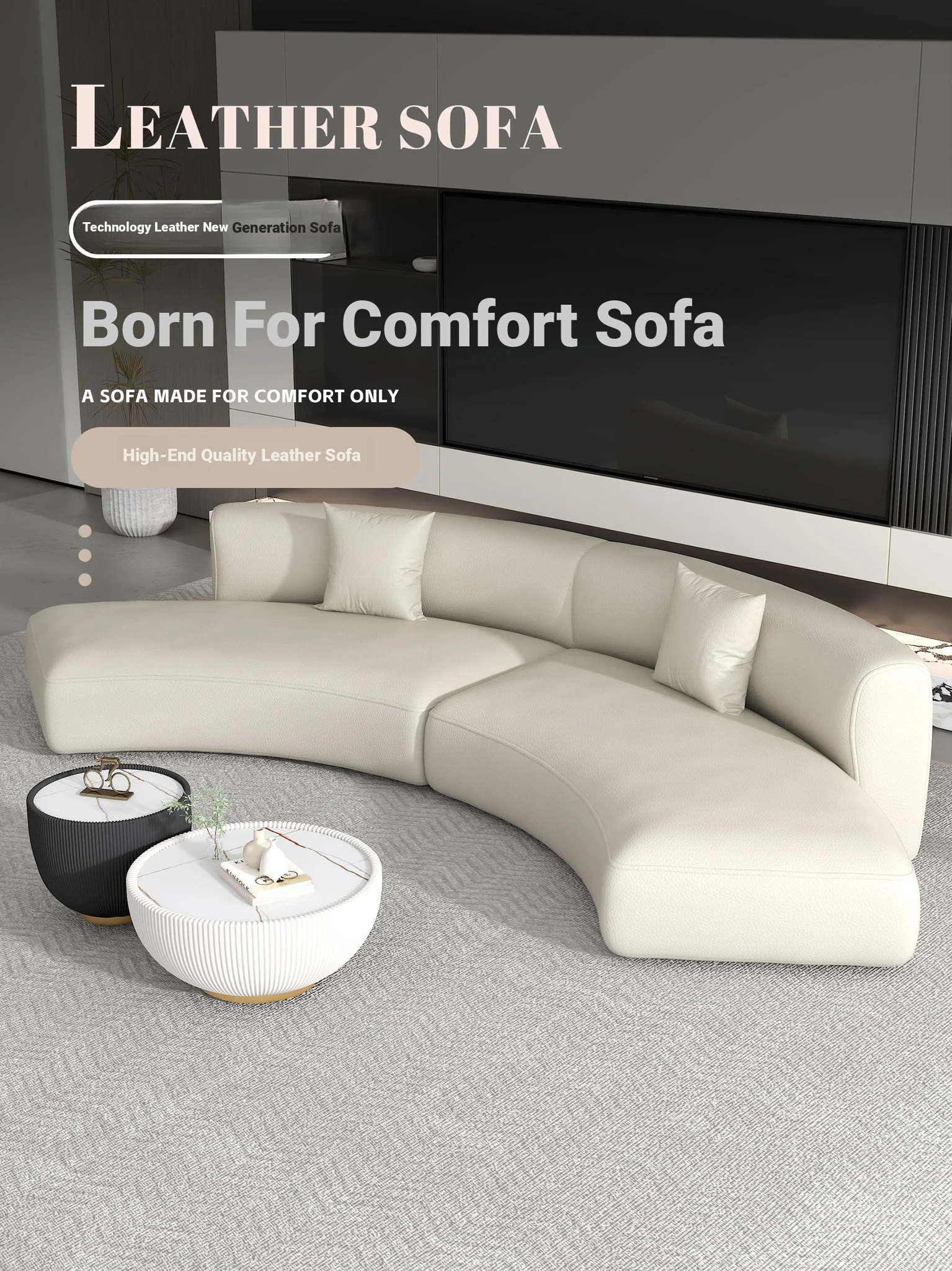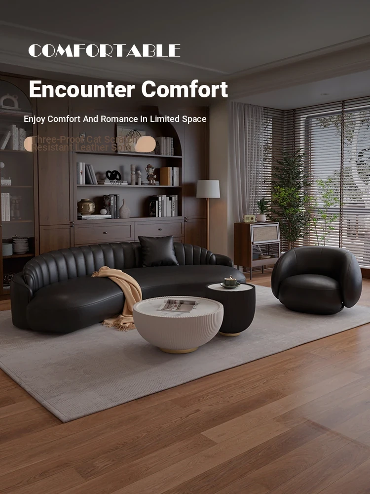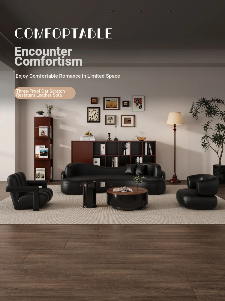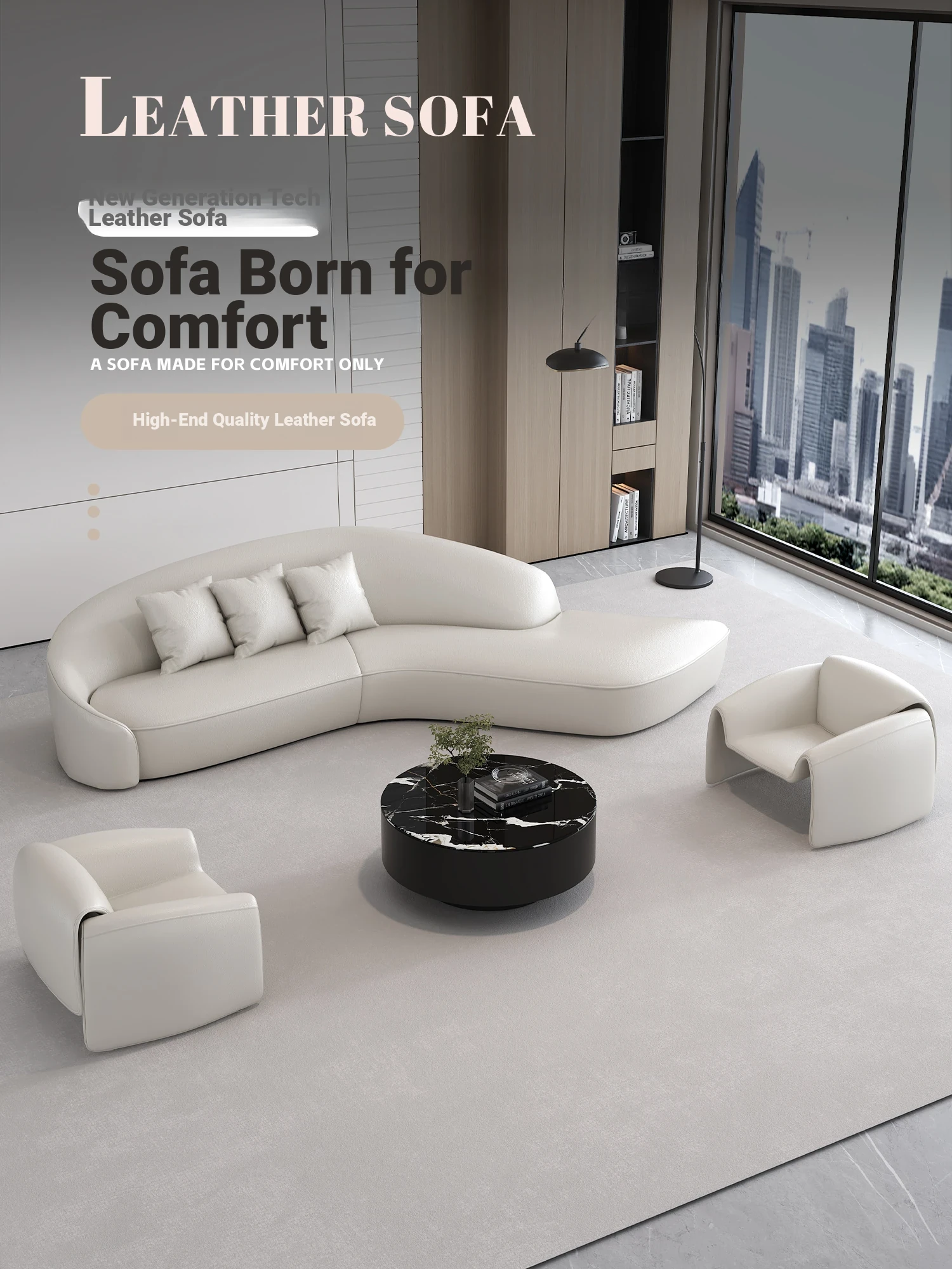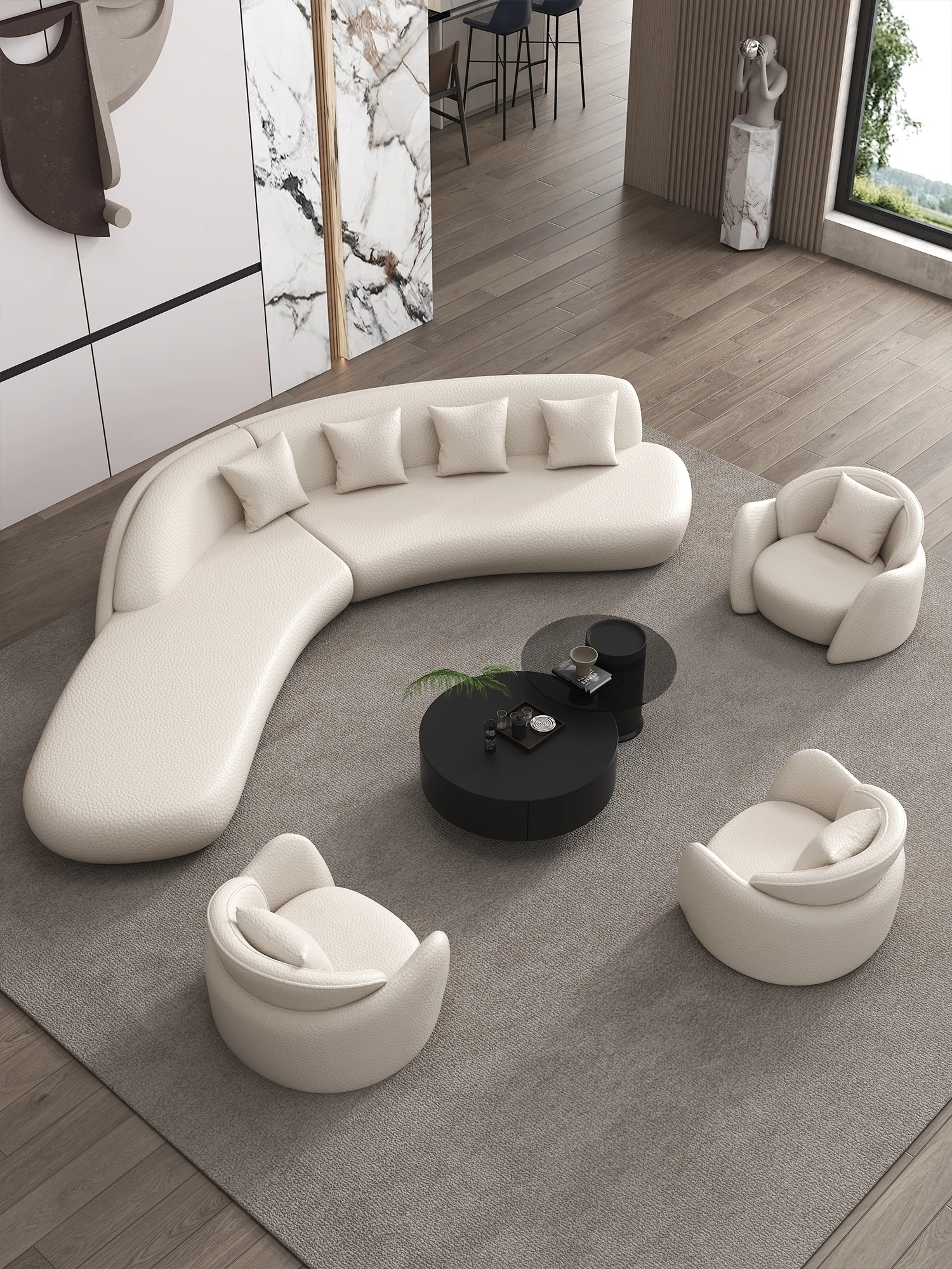 Luxury Curved Leather Reception Sofa Set for Real Estate Offices - Elegant Coffee Table Combination for Hotel Lobbies and Beauty Salons, Perfect for Waiting Areas and Client Meetings