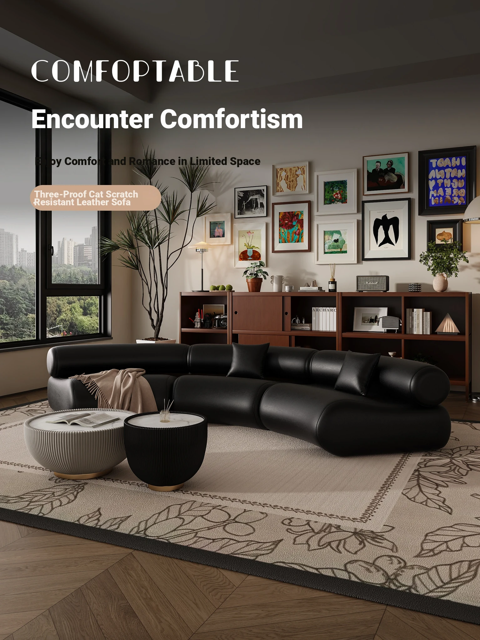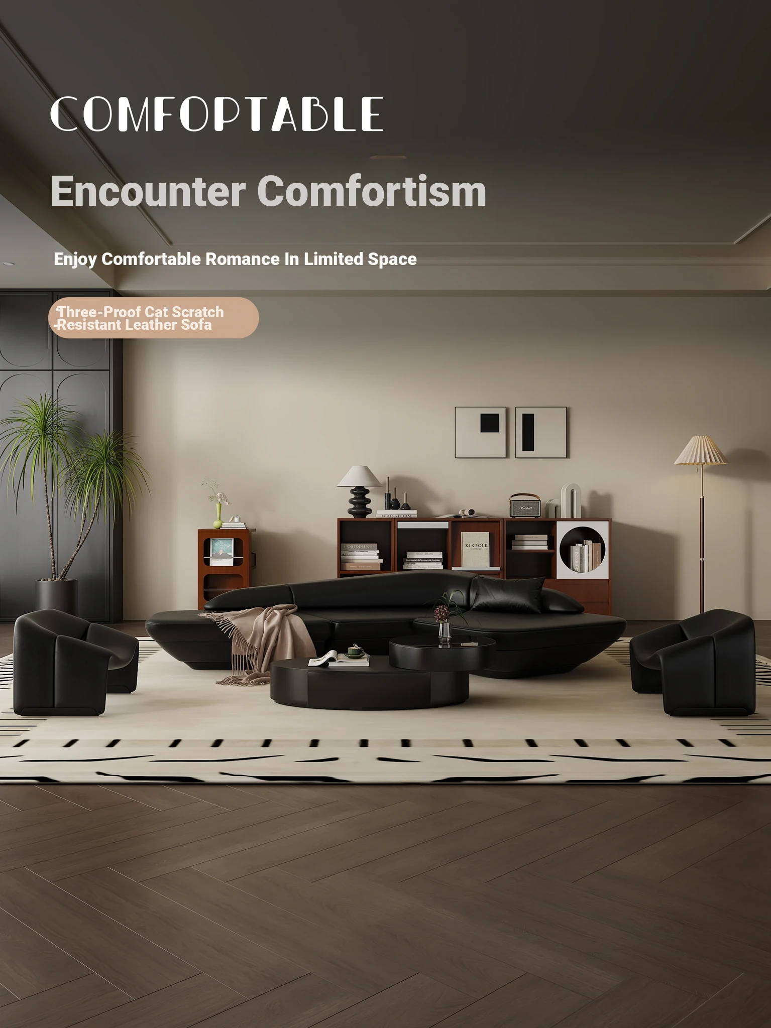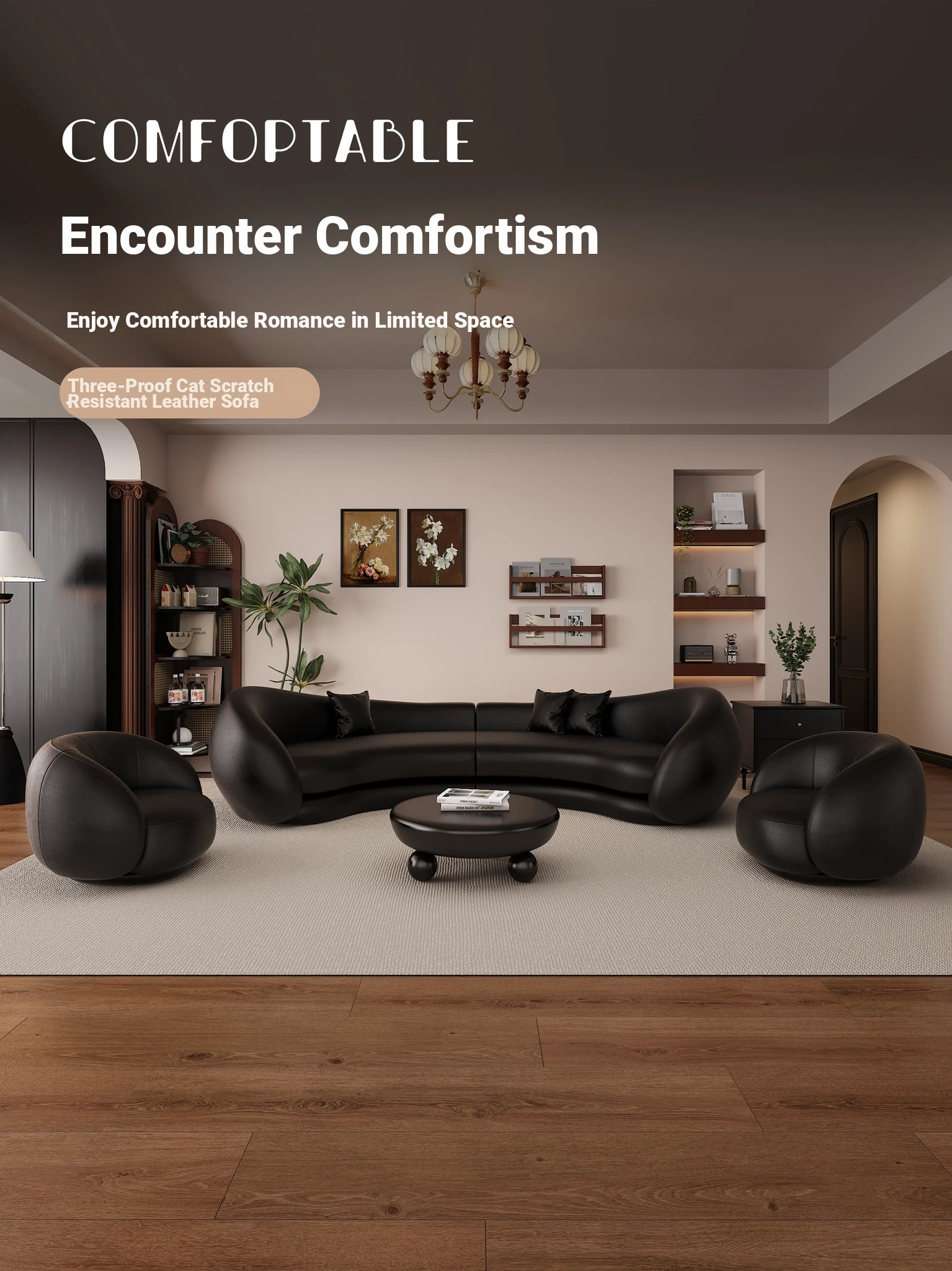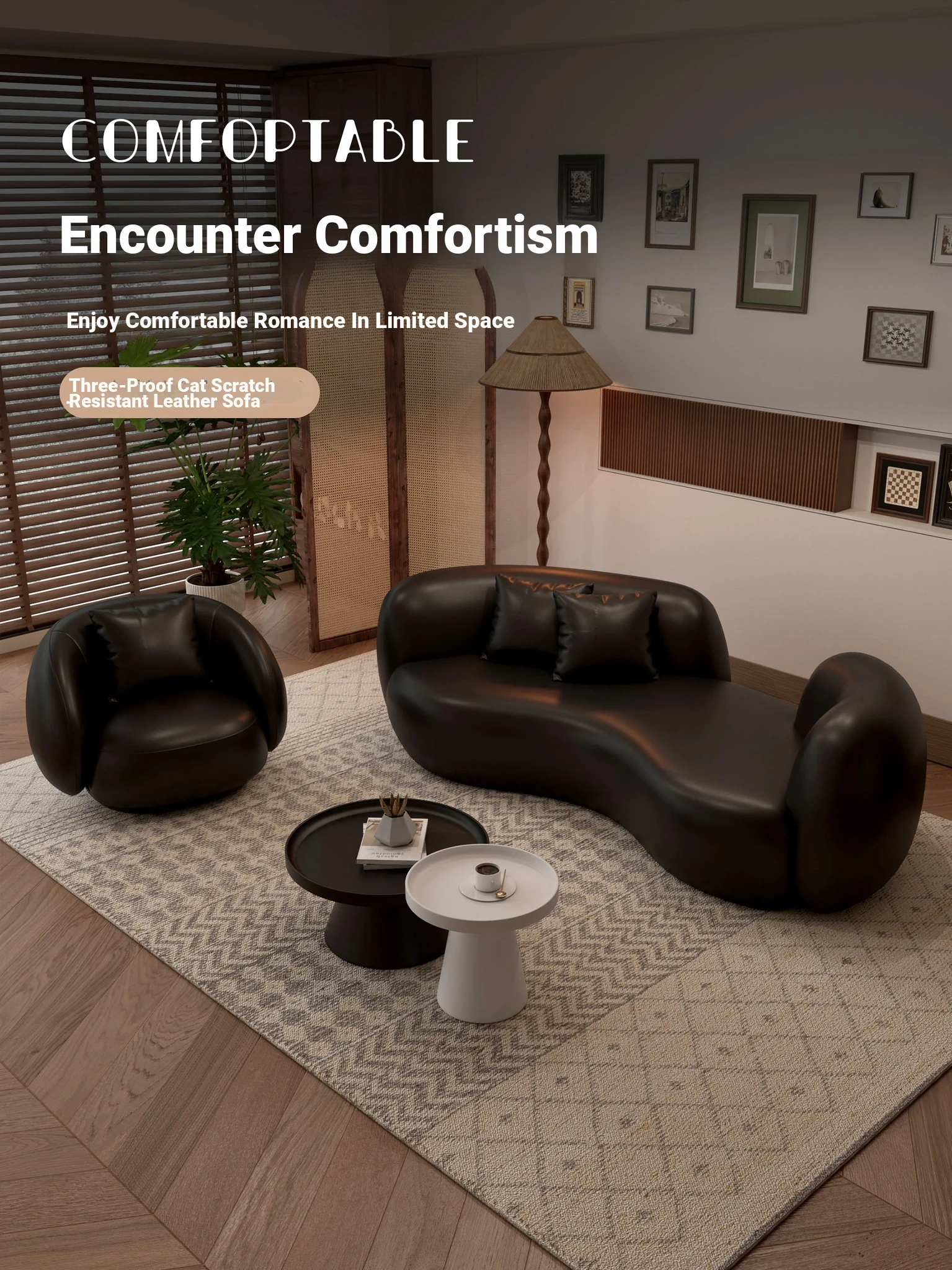 Luxury Curved Leather Reception Sofa Set for Real Estate Offices - Elegant Coffee Table Combination for Hotel Lobbies and Beauty Salons, Perfect for Waiting Areas and Client Meetings