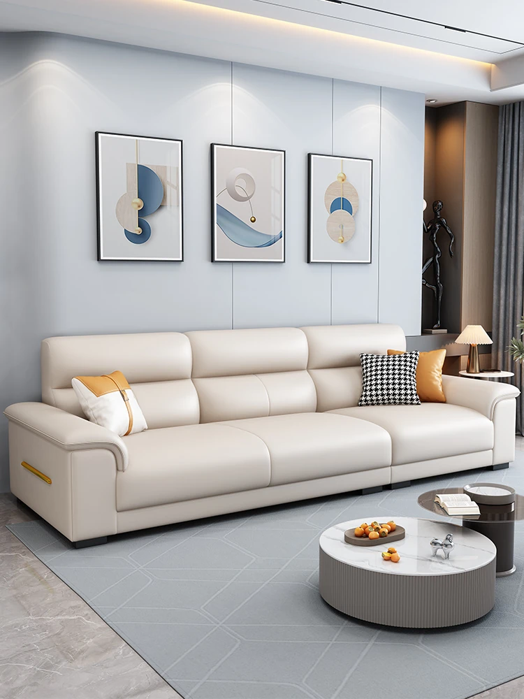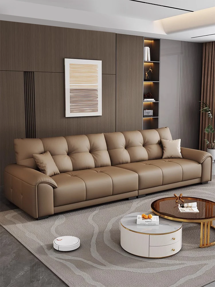 Italian Minimalist Luxury Sofa - Premium Top-Grain Leather Three-Seat and Four-Seat Sofa for Small Living Rooms - Perfect Blend of Style and Comfort