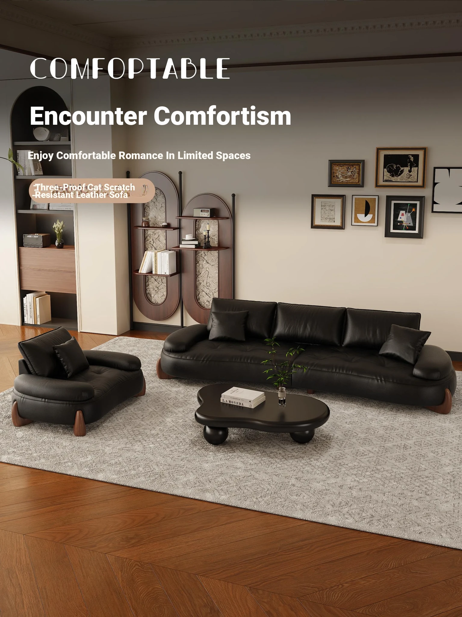 Yuejiaju 2025 New Italian Minimalist Genuine Leather Sofa for Small Living Rooms - Scratch-Resistant and Modern Design, Perfect for Stylish Homes