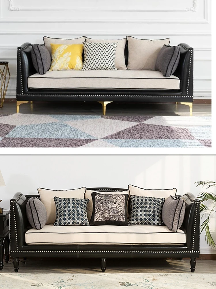 Modern American Style Living Room Sofa Set for Small Spaces - Luxurious and Minimalist Double Three-Seater Sofa in New Chinese Aesthetic with Genuine Leather, Perfect for High-End Living Spaces.