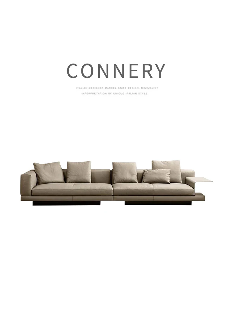 Italian Minimalist Leather Sofa - Premium Top-Grain Cowhide with Skin-Friendly Cotton Linen - Chic INS Style Light Luxury Straight-Line Design by Richi Yilan