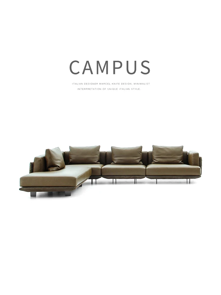 Italian Minimalist Sofa - Campus Natuz Original 1:1 Replica, Woven Top-Grain Yellow Cowhide Chaise Lounge, Perfect Blend of Elegance and Comfort