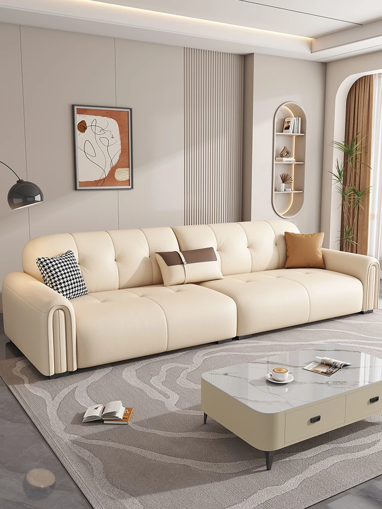 Foshan 2025 New Italian Minimalist 3-4 Seater Living Room Sofa, Cat-Proof Genuine Leather, Straight Design - Perfect for Small Spaces!