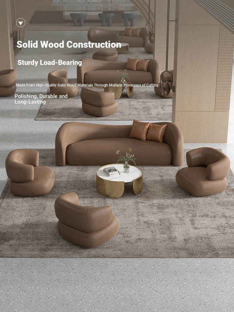 Luxury Hotel Lobby VIP Lounge Seating Area with Elegant Leather Sofas for Meetings and Relaxation - Perfect for Reception and Real Estate Showrooms