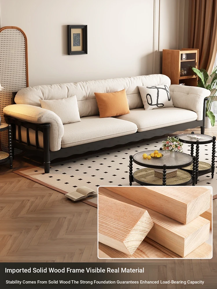 French Vintage Fabric Sofa for Small Living Rooms - Three-Seater Mid-Century Nordic Cloud Design, All Solid Wood Construction. Perfect for Cozy Spaces!