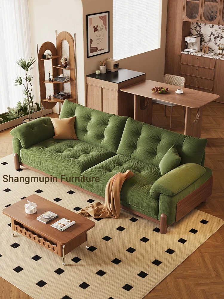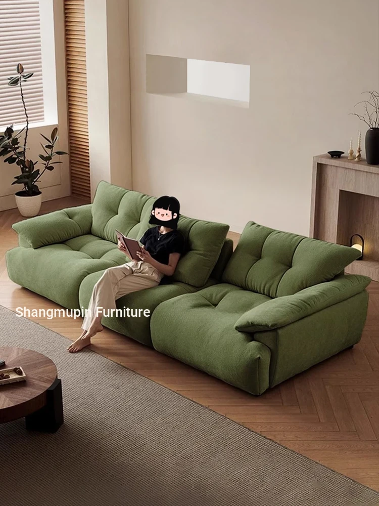 Nordic Minimalist Cloud Sofa - Japanese Style Straight Line Design for Small Spaces, French Vintage Green Washable Fabric Couch