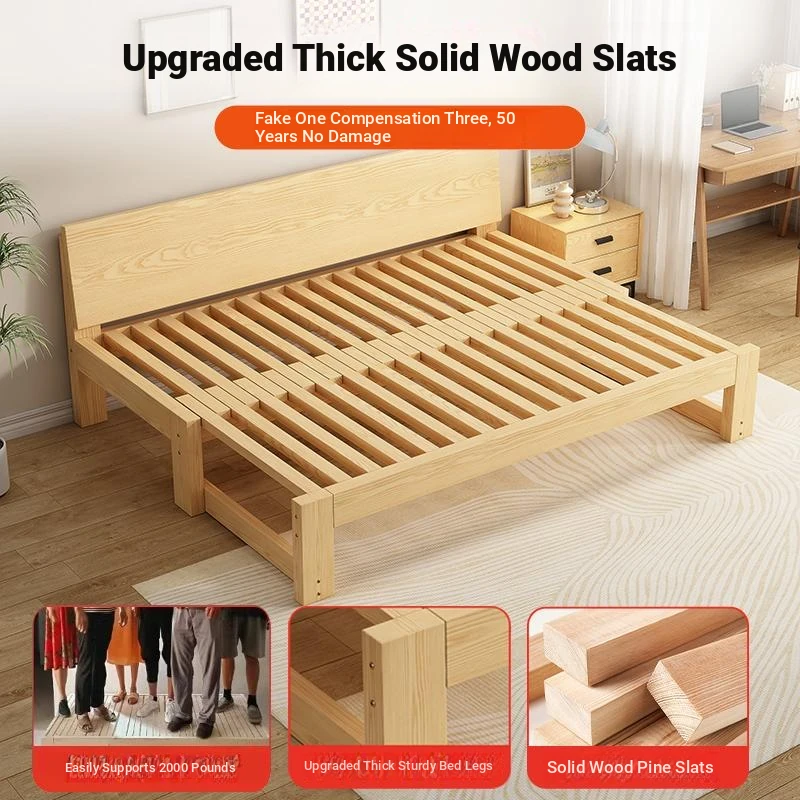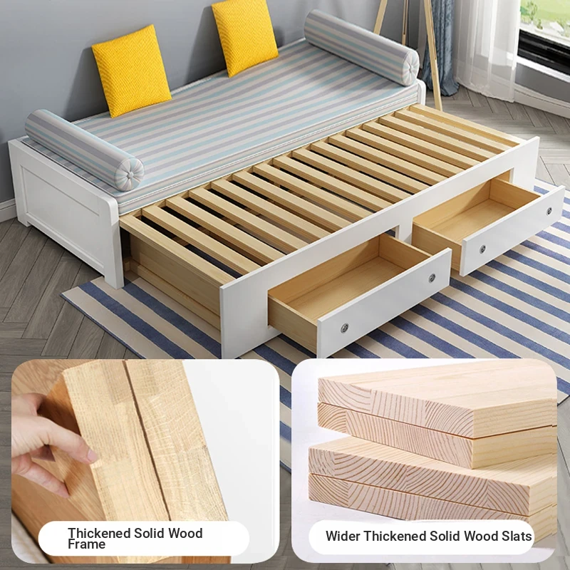 【Free Shipping to Hong Kong】Multifunctional Solid Wood Sofa Bed – Foldable Design for Small Spaces, Perfect for Living Rooms and Tatami Use, Ideal for Couples or Single Users.