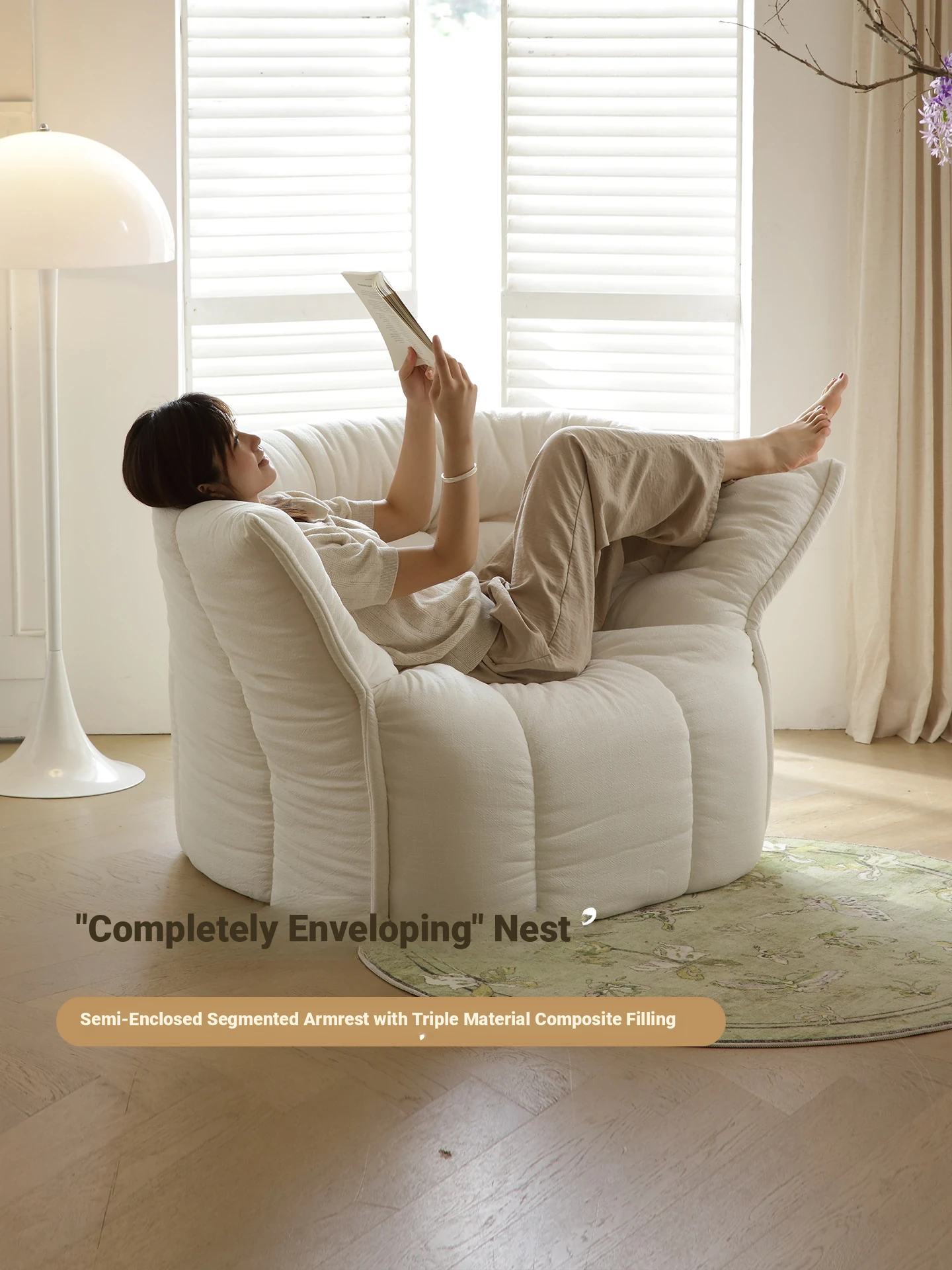 Nordic Creamy Chic Single Sofa - Trendy Armchair for Fashion Boutiques, Women's Stores, and Beauty Salons. Perfect for Relaxation and Stylish Reception!